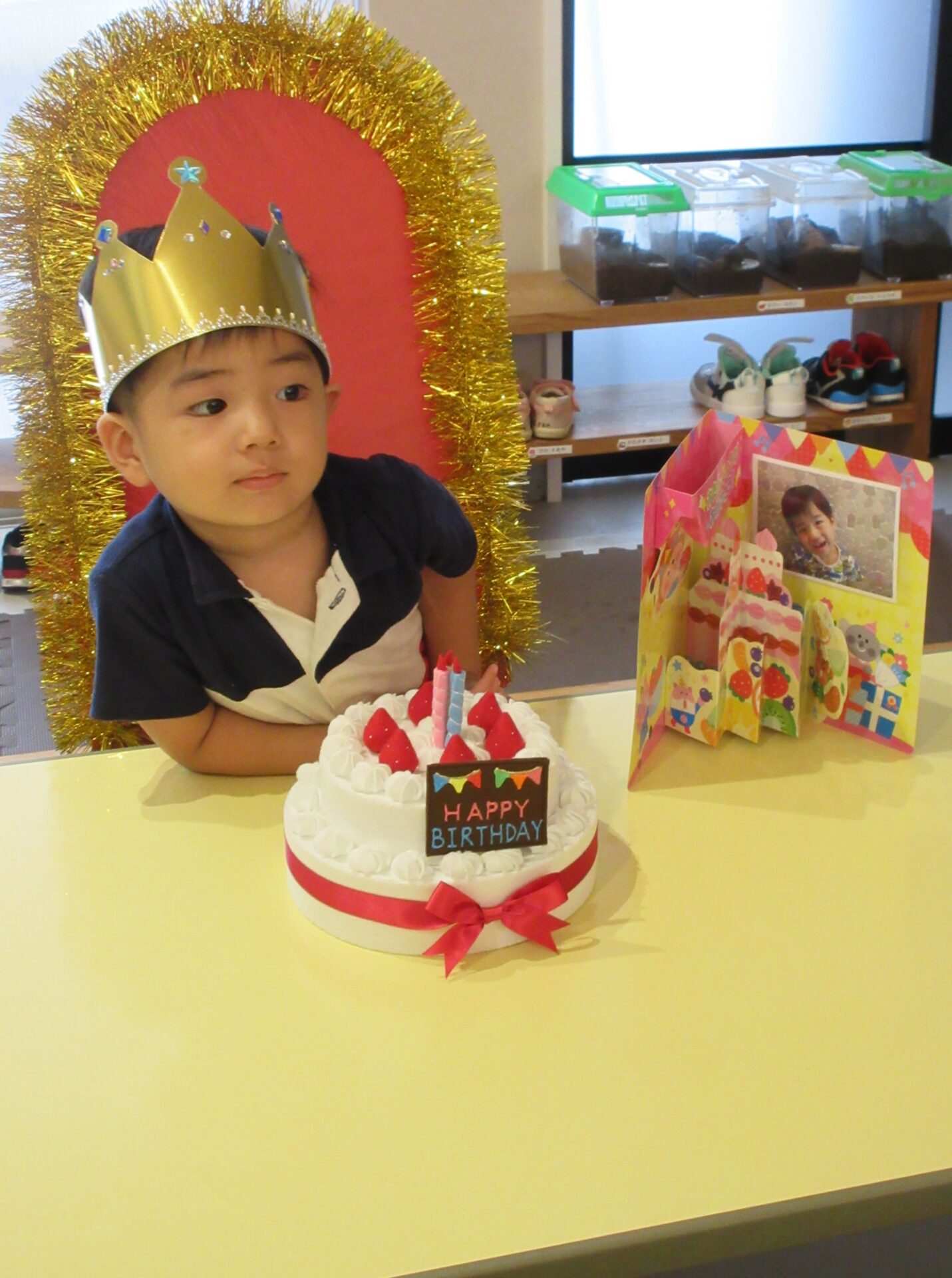 2023.08.17 お誕生会 お誕生日 おめでとう🎂 今日の主役のお友だちは、まんぼう組さんです。 毎日、元気いっぱい。プール遊びも大好きです。 冠とカードをもらってとてもうれしそうでした。 これからも、保育園でたくさんあそぼうね。 一覧へ戻る