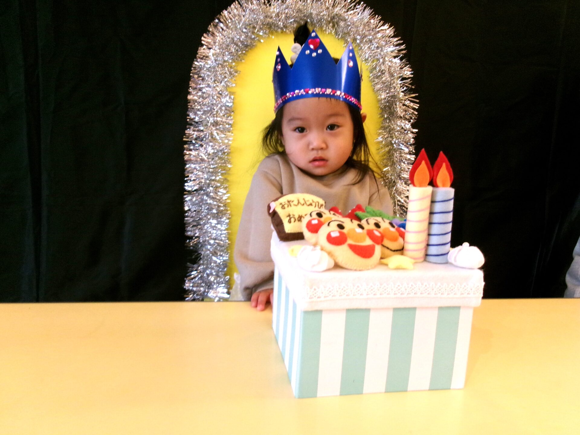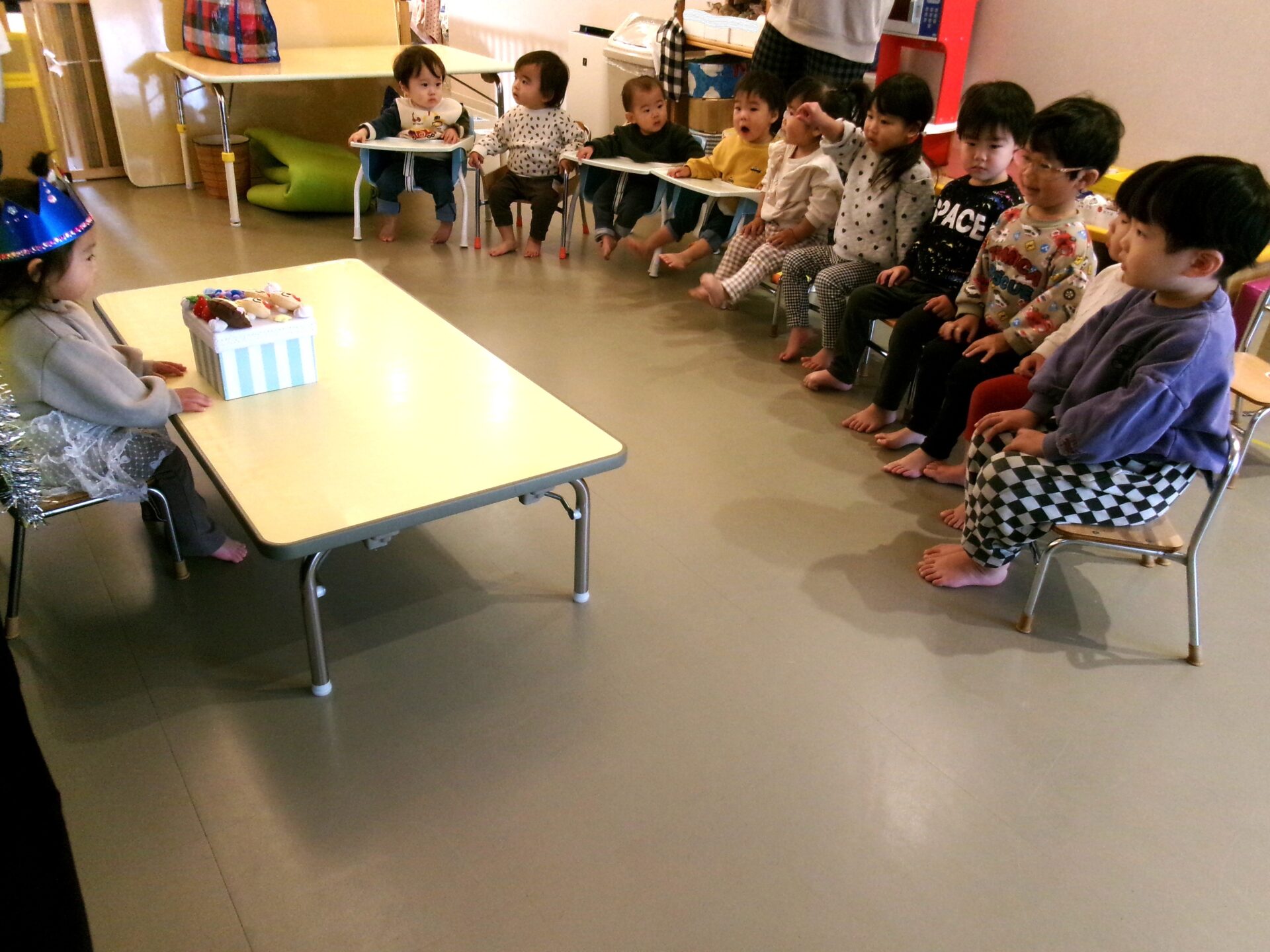 みんなから「ハッピーバースデー」の歌をプレゼントしてもらい、まんぼう組(2歳児)のお兄ちゃんから、誕生日カードをもらいました。