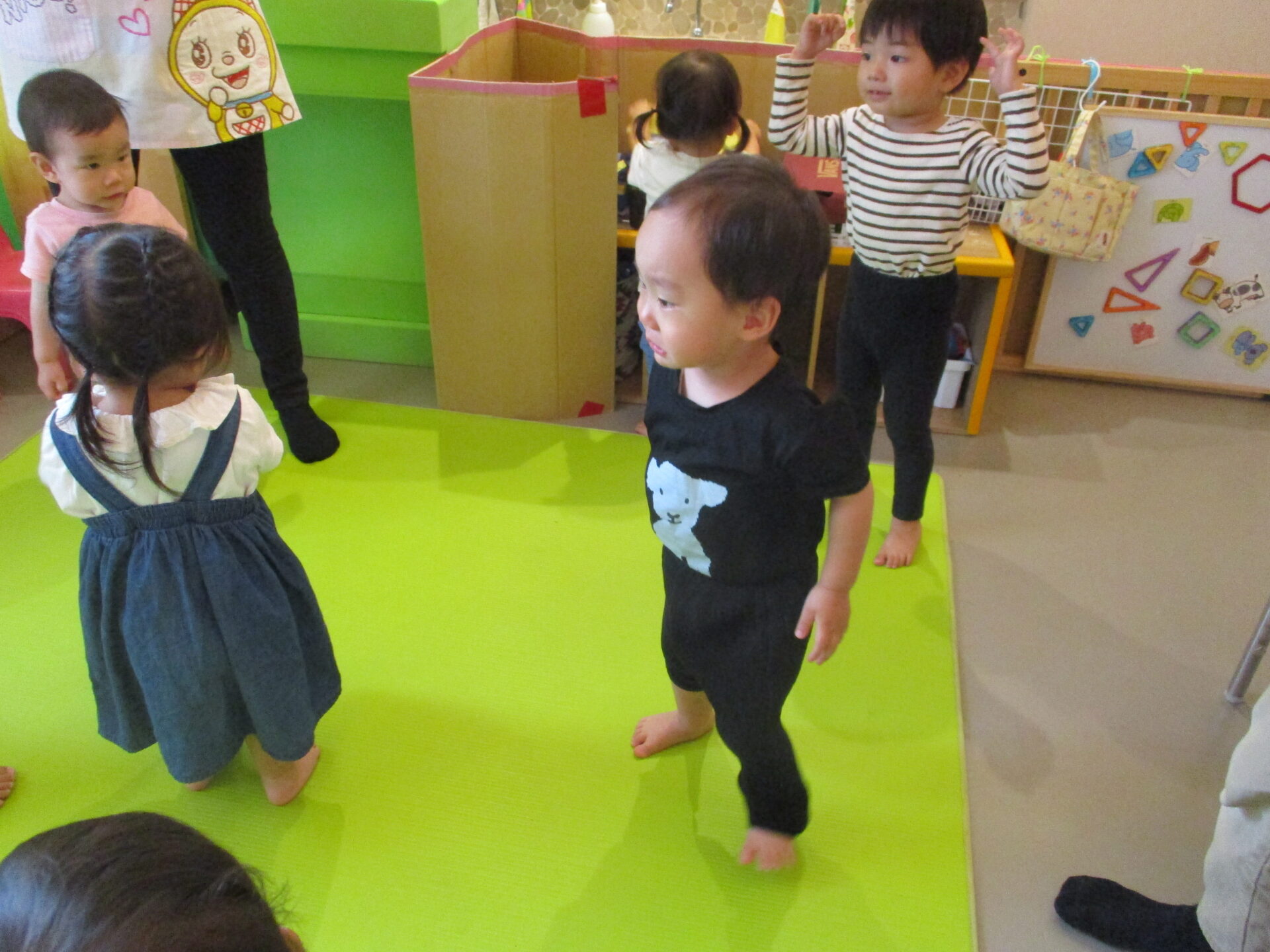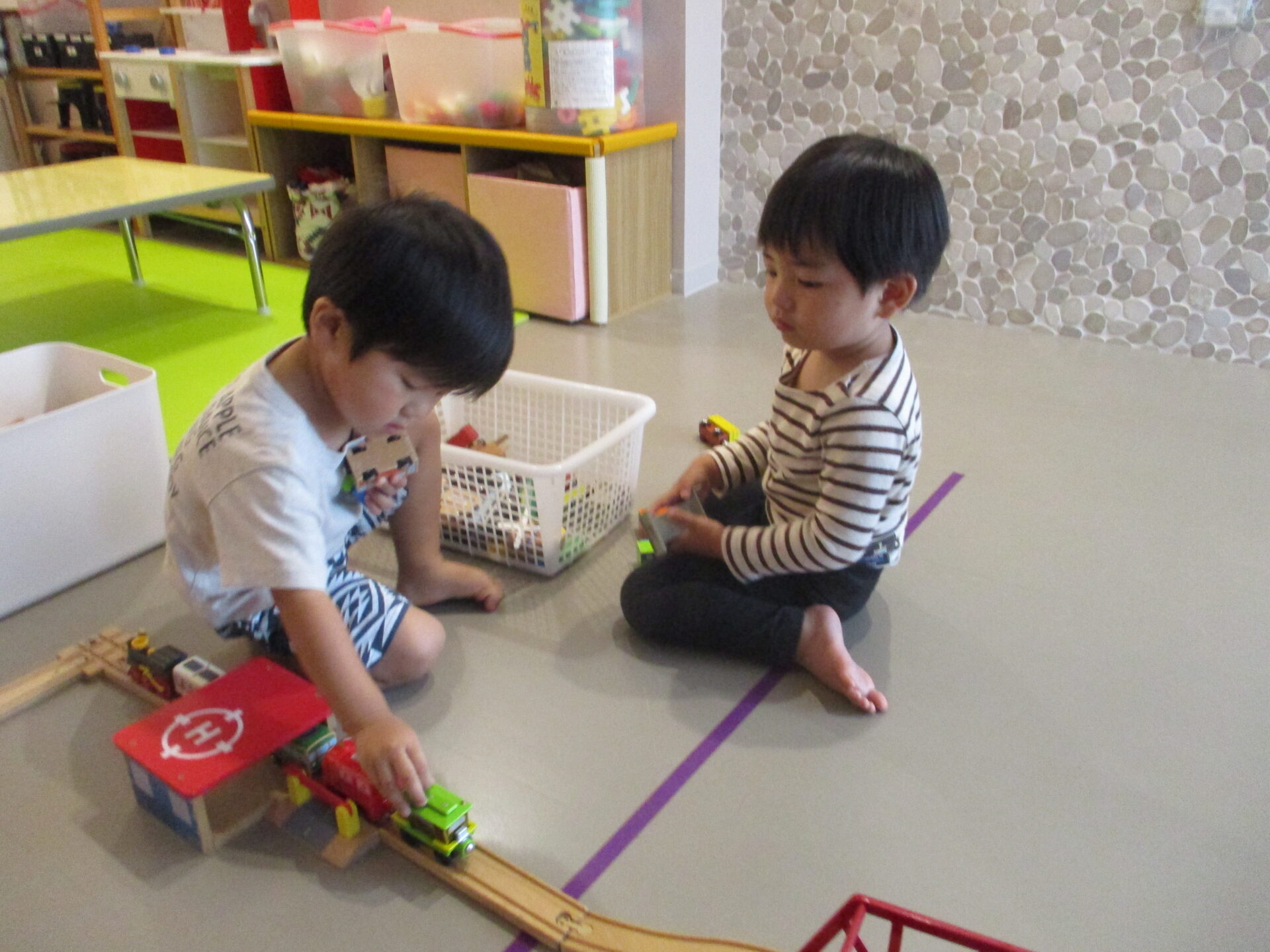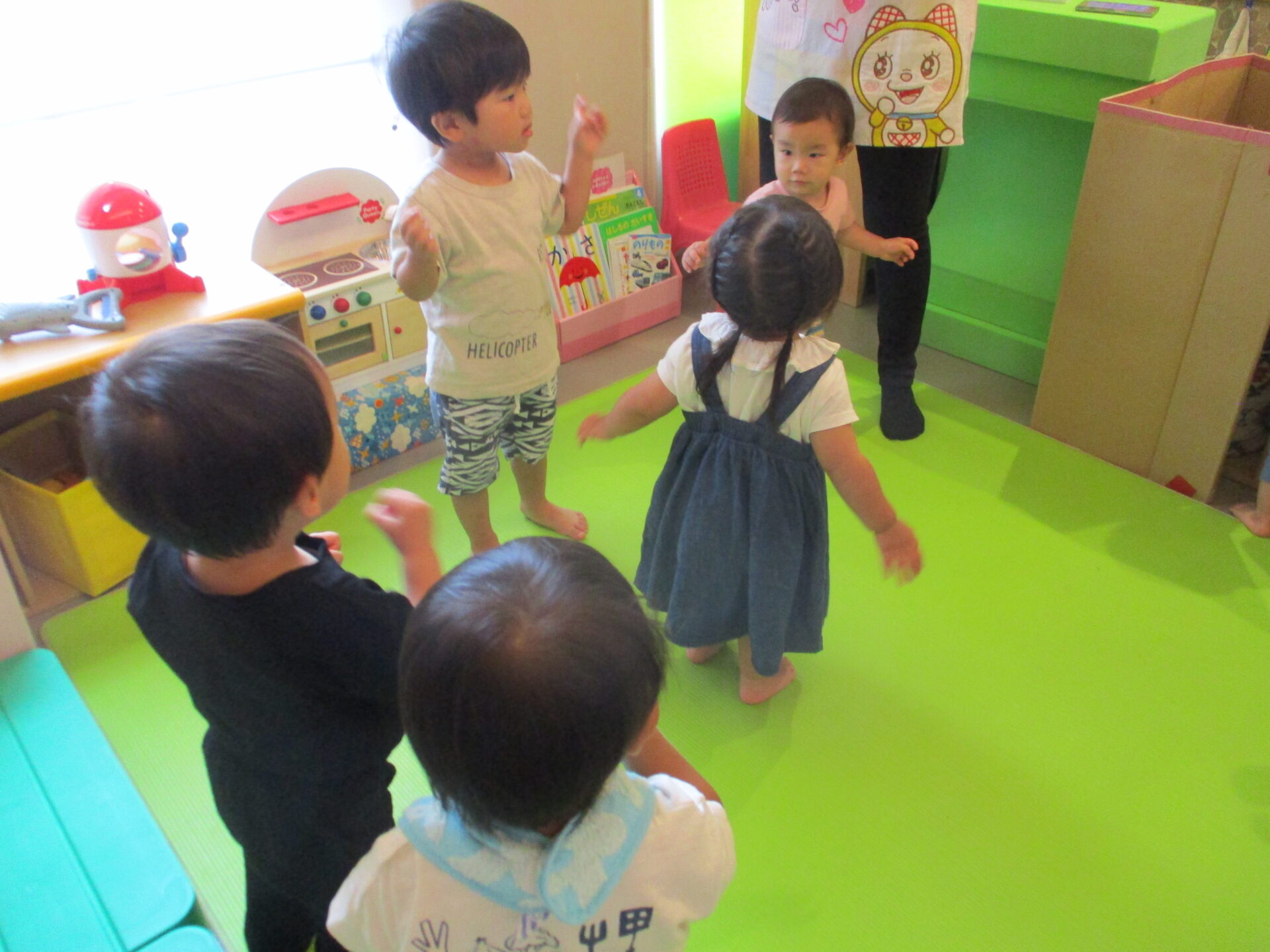 当然、外遊びは出来ませんが、子どもたちは、様々な室内遊びを楽しんでいます。