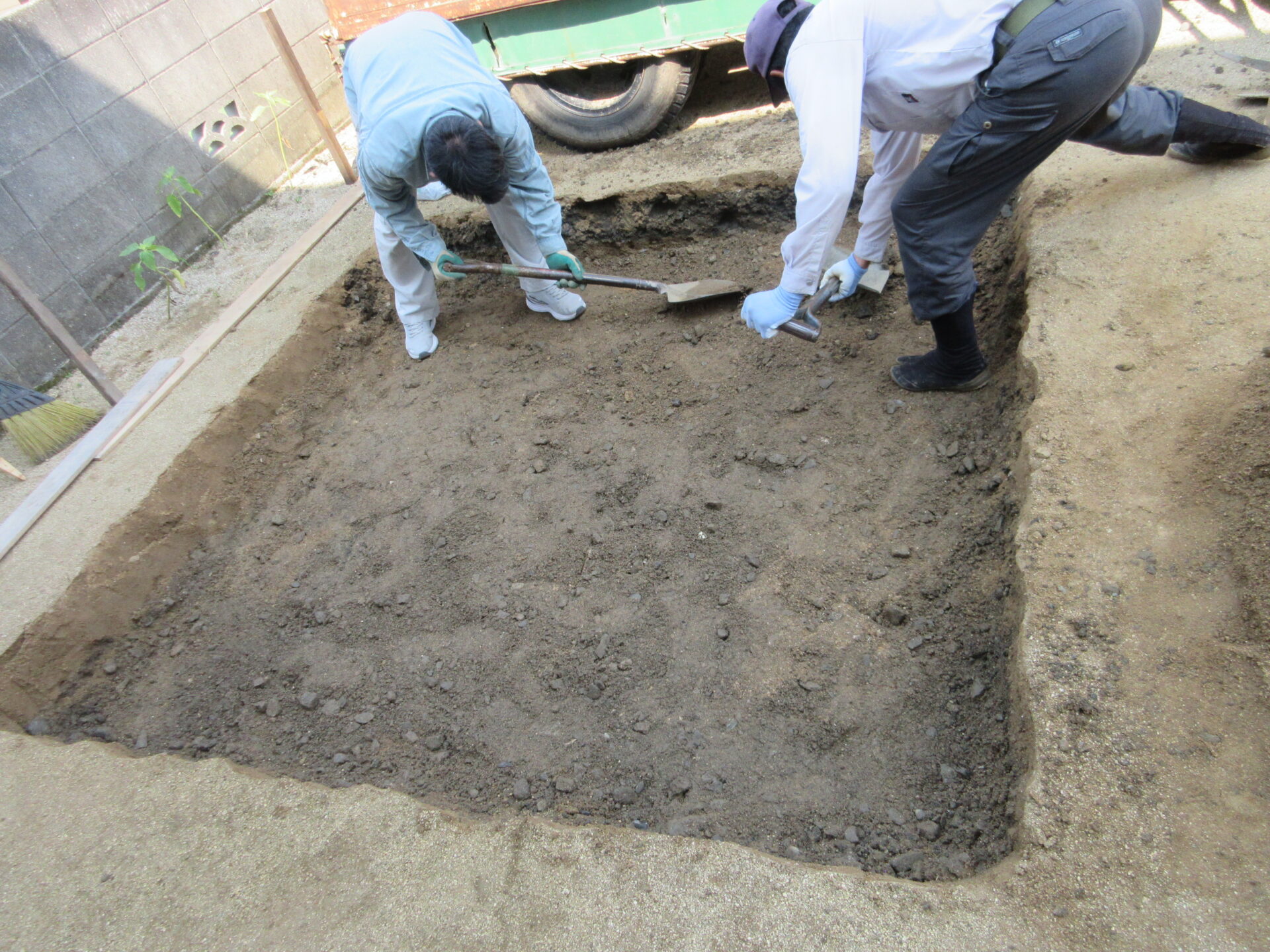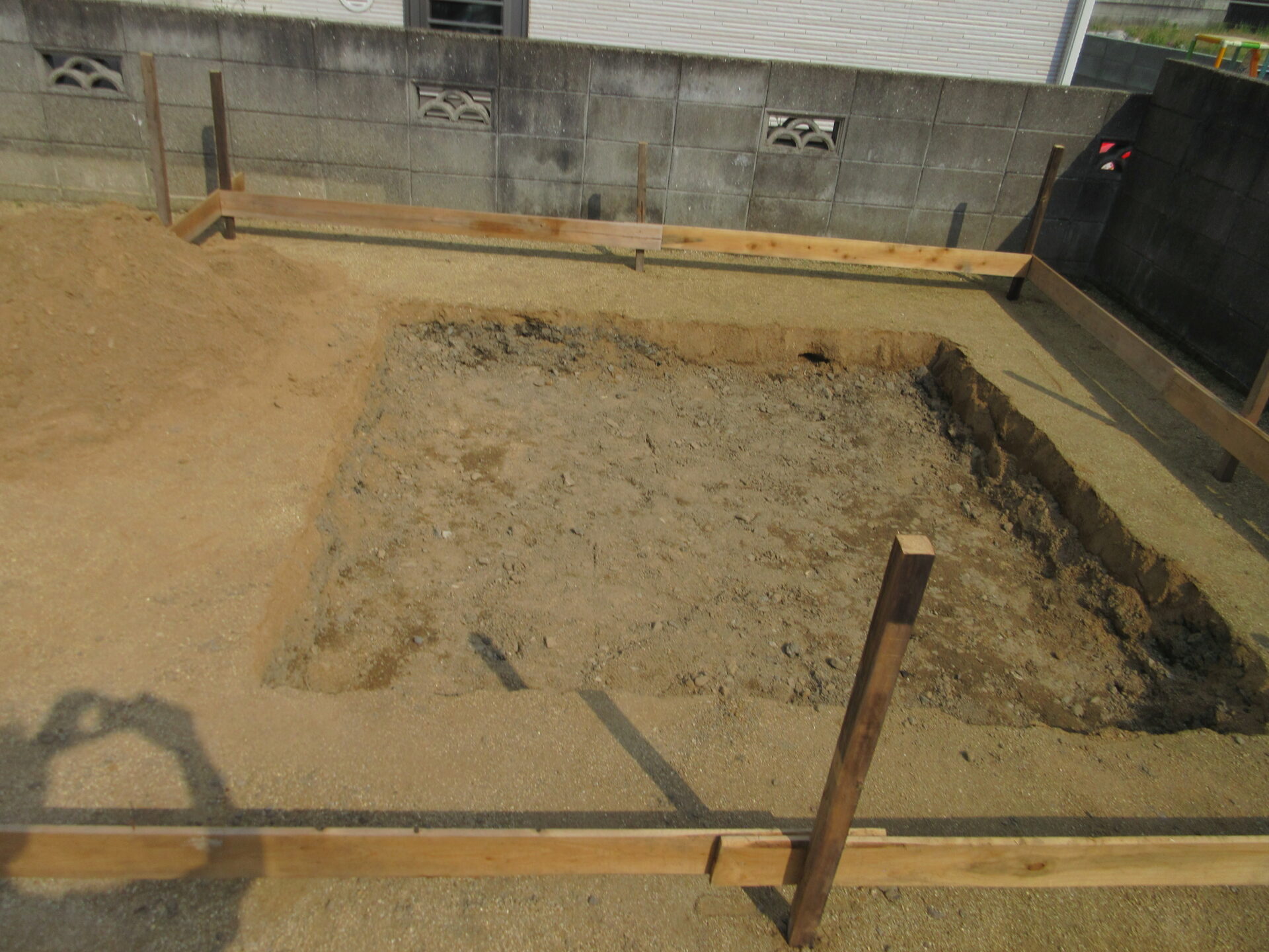 とりあえず、本日は、穴を掘りました。この後、固める作業に入る予定です。