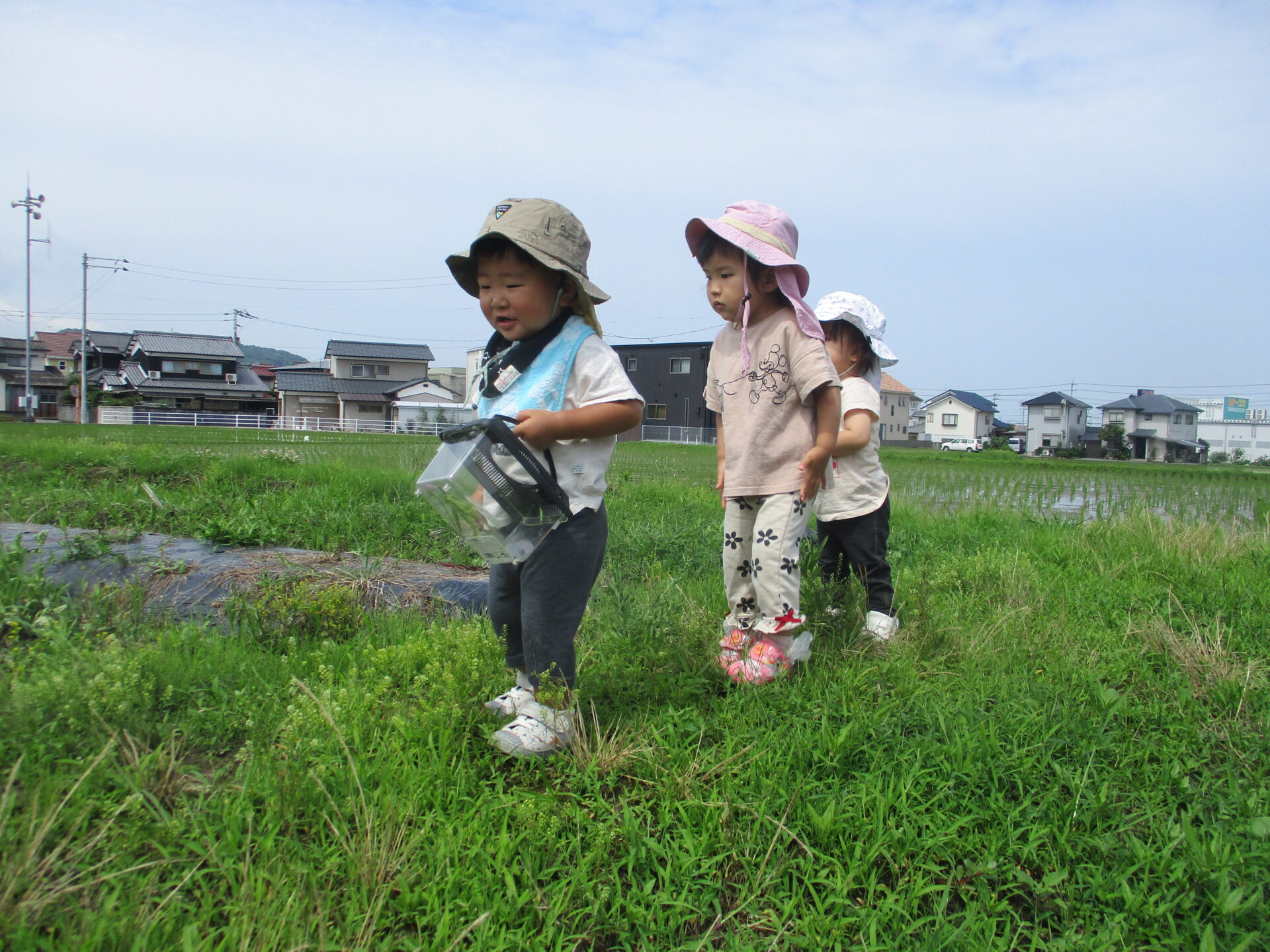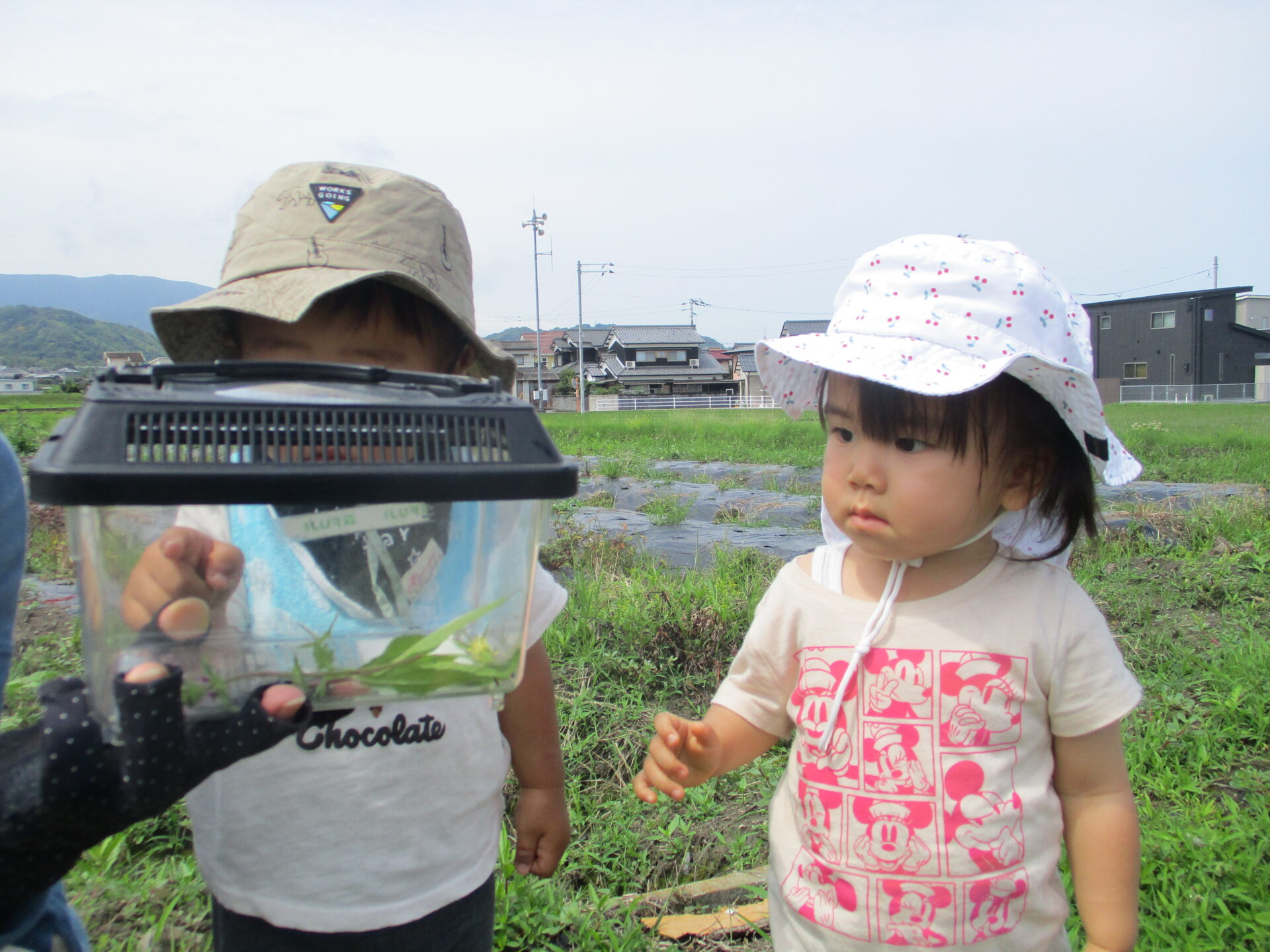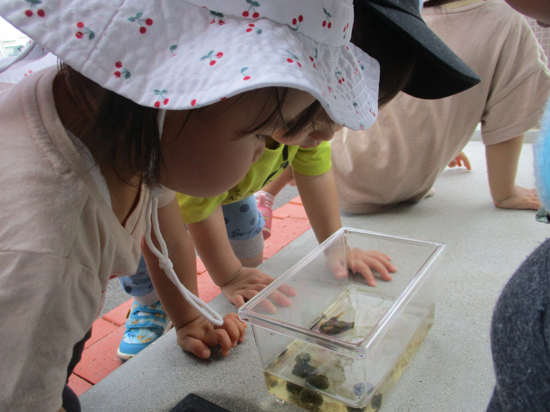 1歳児、2歳児の子どもたちにとっては、初めて見たであろう、タニシやオタマジャクシ。