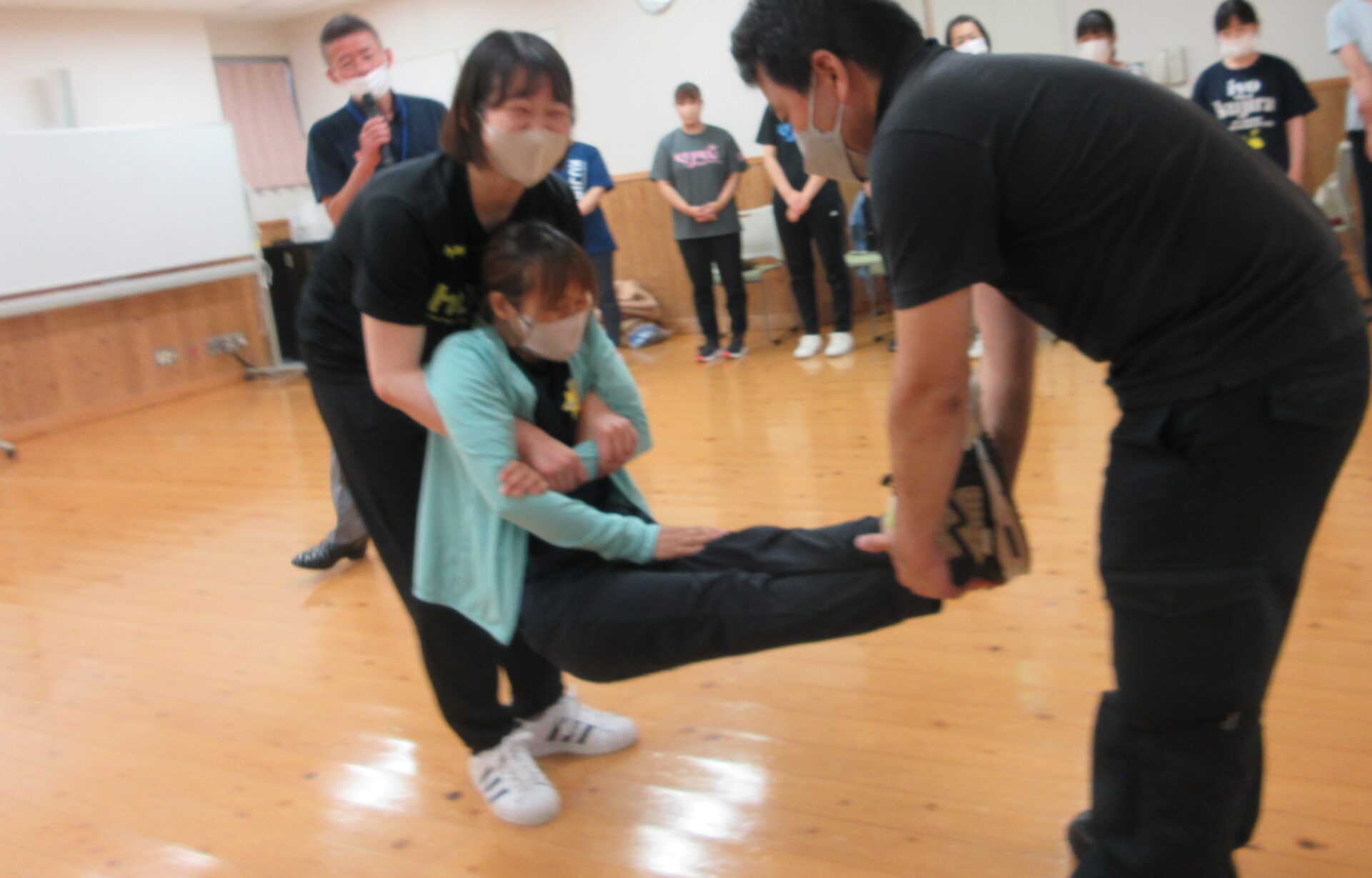 実技として、実際に、被害にあった時の救助の方法を教えていただきました。
