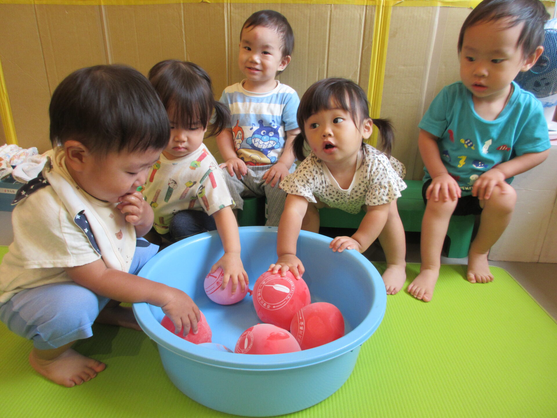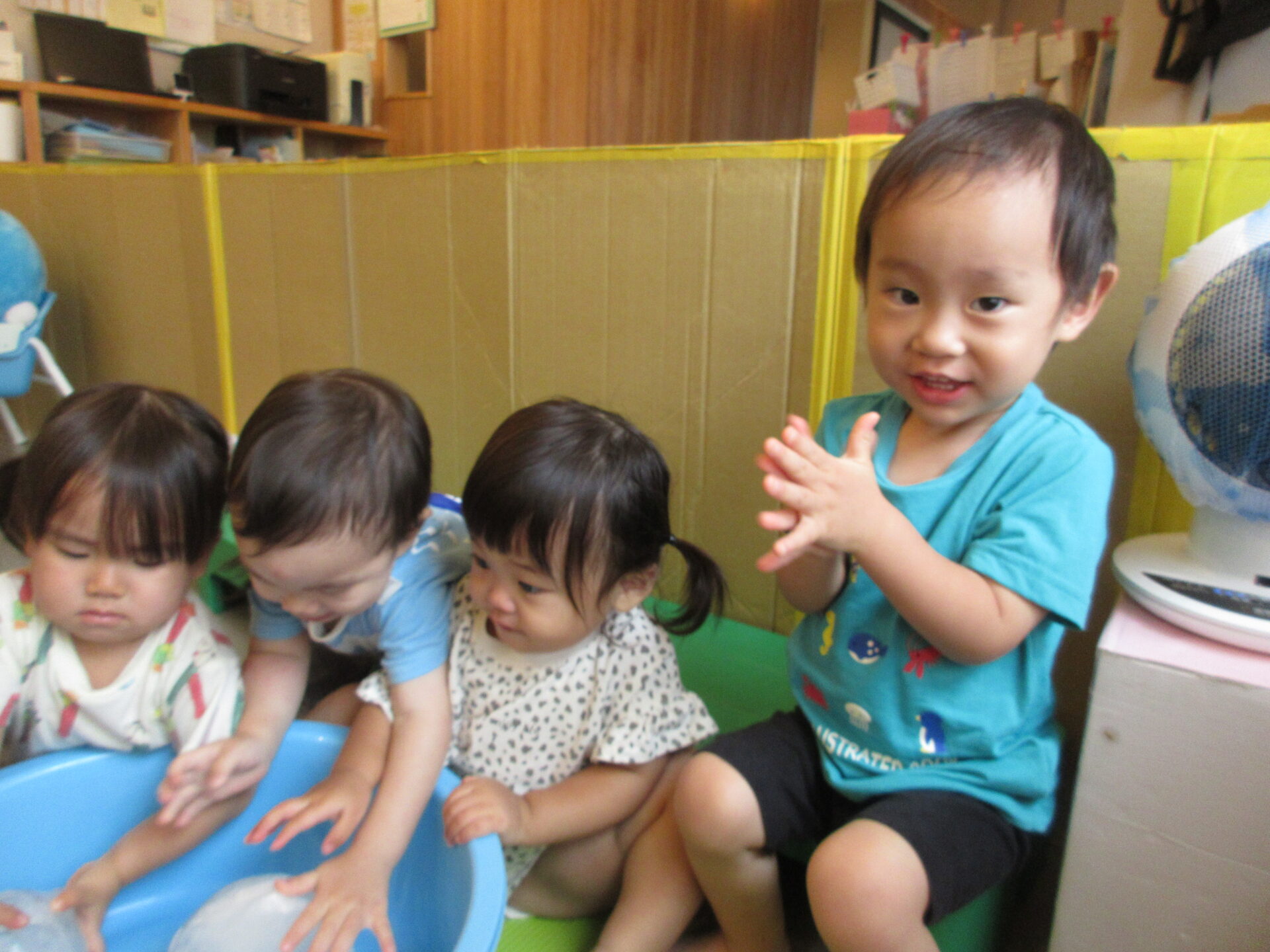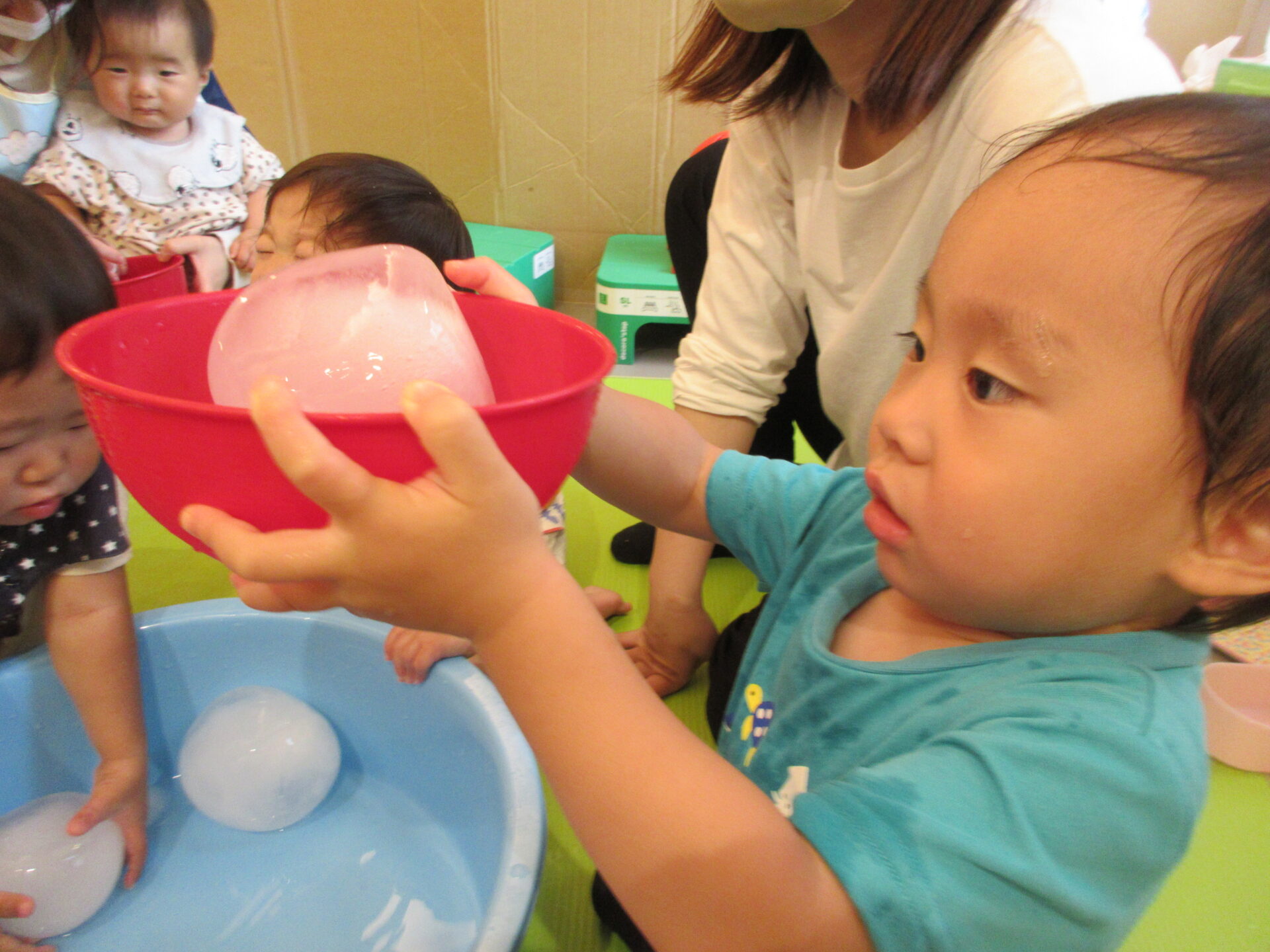 氷を持ってみたり、入れ物に入れたりして楽しみました。