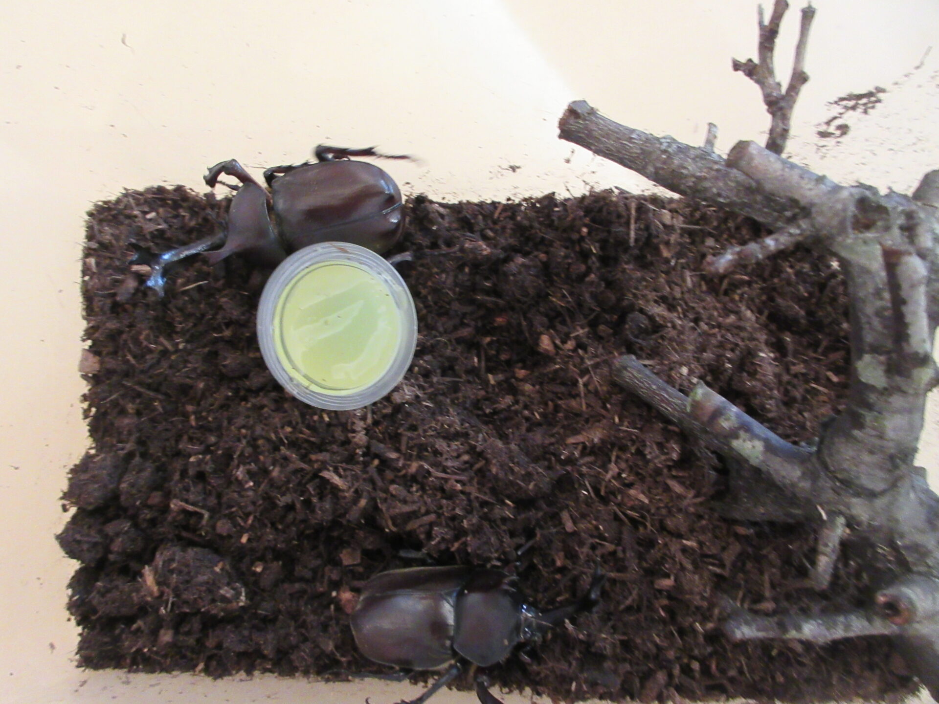 昨年、まんぼうで飼っていたカブト虫が卵を産み、それが孵ってカブト虫になって帰ってきました。