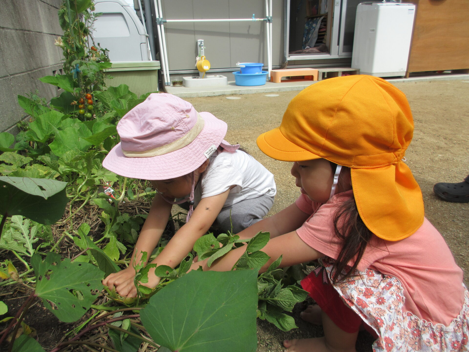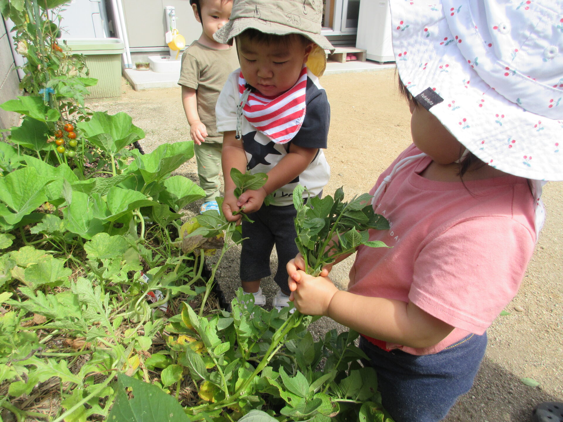 葉が萎れて収穫のサインが来たので、みんなで「うんとこしょ」と引っ張ってみました。