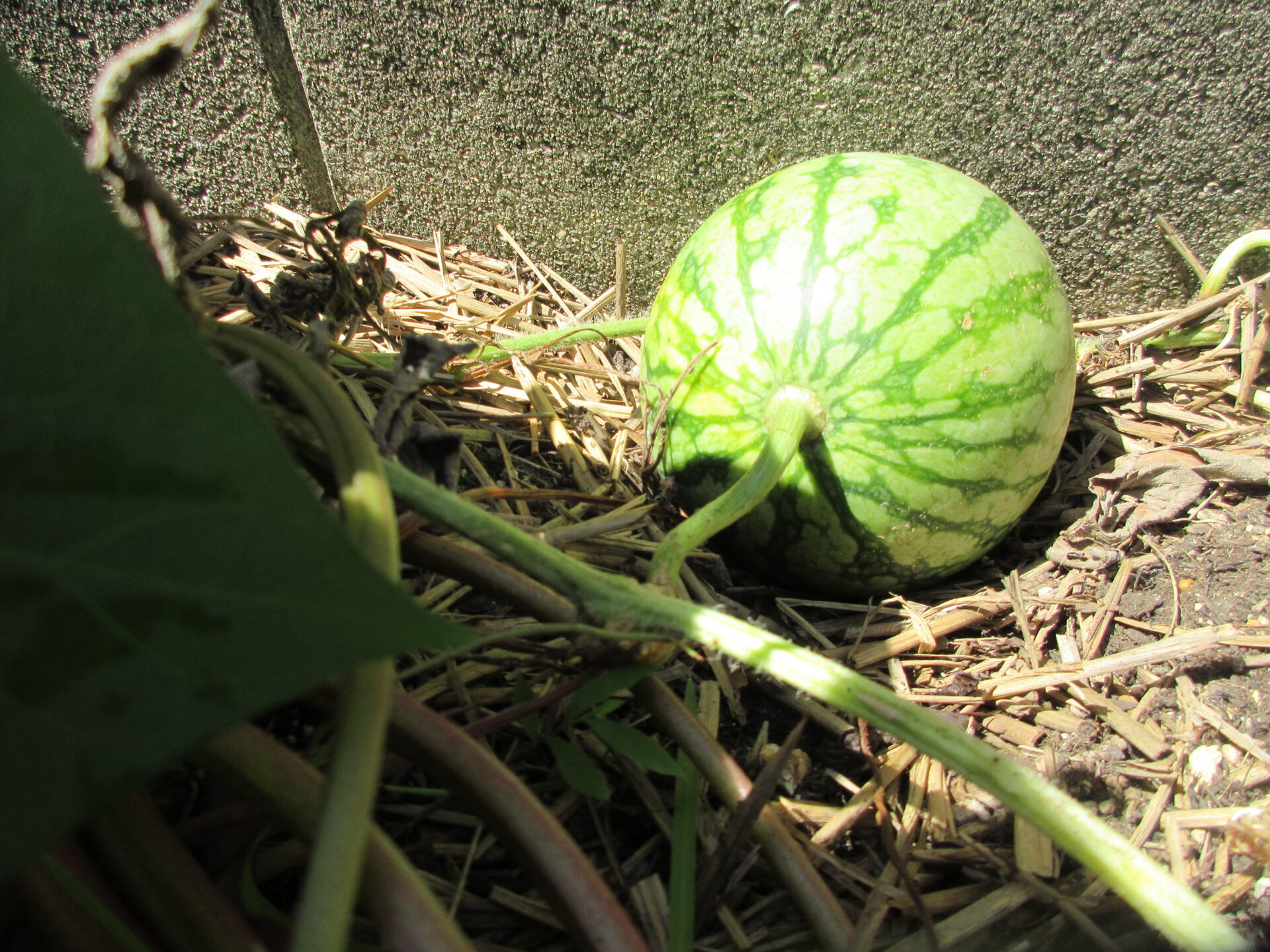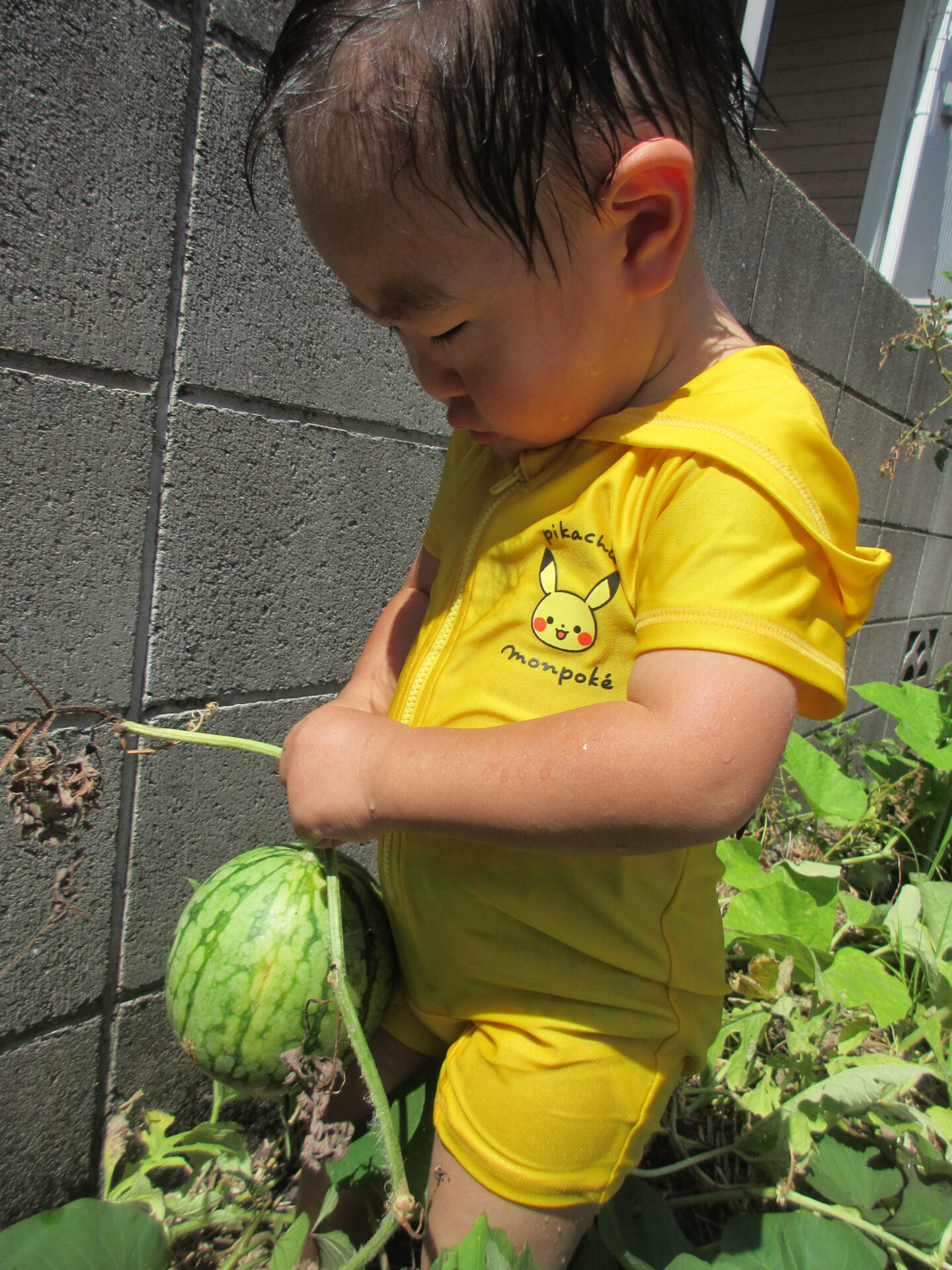 5月に植えた小玉スイカが大きくなって収穫をしました。