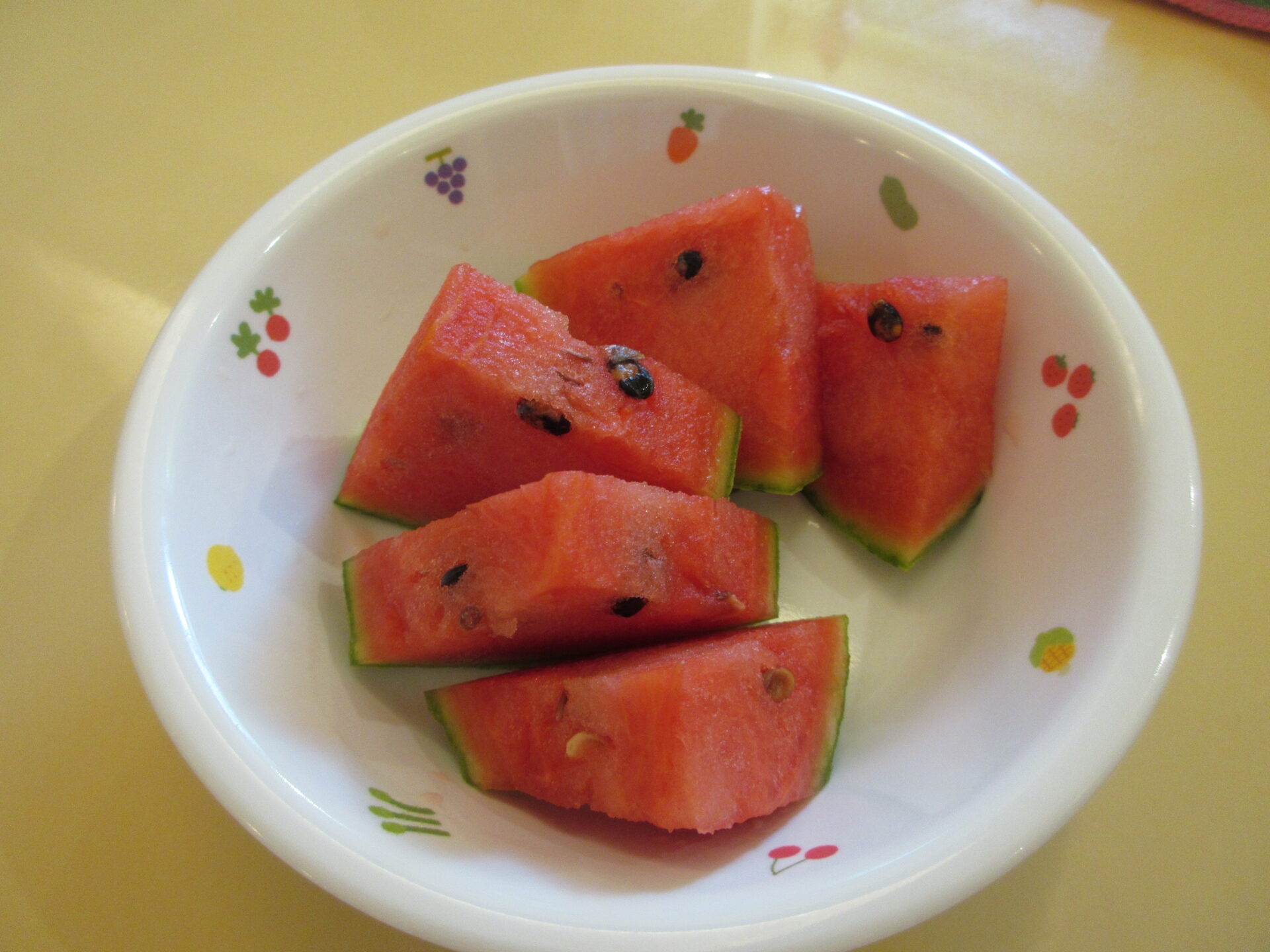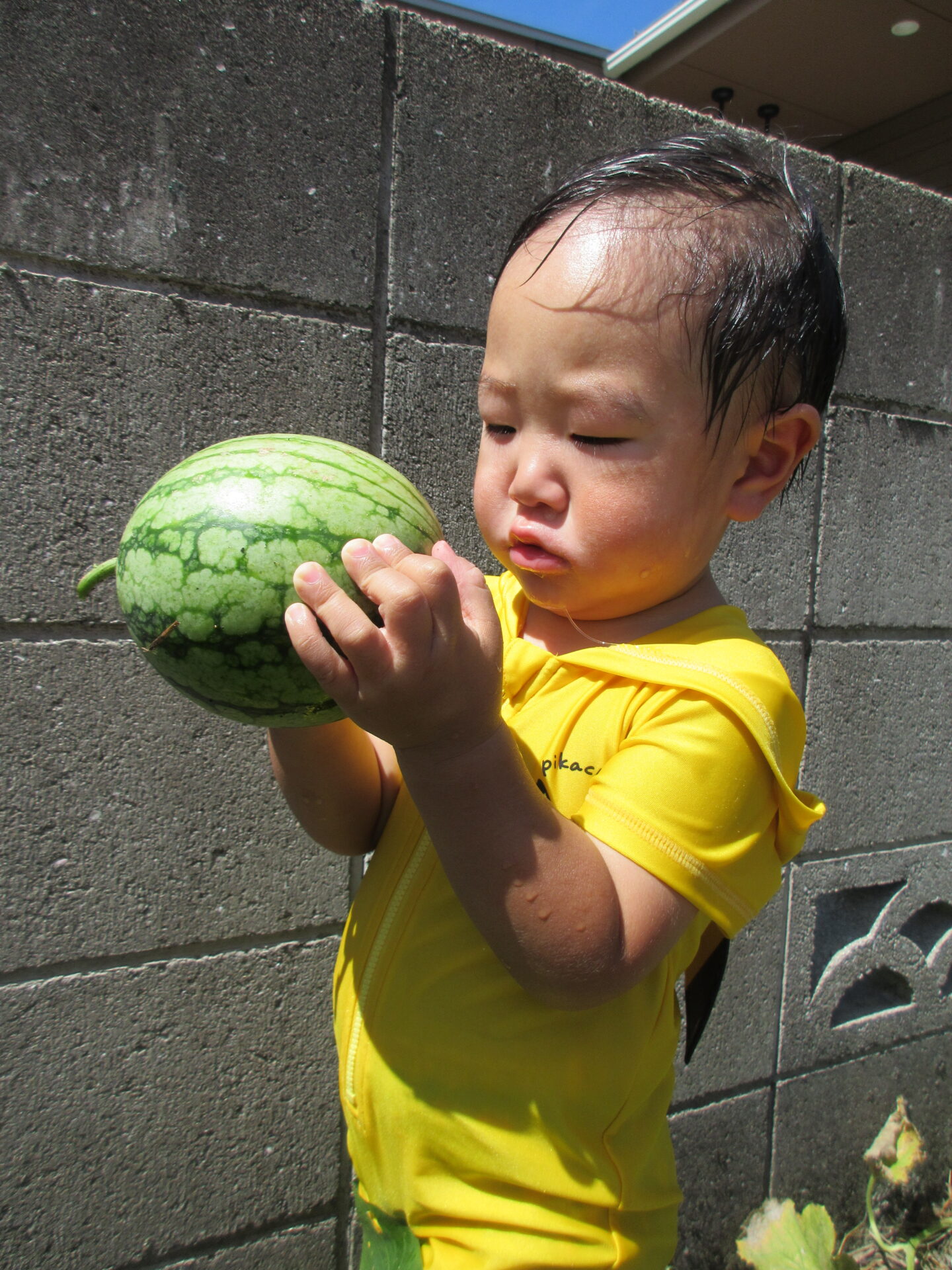 「これがスイカよ」と伝えると、じっと眺めていました。