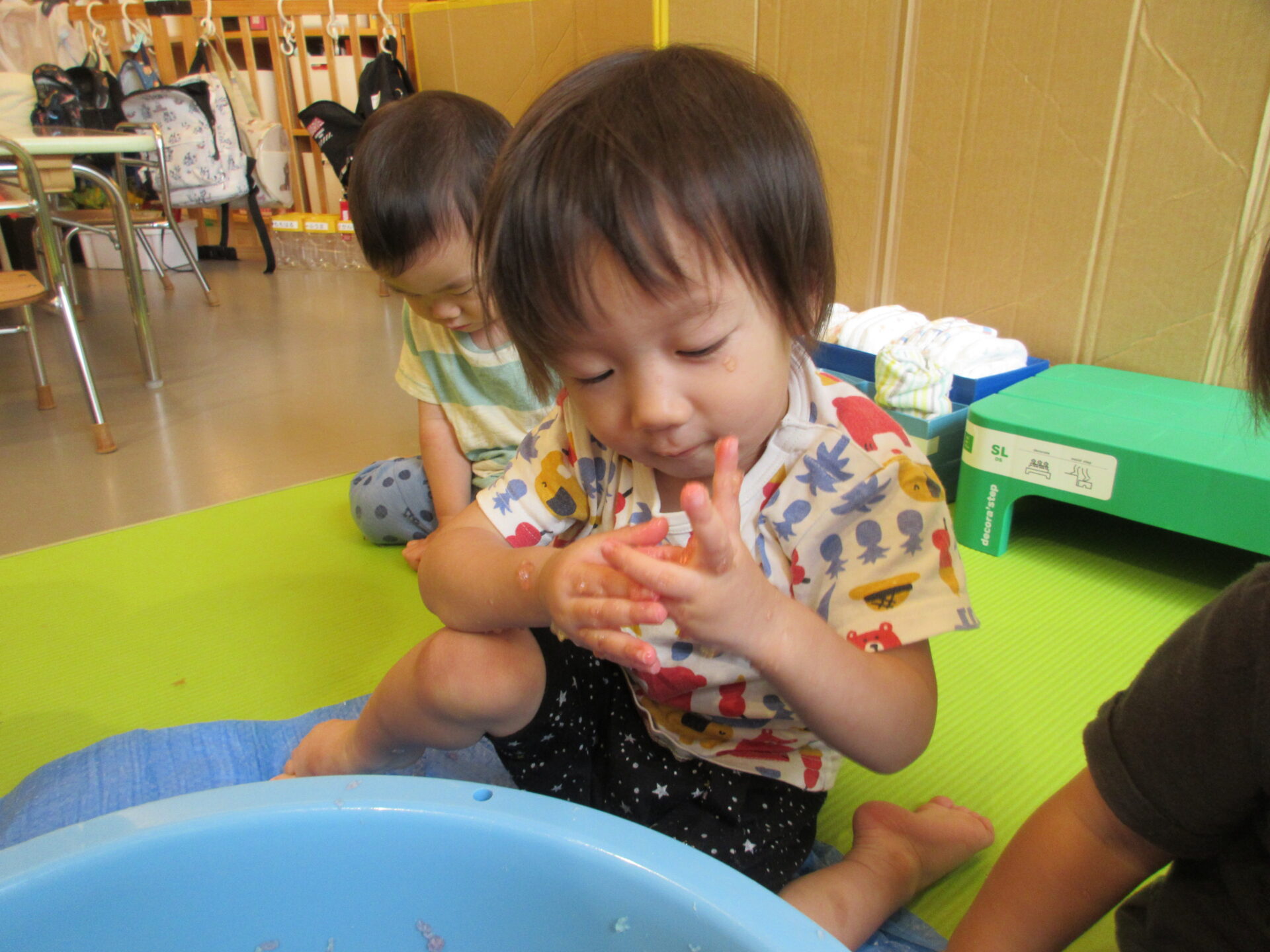 みんな思いきり寒天ゼリーまみれになって、形や感触の変化を楽しめたようです。