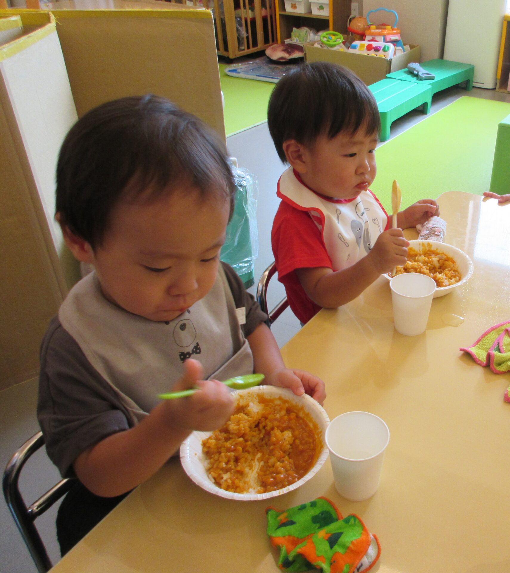 冷たいご飯に、そのままのカレールーをかけただけですが、よく食べてくれました。