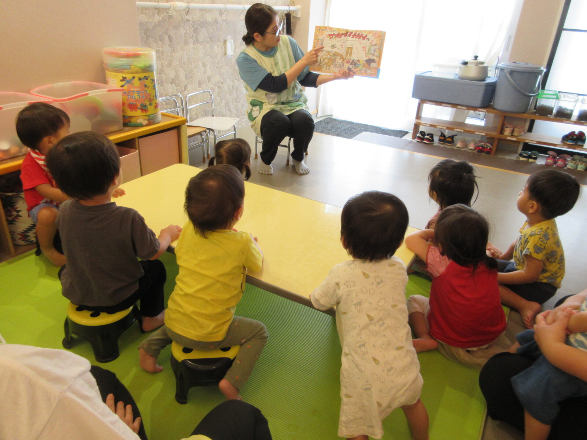まんぼう小規模保育園の子どもたちには、少し難しいかなとも思いましたが、真剣な表情で、聞いていました。少しずつ、子どもたちの中に浸透していってくれればと思います。