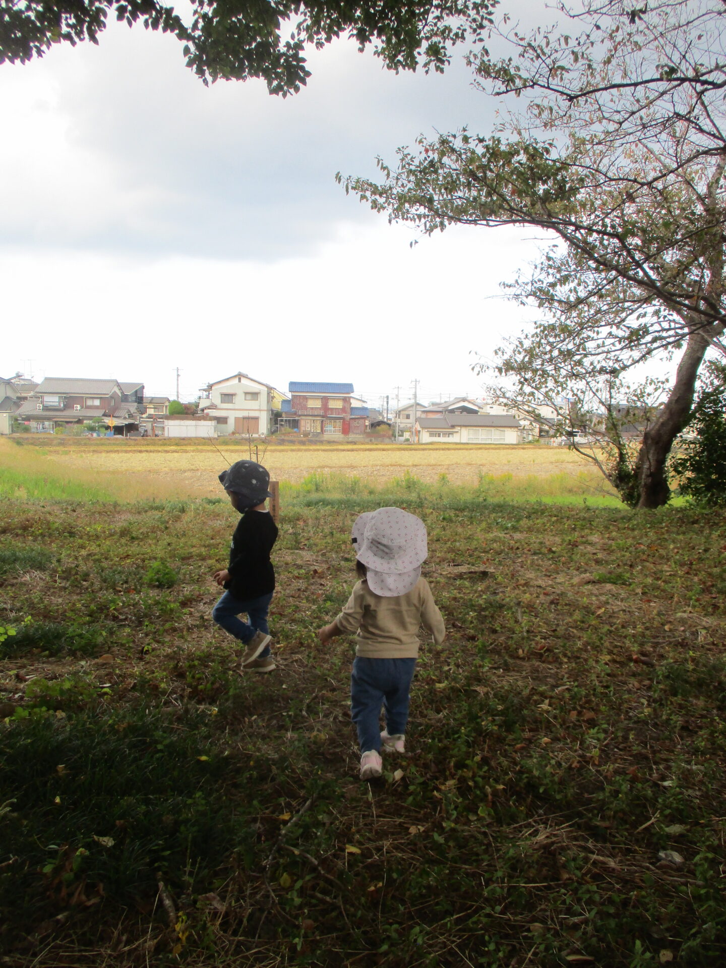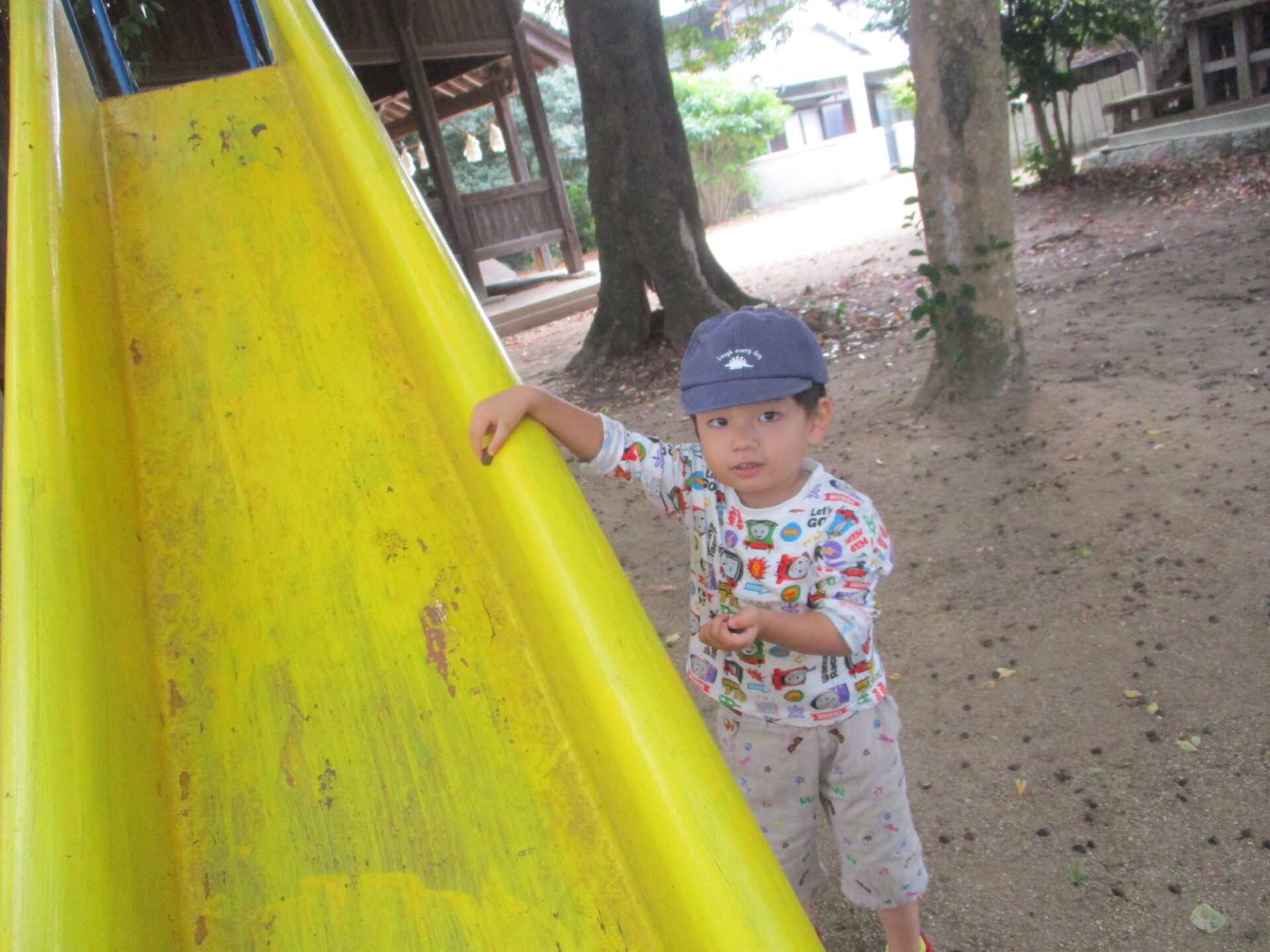 滑り台は、かなり古いので、子どもたちは滑りません。その代わり、拾った木の実(椿の実)を少し上の方からコロコロコローッてころがして遊びます。