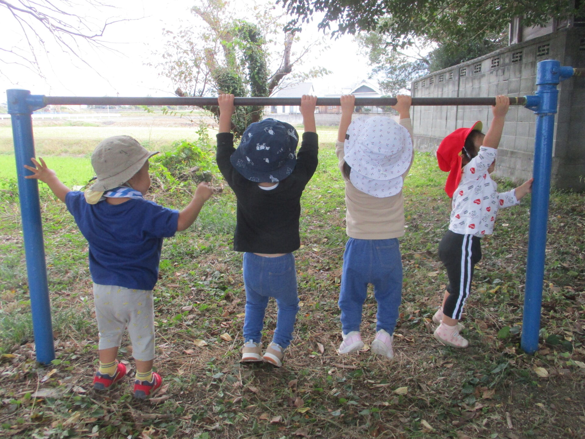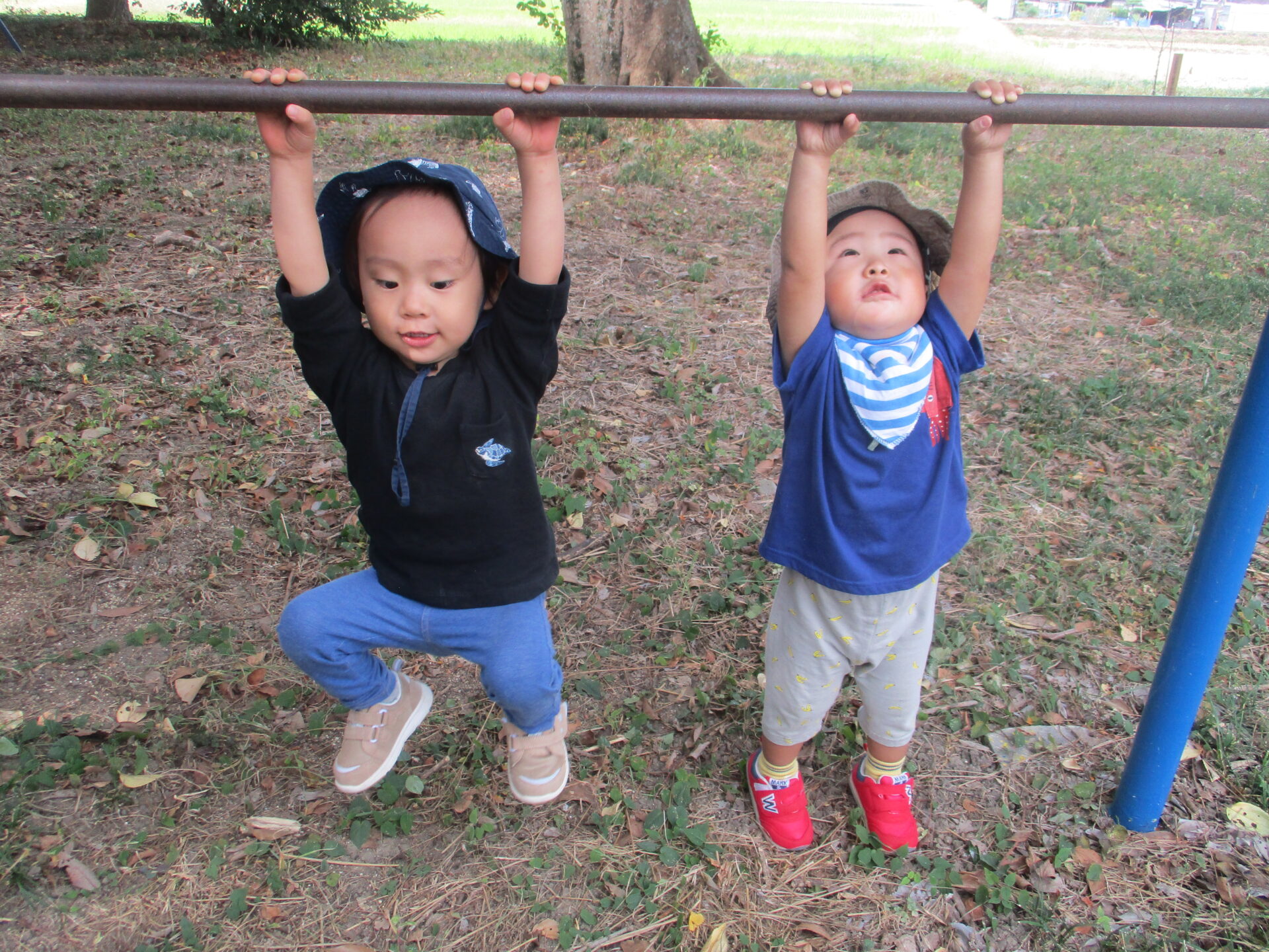 男の子たちが、鉄棒にぶら下がろうと一生懸命になっているのを発見。