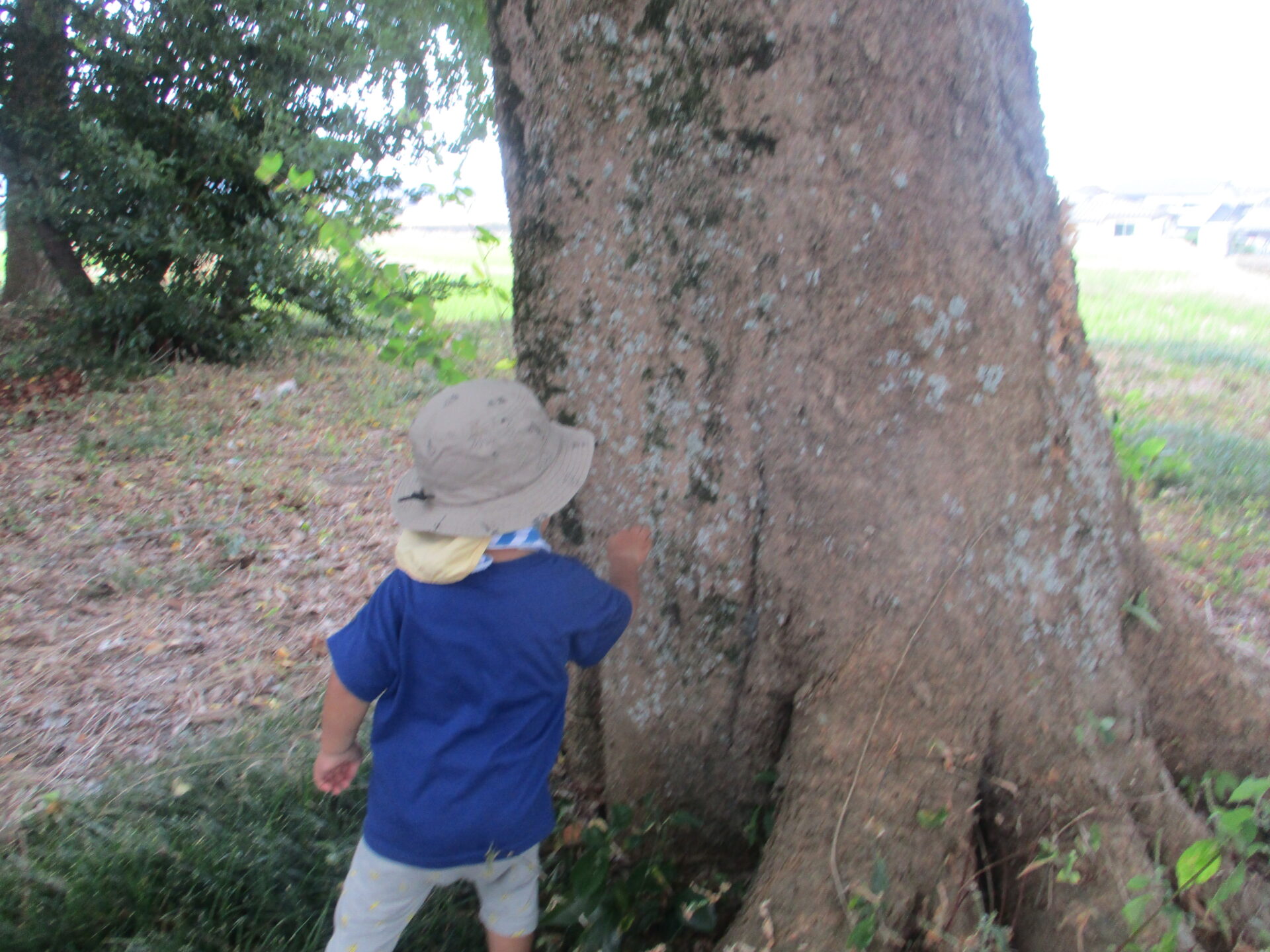 何やら木とお話しているようです。子どもの世界って、とても神秘的です。