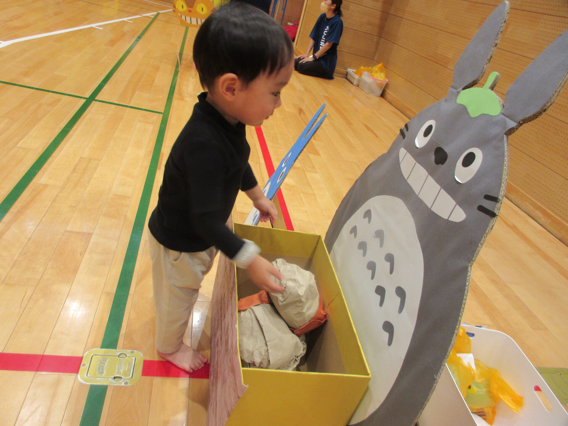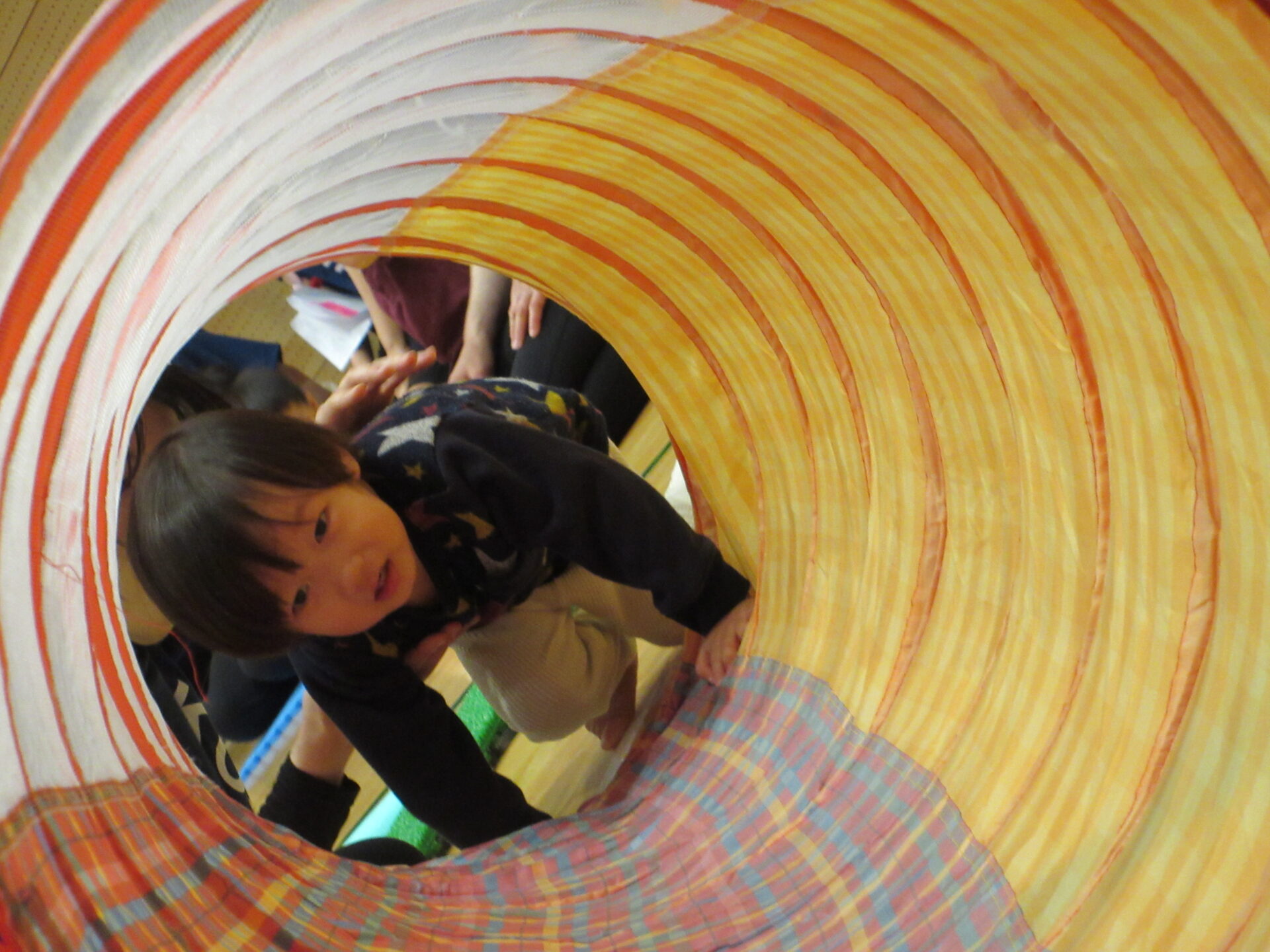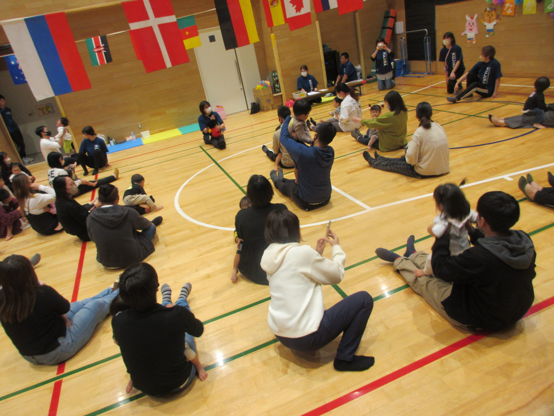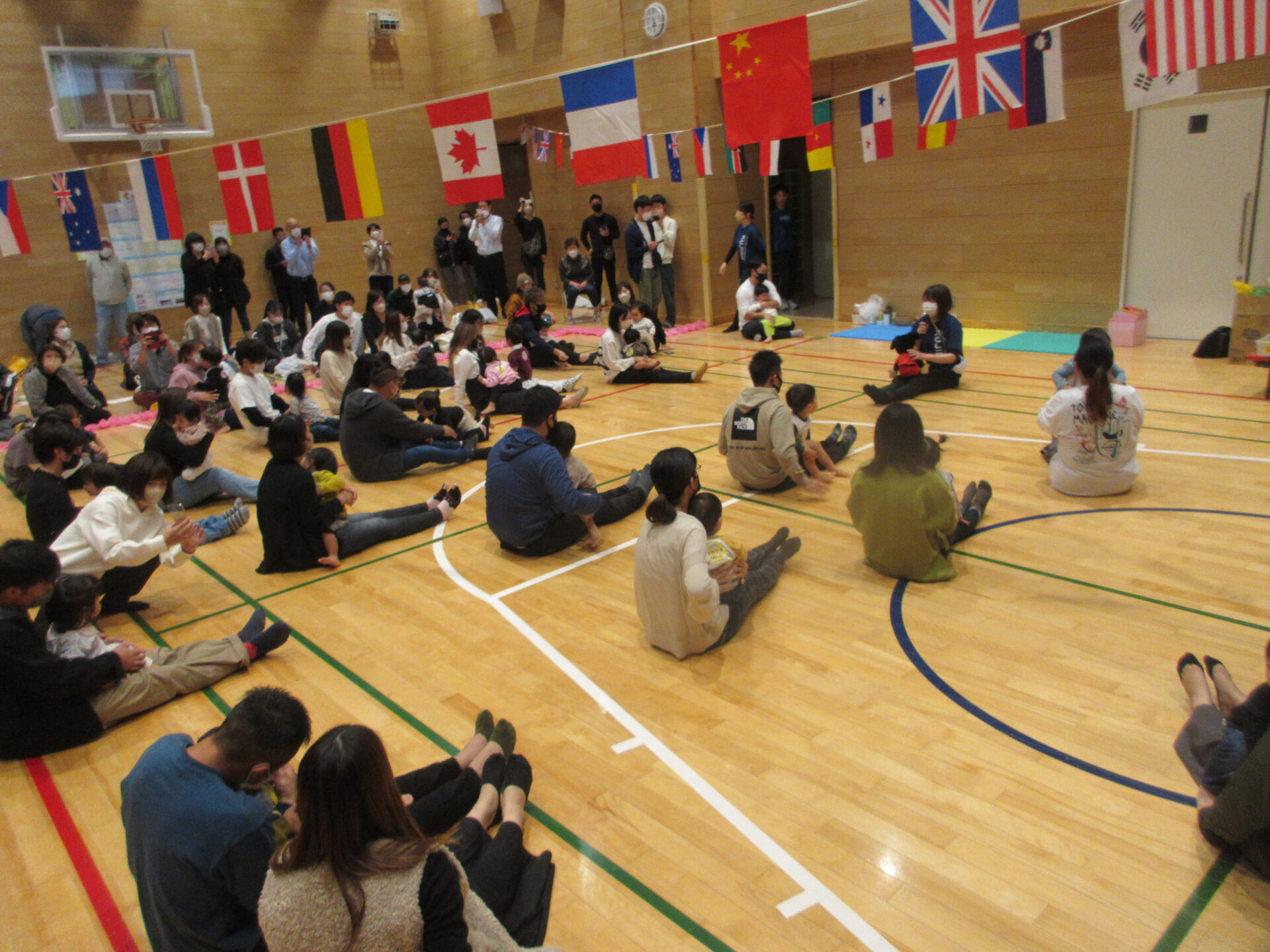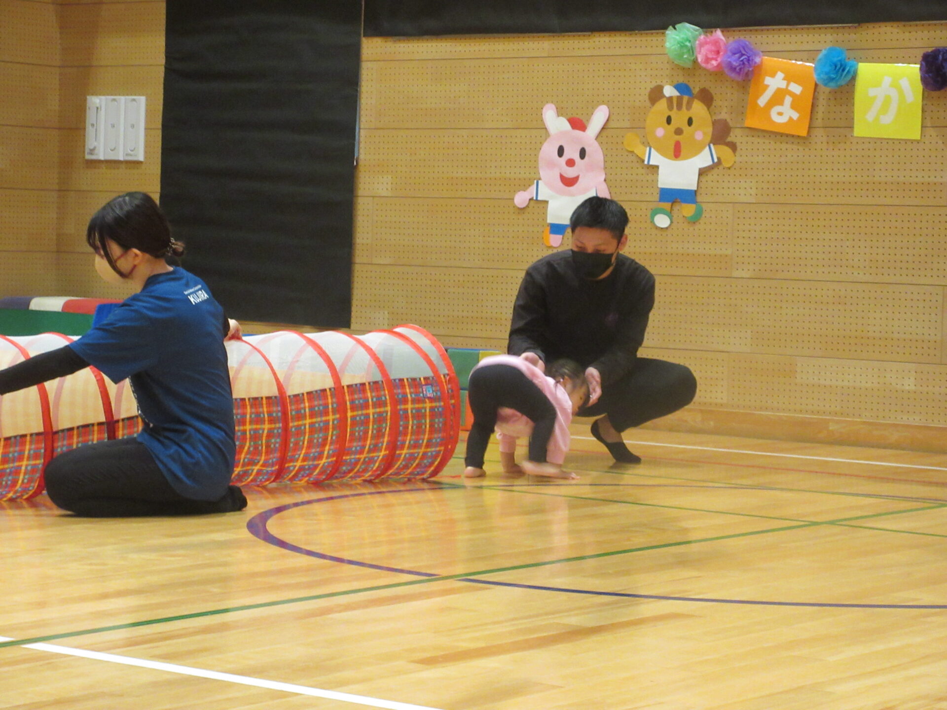 かけっこ(0歳児は、ハイハイのお友だちもいました。)や親子競技、体操教室など、みんなで楽しみました。最後は、触れ合い遊び。おうちの方の膝の上で、みんな満面の笑顔でした。