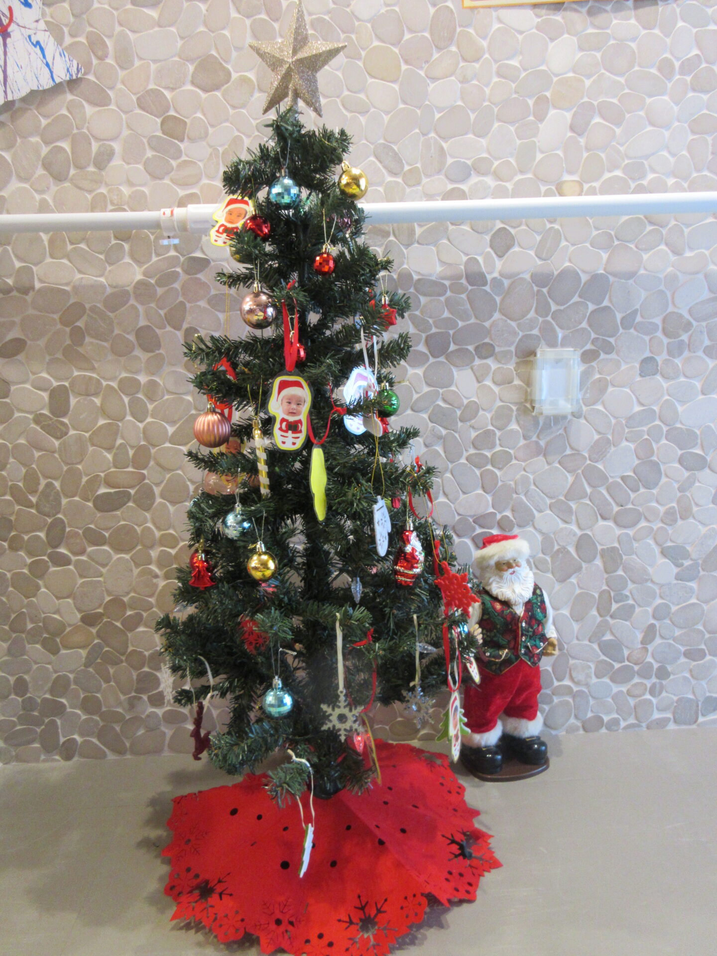 最後は、自分の顔写真が、サンタさんになっているオーナメントを渡してもらい、ツリーへ。