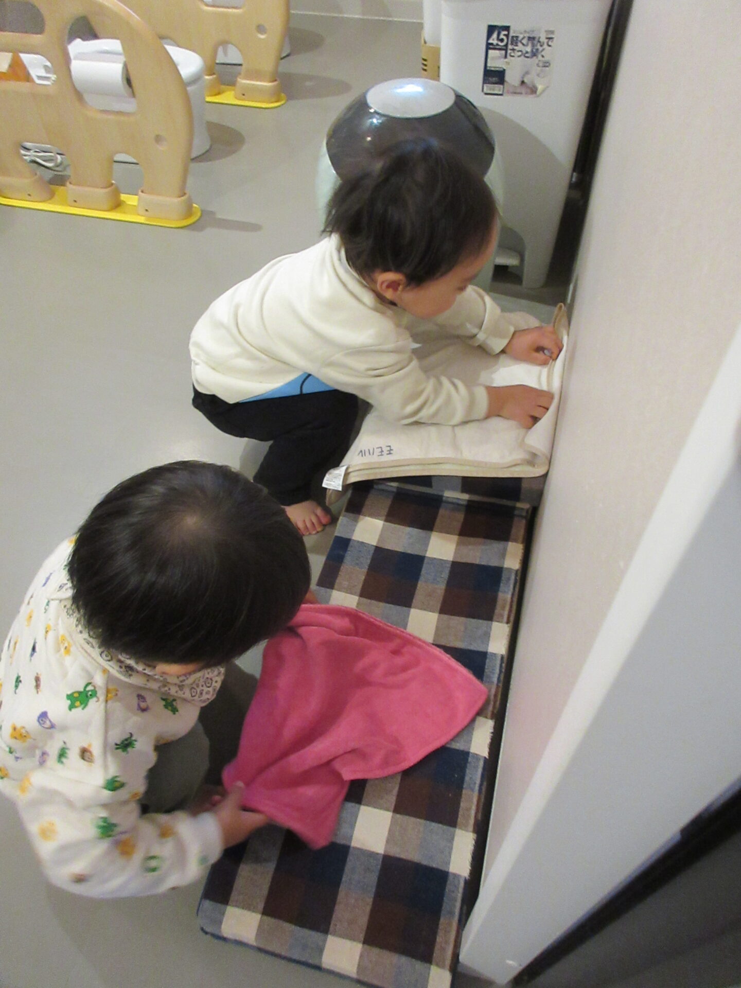排尿後は自分でパンツ、ズボンを履いて、お尻マットを畳みます。