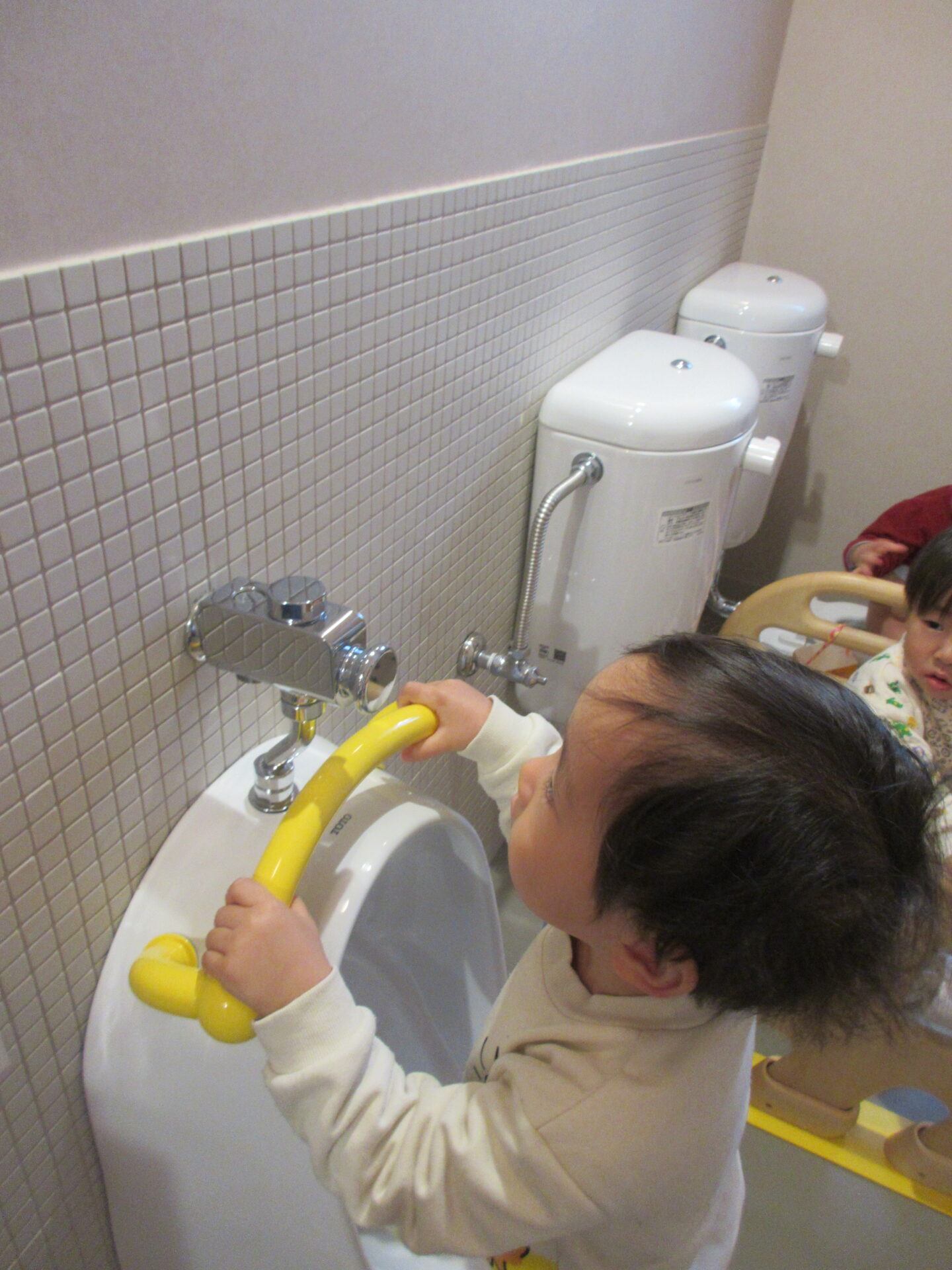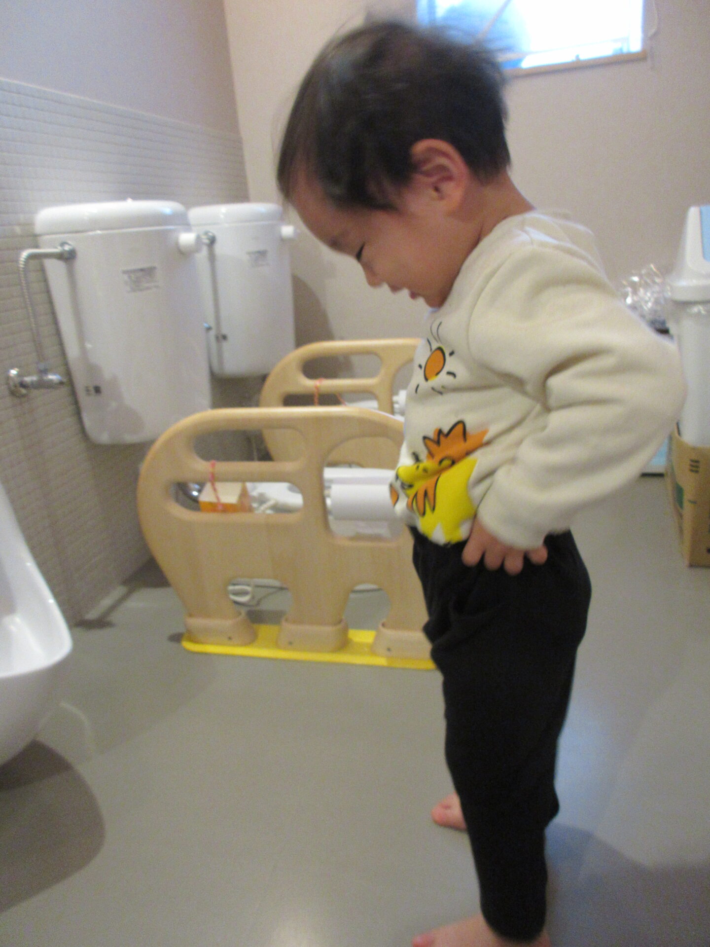 場所見知りをする子が多いので、トイレに行くことを嫌がっていましたが、少しずつ誘うことで慣れていきました。