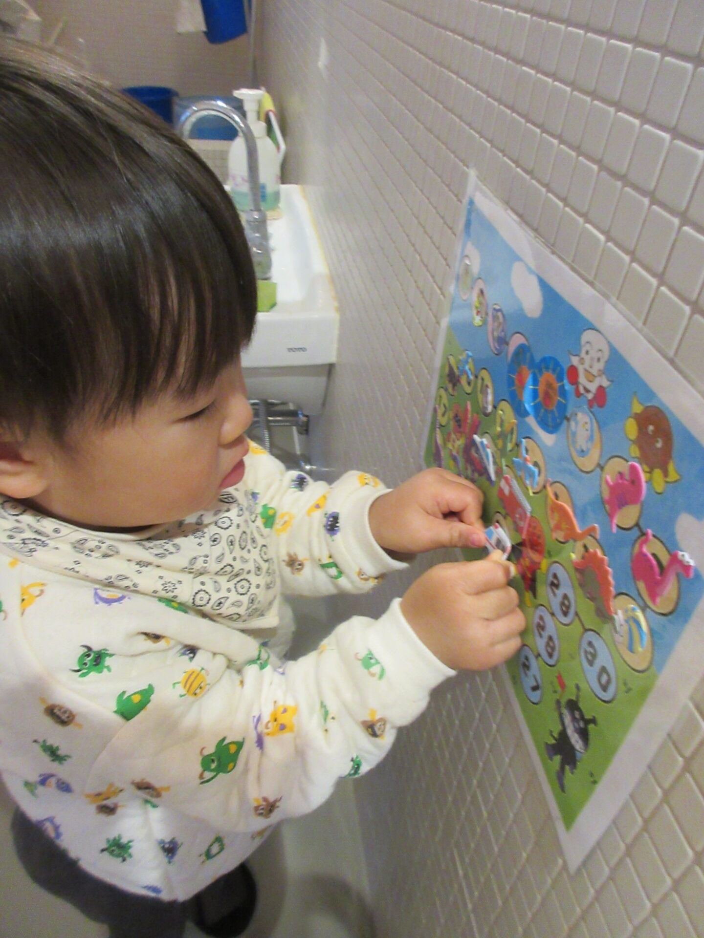排尿できたら、シールを貼ります。シールを貼れるのを励みに、トイレトレーニングを頑張っている子もいます。