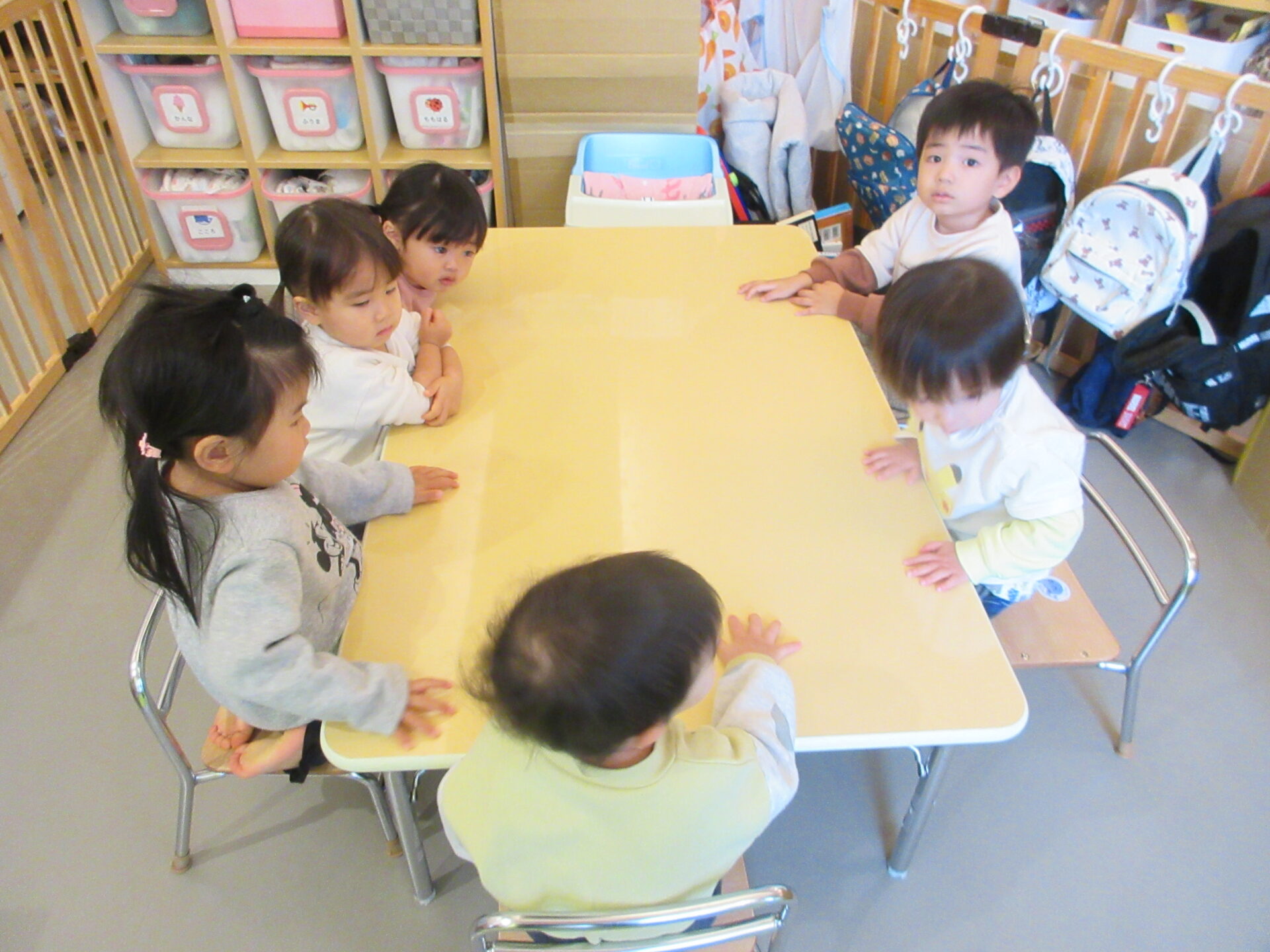 部屋に戻ってから、だんごむしのポーズで頭を守ることや、火災時の「おはしもち」(押さない、走らない、静かにする、持ち出さない、近づかない)の約束を確認しました。