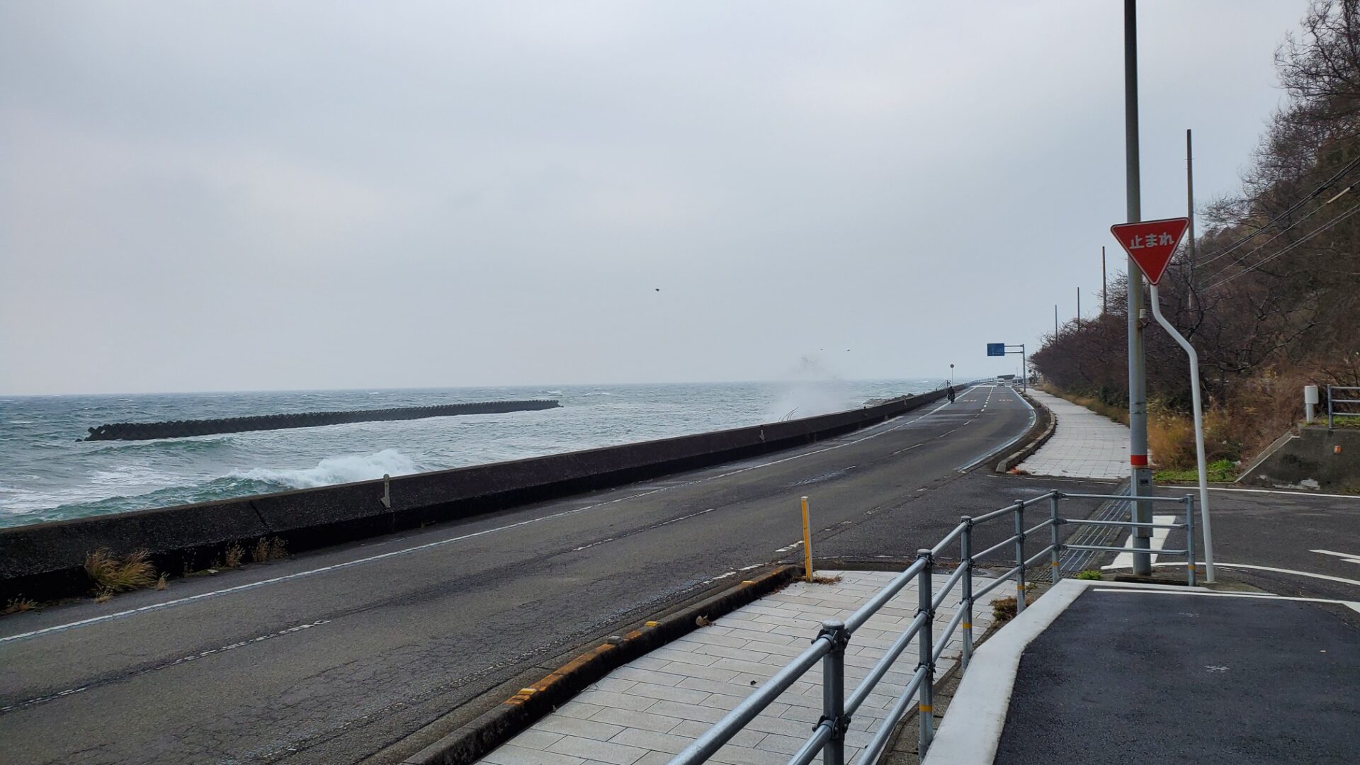 ご覧のように、波しぶきが道路に上がってきていました。