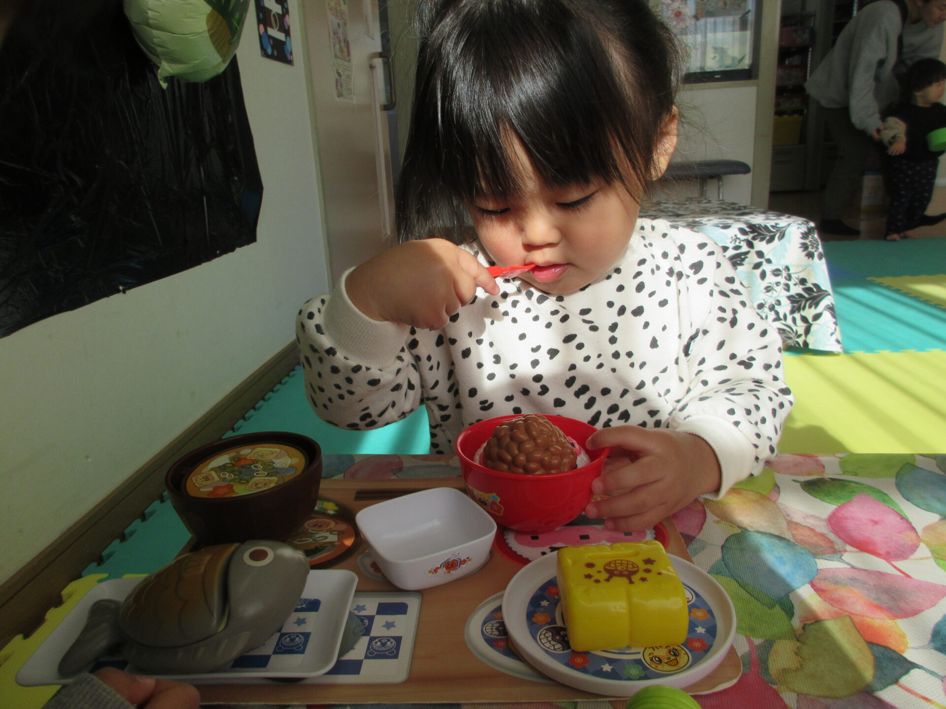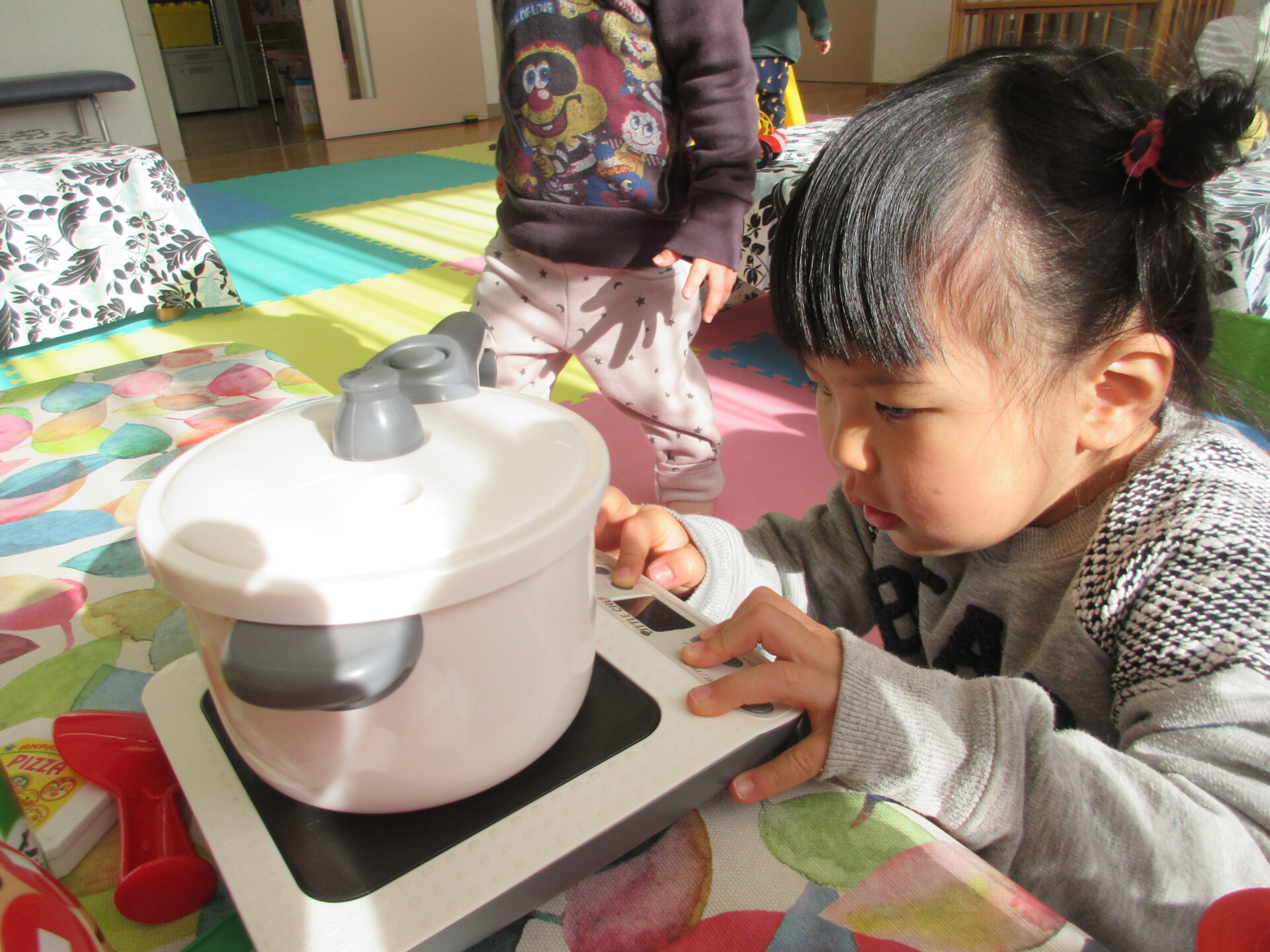 炊飯器の火加減を調節してみたり、大好きな納豆ご飯は、ままごとでも登場してみたり…