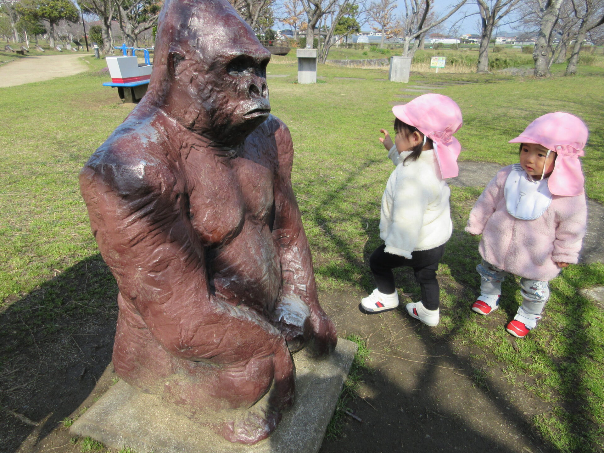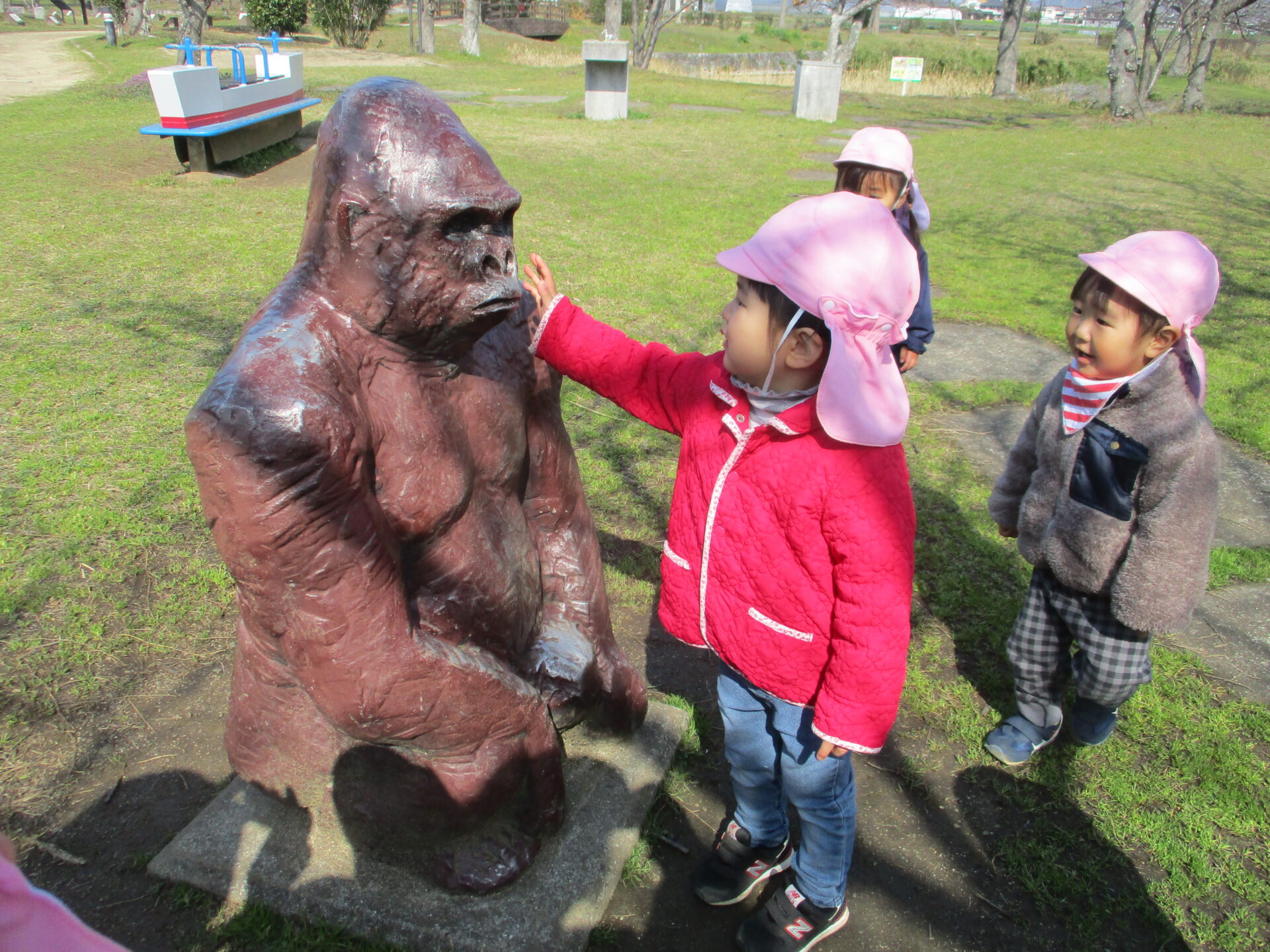 シンボルマーク(?)のゴリラには、忘れずに挨拶をしていました。