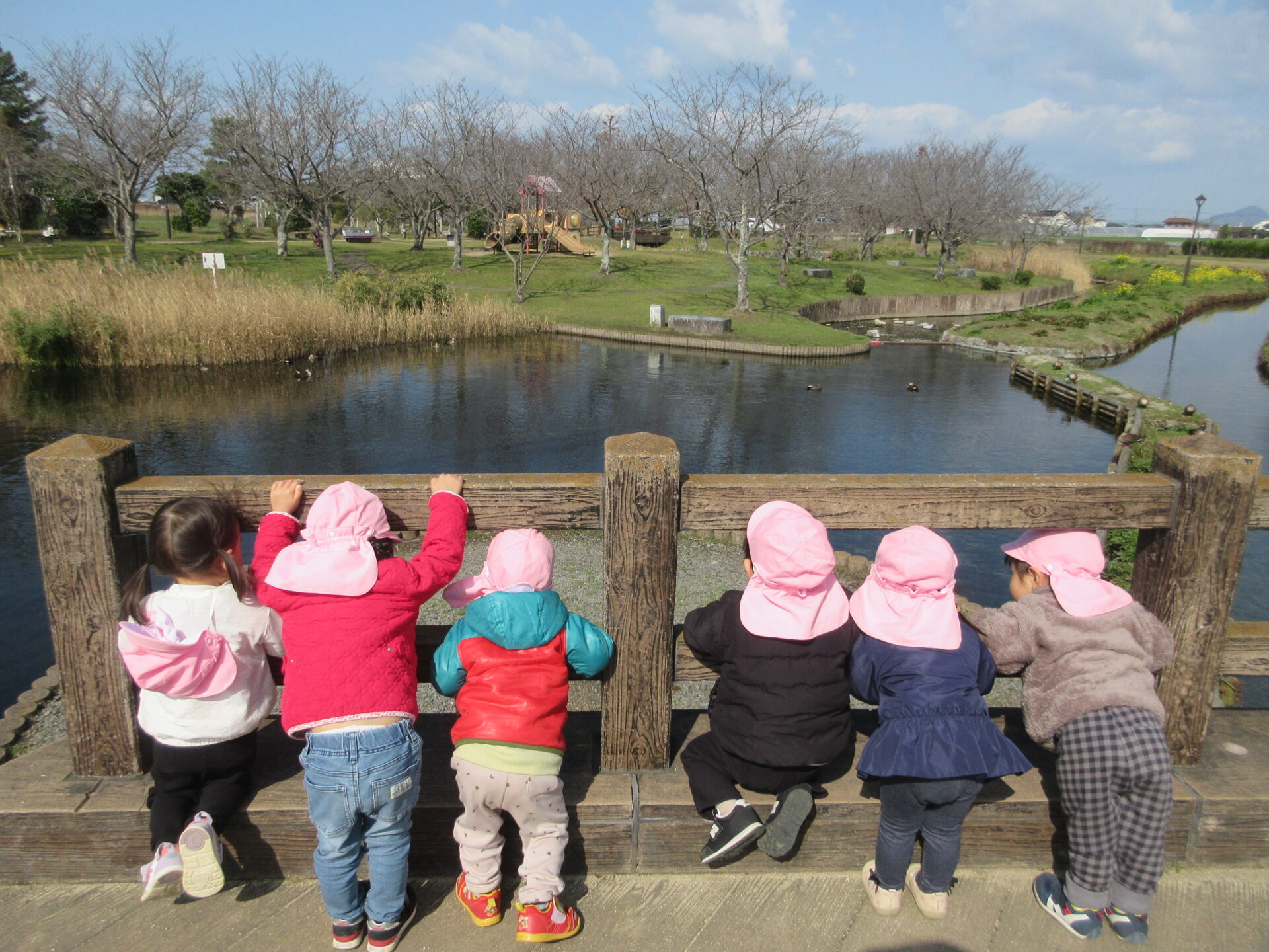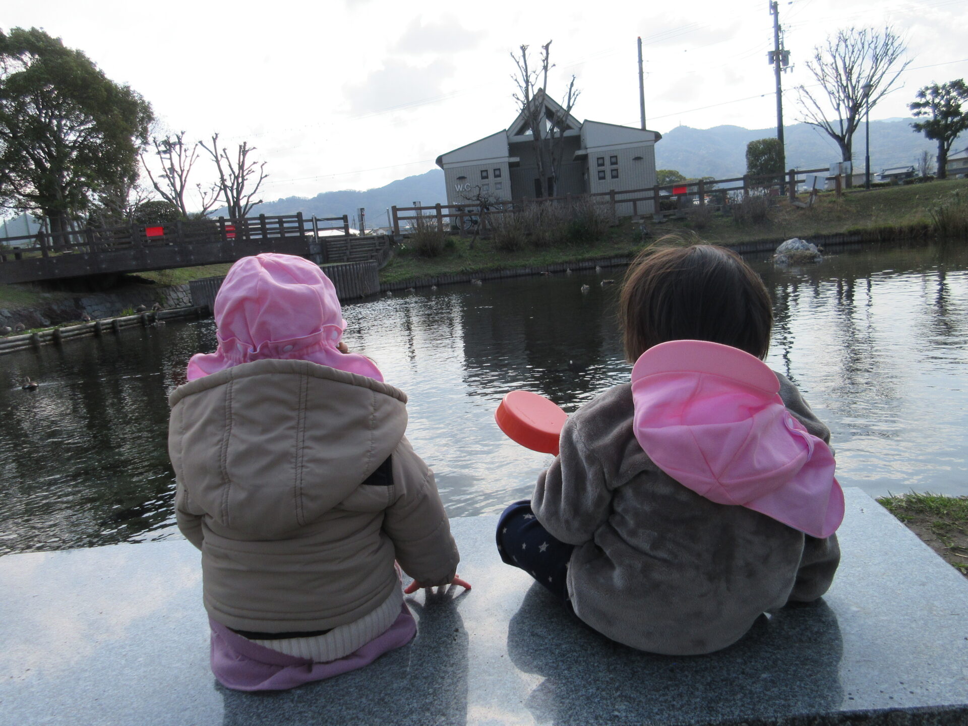 公園には、池があり、カモやコイが優雅に泳いでいました。コイはともかく、カモはあまり見る機会がないので、みんな興味深そうに見ていました。