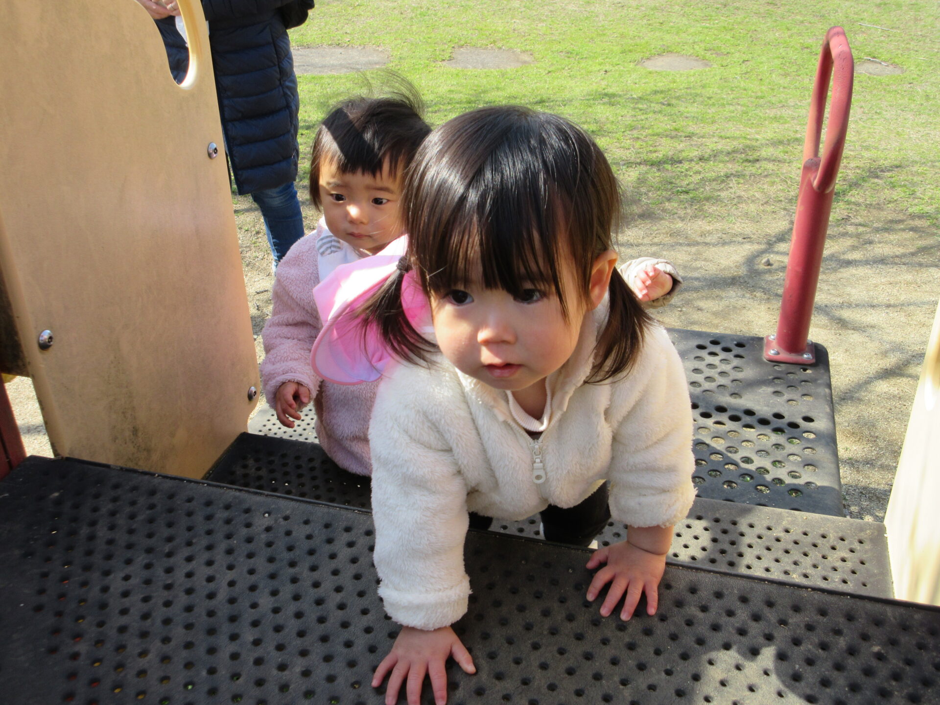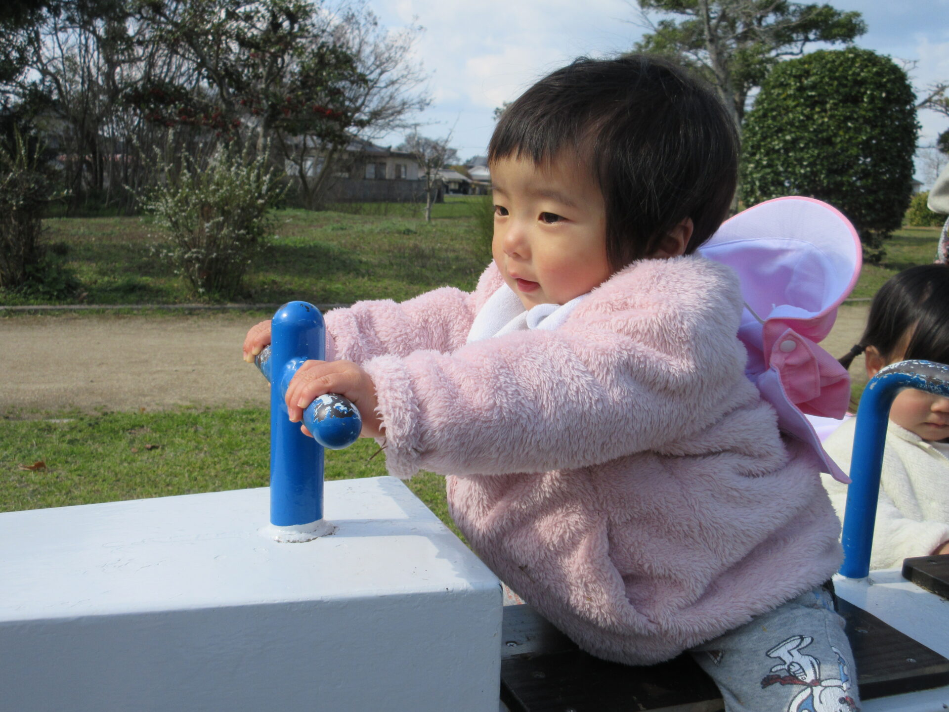『福徳泉公園』には、まんぼう小規模保育園のお友だちが使える遊具は、あまりないのですが、いつもと違う公園なので、目をキラキラさせて楽しんでいました。