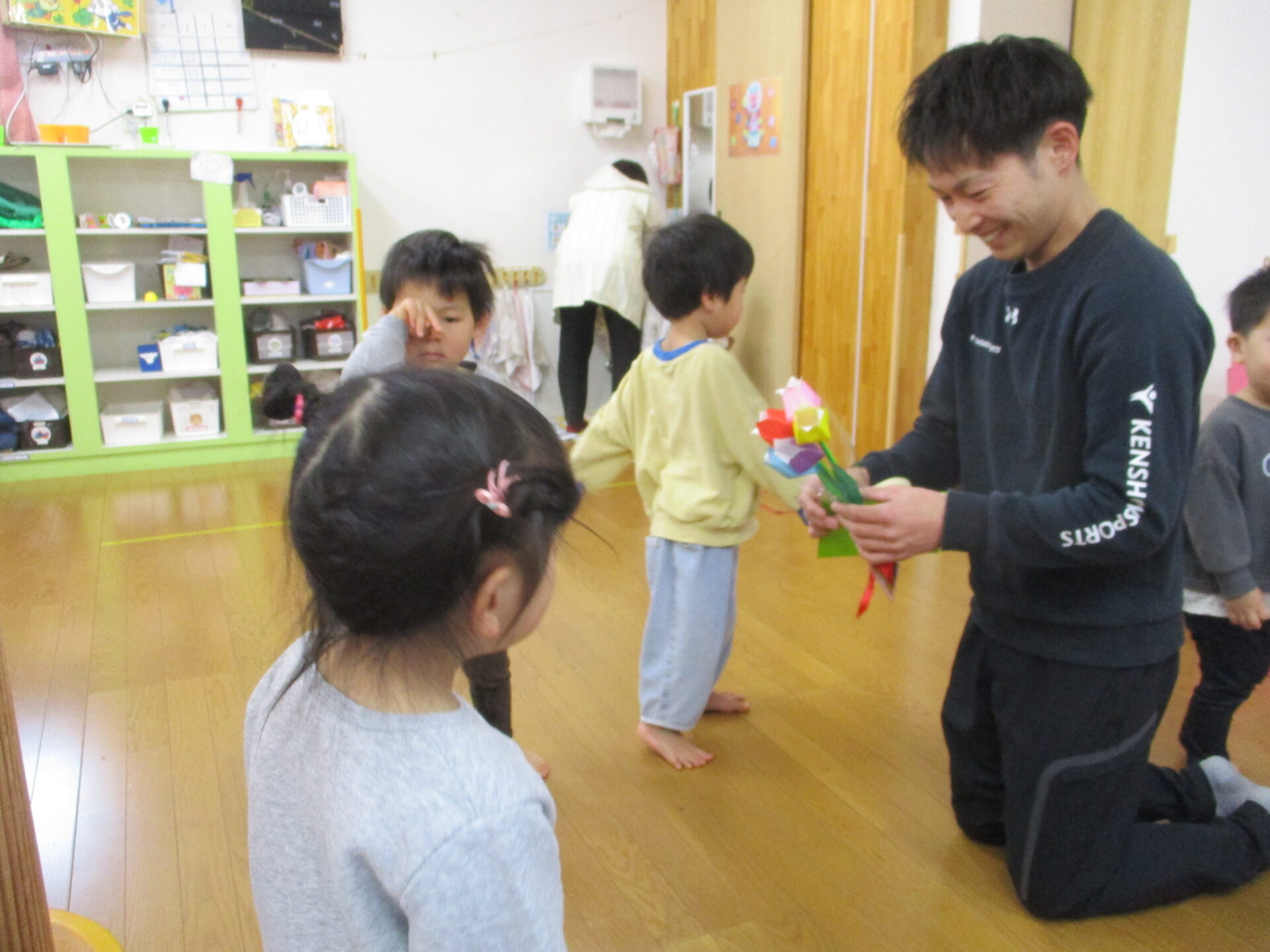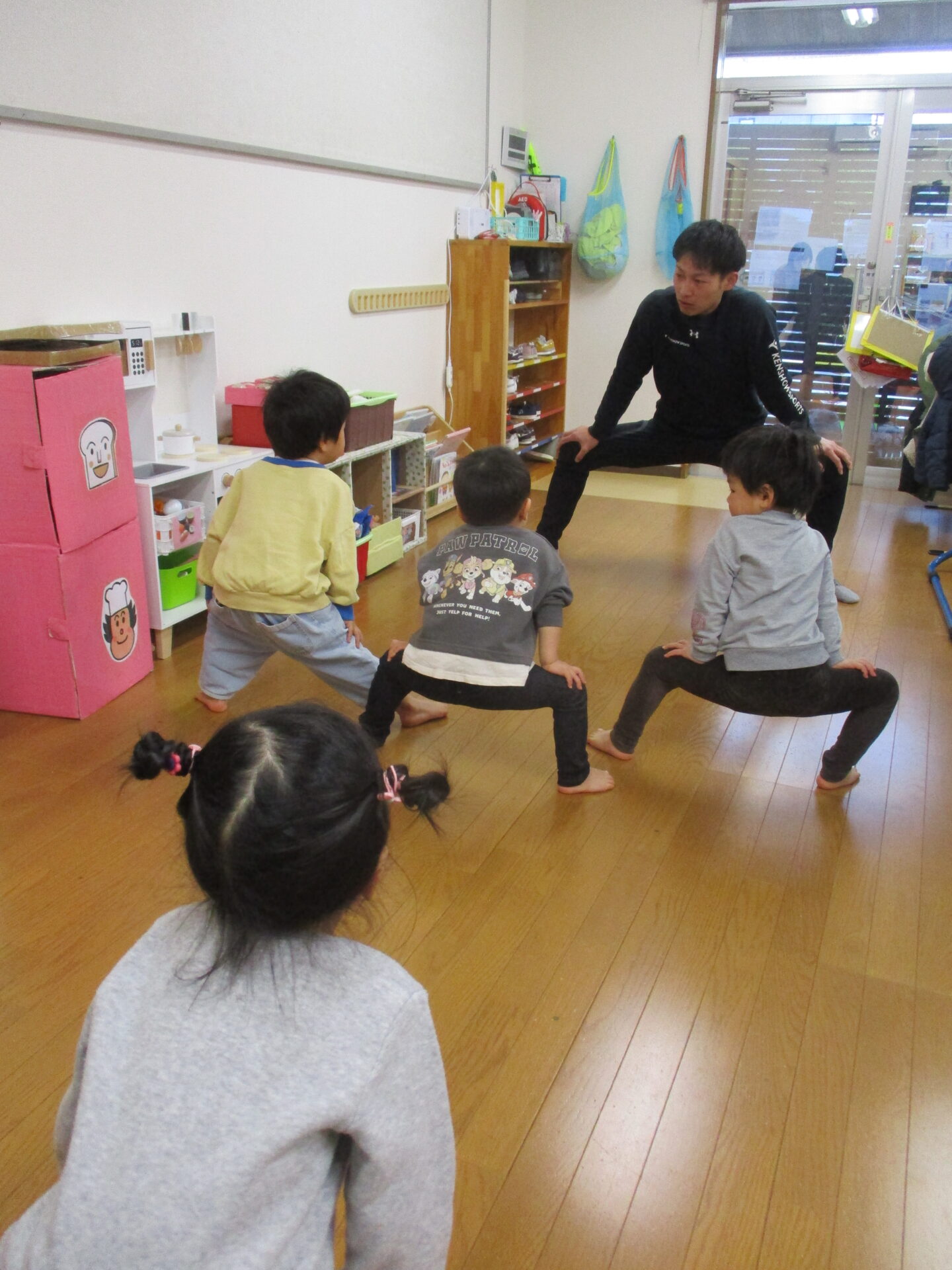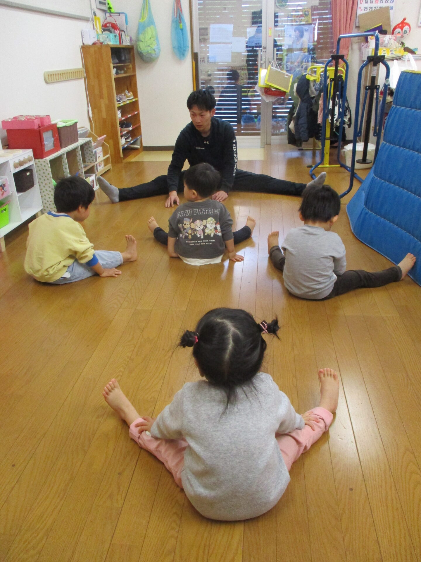 ぺんぎん組(伊予ペンギン小規模保育園、2歳児)、まんぼう組(まんぼう小規模保育園、2歳児)になってから、始めた体操教室。今日が、最終日でした。『礼に始まり、礼に終わる』という言葉があるように、けんしょう先生には、最初の挨拶「お願いします」から最後の挨拶「ありがとうございました」までを、しっかりと教えていただきました。2歳児といえど、きちんと身に付きました。体育座りもこんなに上達しました。けんしょう先生のおかげです💕