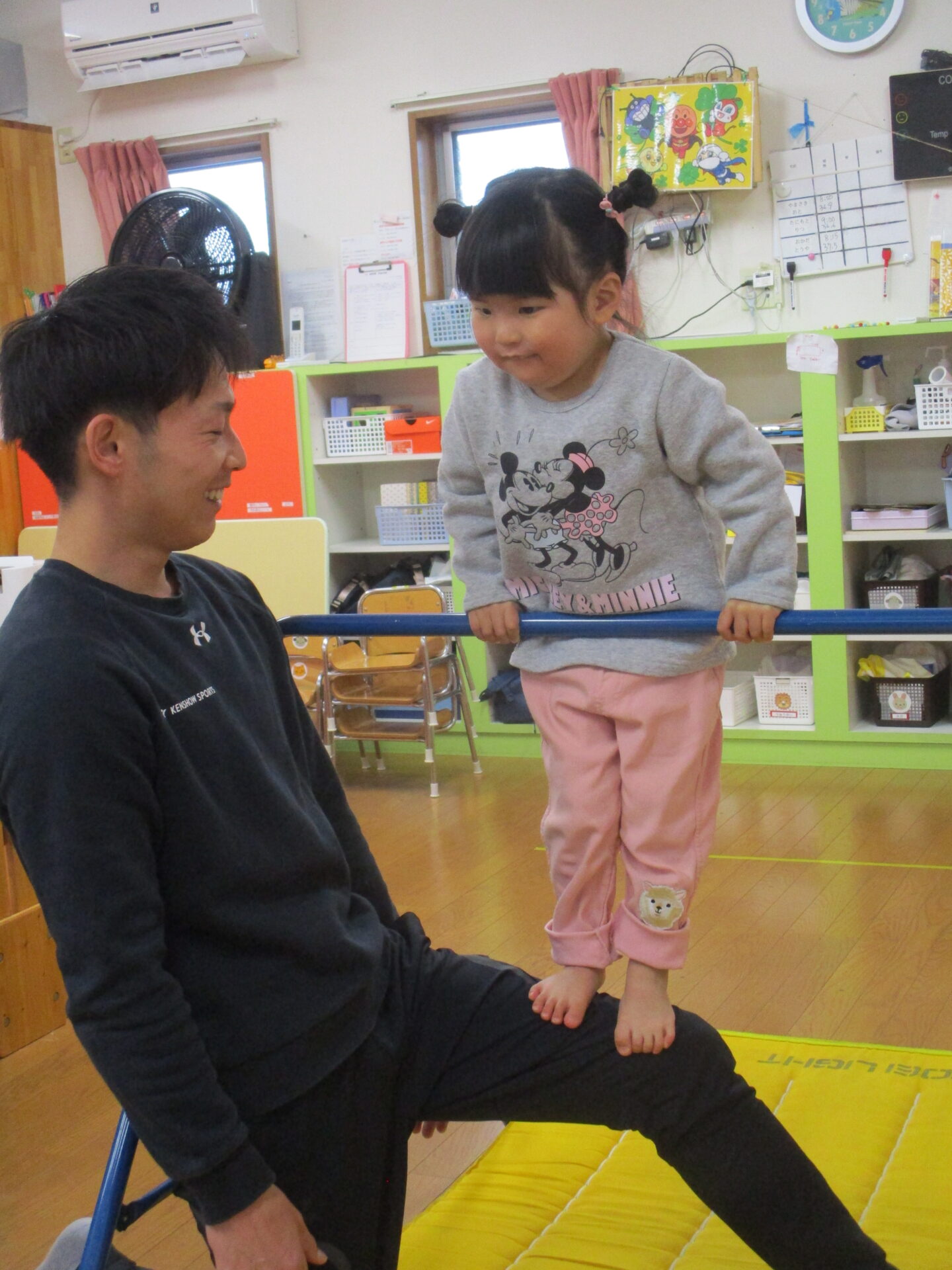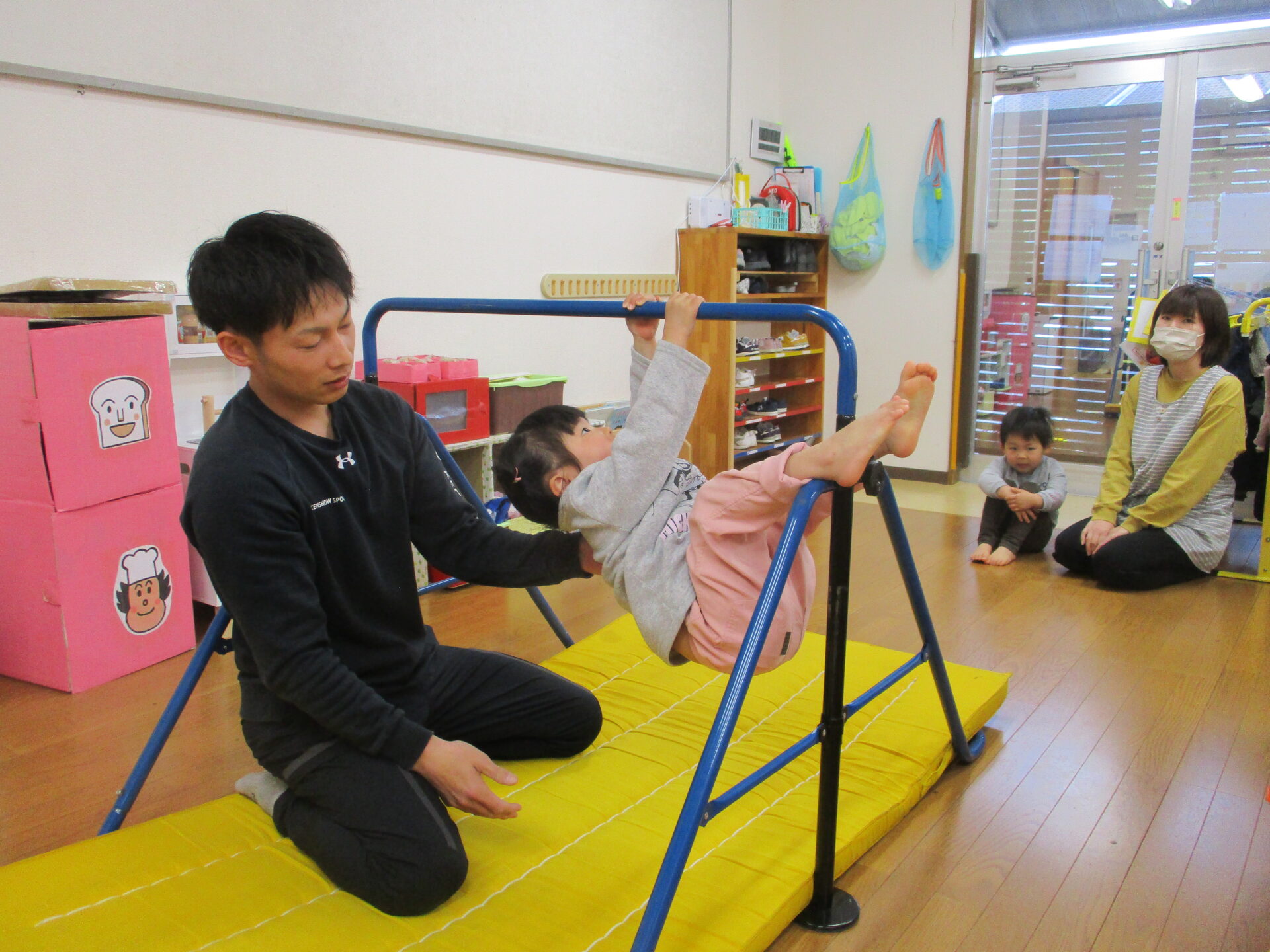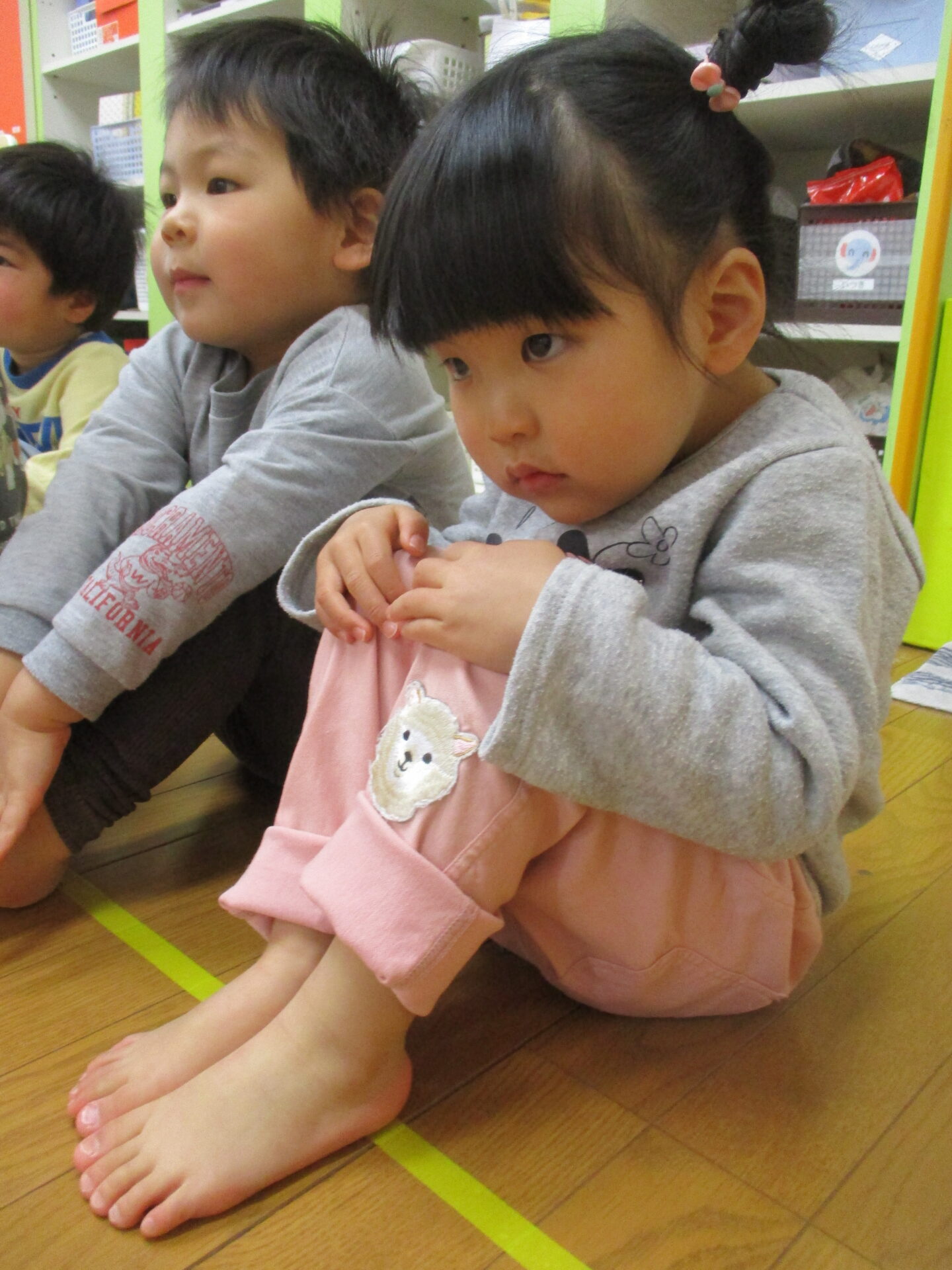 ぺんぎん組(伊予ペンギン小規模保育園、2歳児)、まんぼう組(まんぼう小規模保育園、2歳児)になってから、始めた体操教室。今日が、最終日でした。『礼に始まり、礼に終わる』という言葉があるように、けんしょう先生には、最初の挨拶「お願いします」から最後の挨拶「ありがとうございました」までを、しっかりと教えていただきました。2歳児といえど、きちんと身に付きました。体育座りもこんなに上達しました。けんしょう先生のおかげです💕