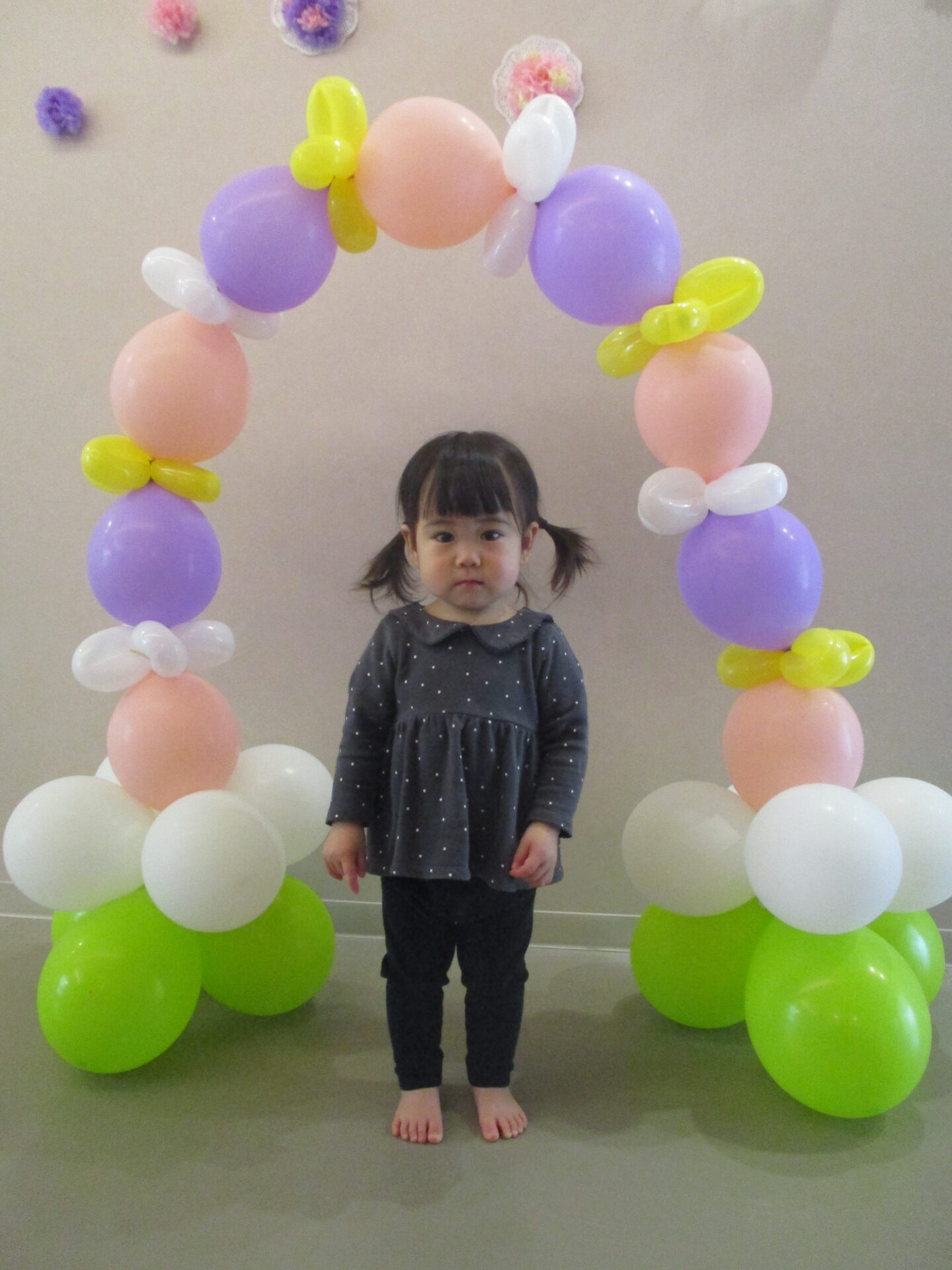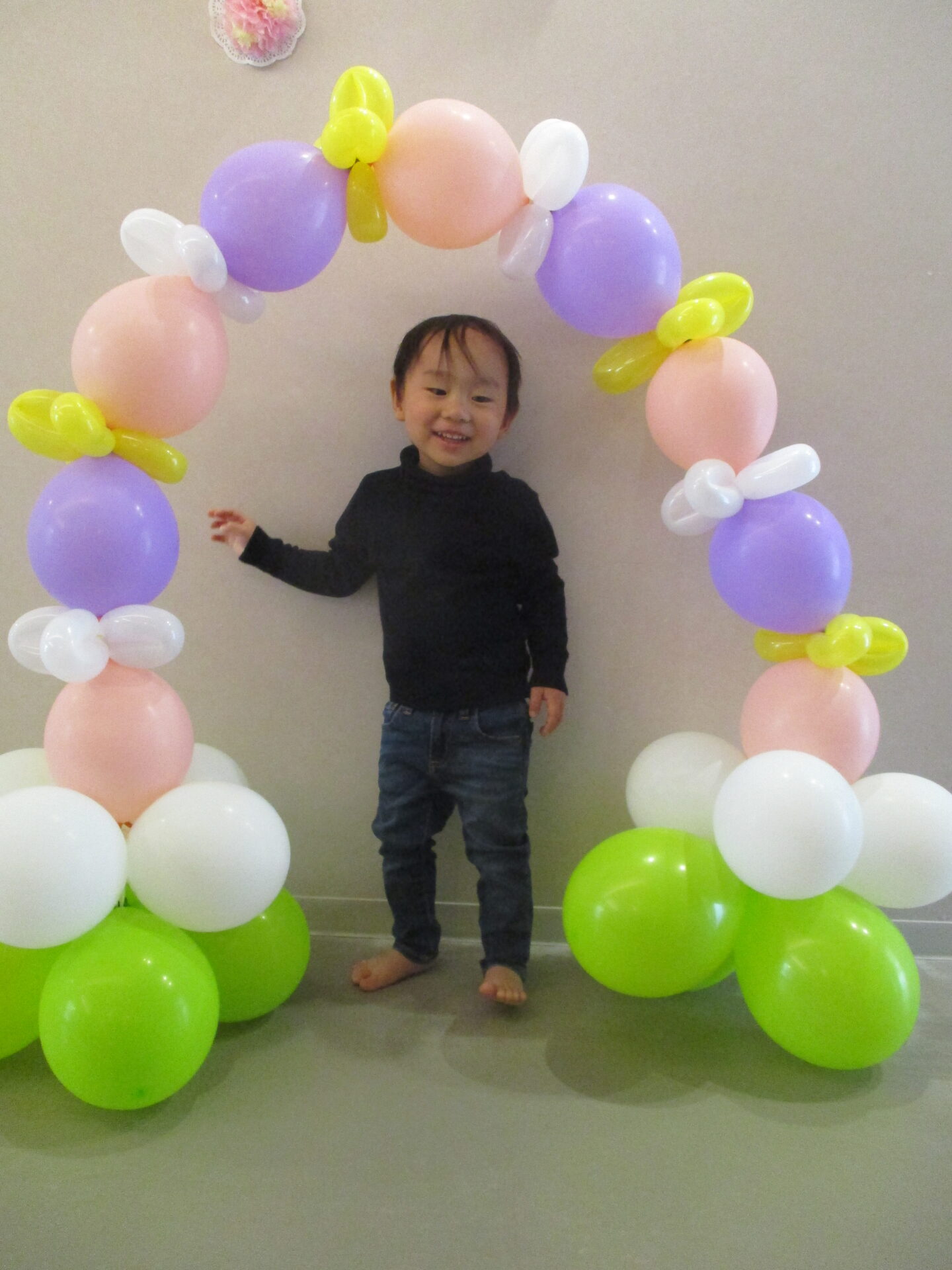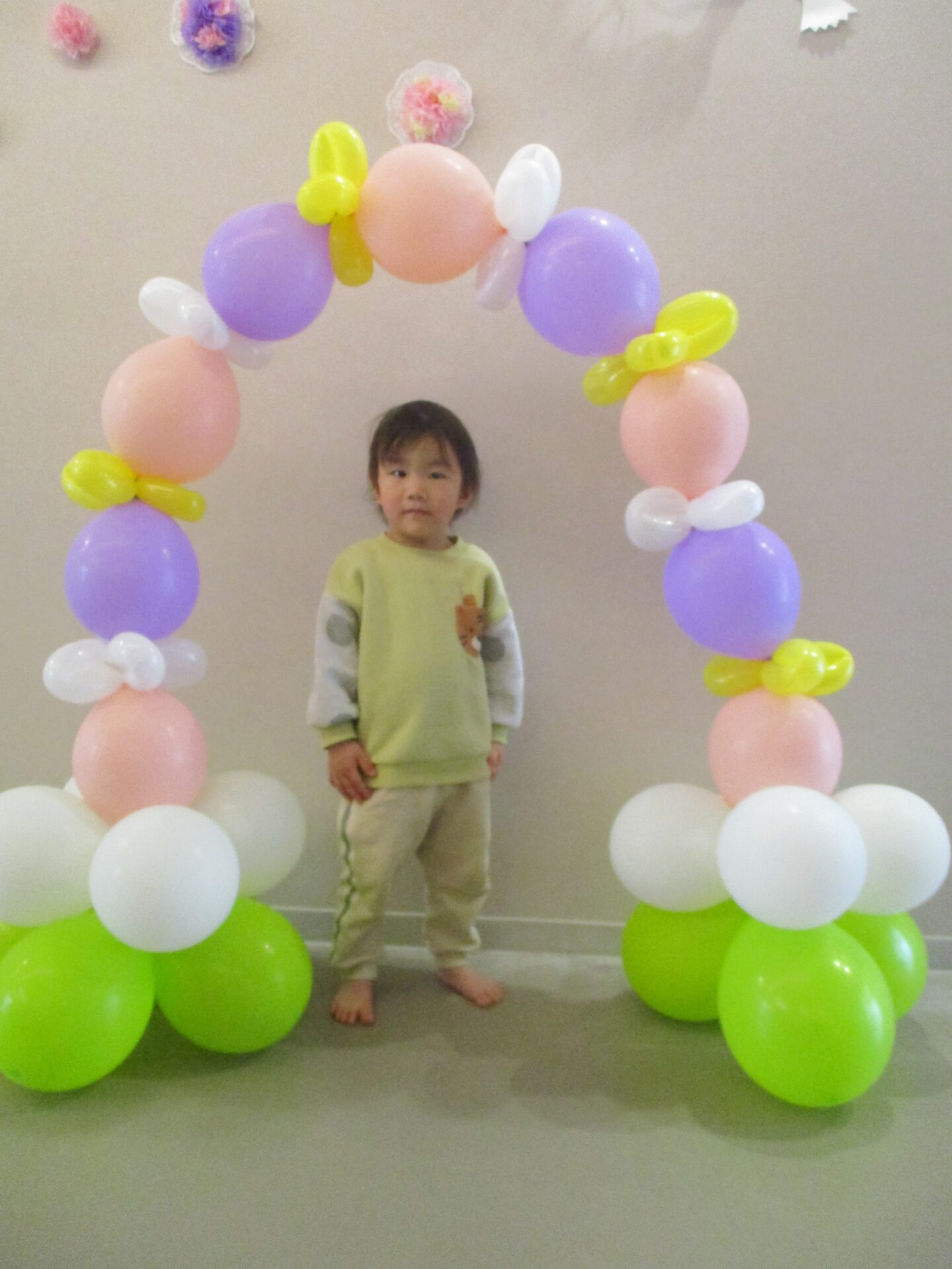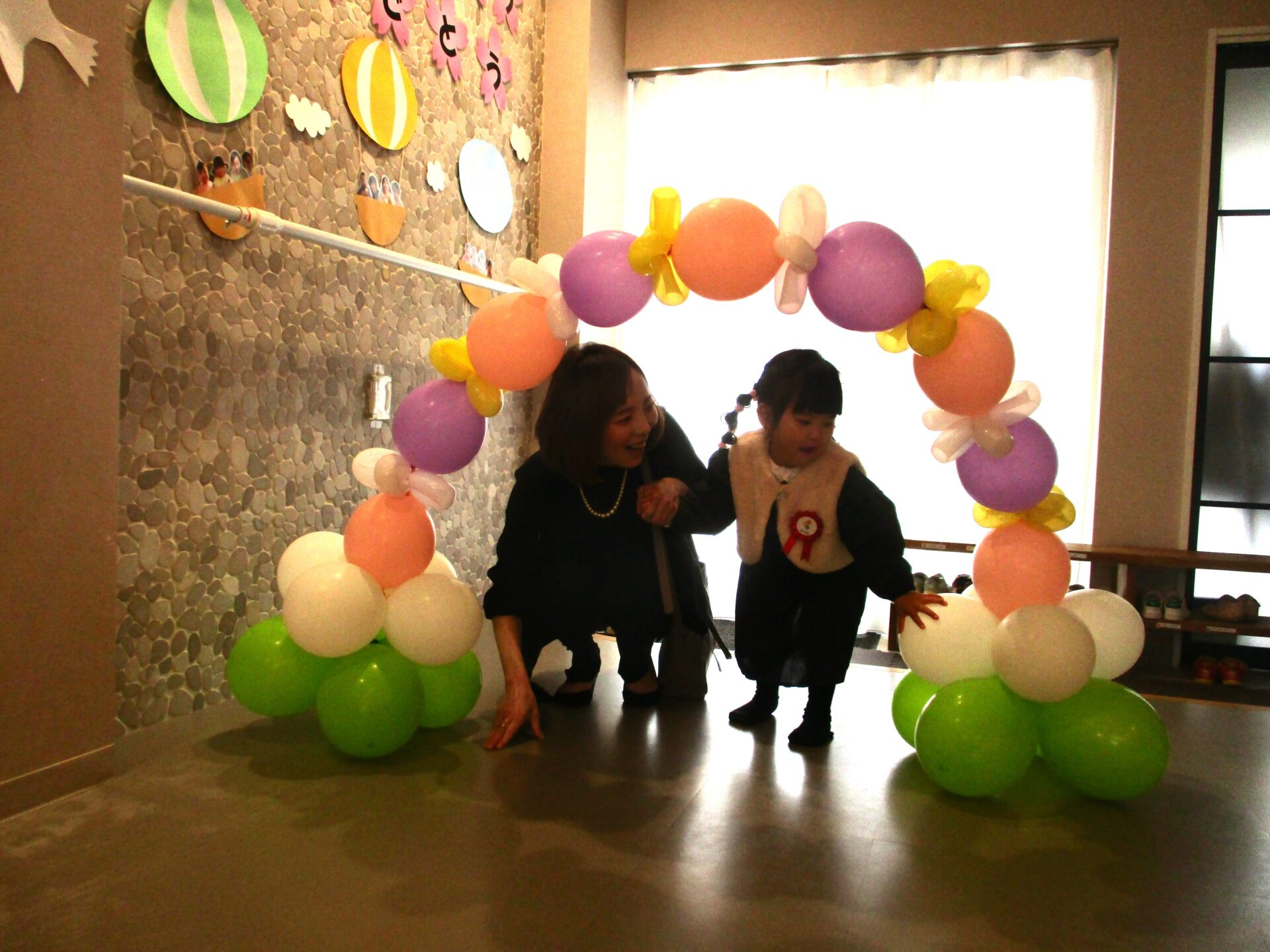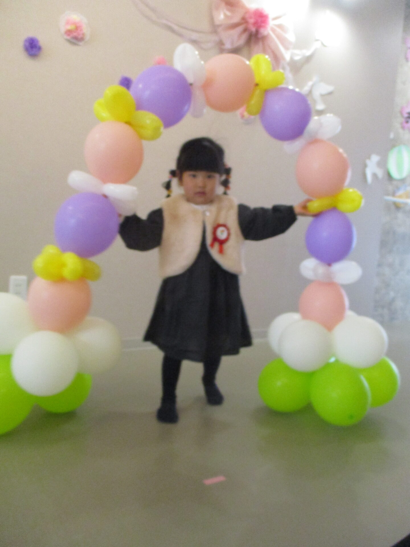 最後は、卒園児が通ったバルーンアーチをバックに写真撮影。か・な・り、いいです👍(自画自賛)