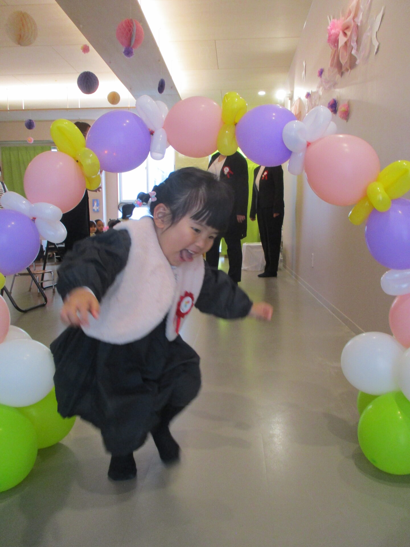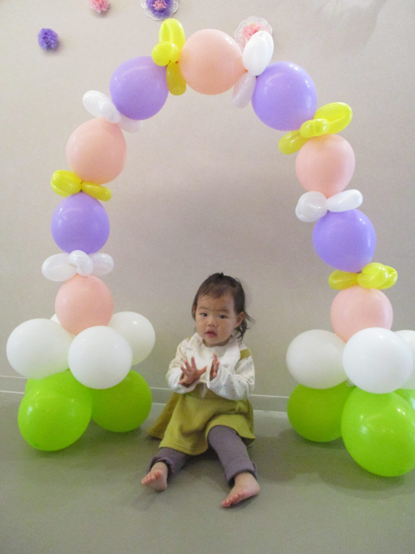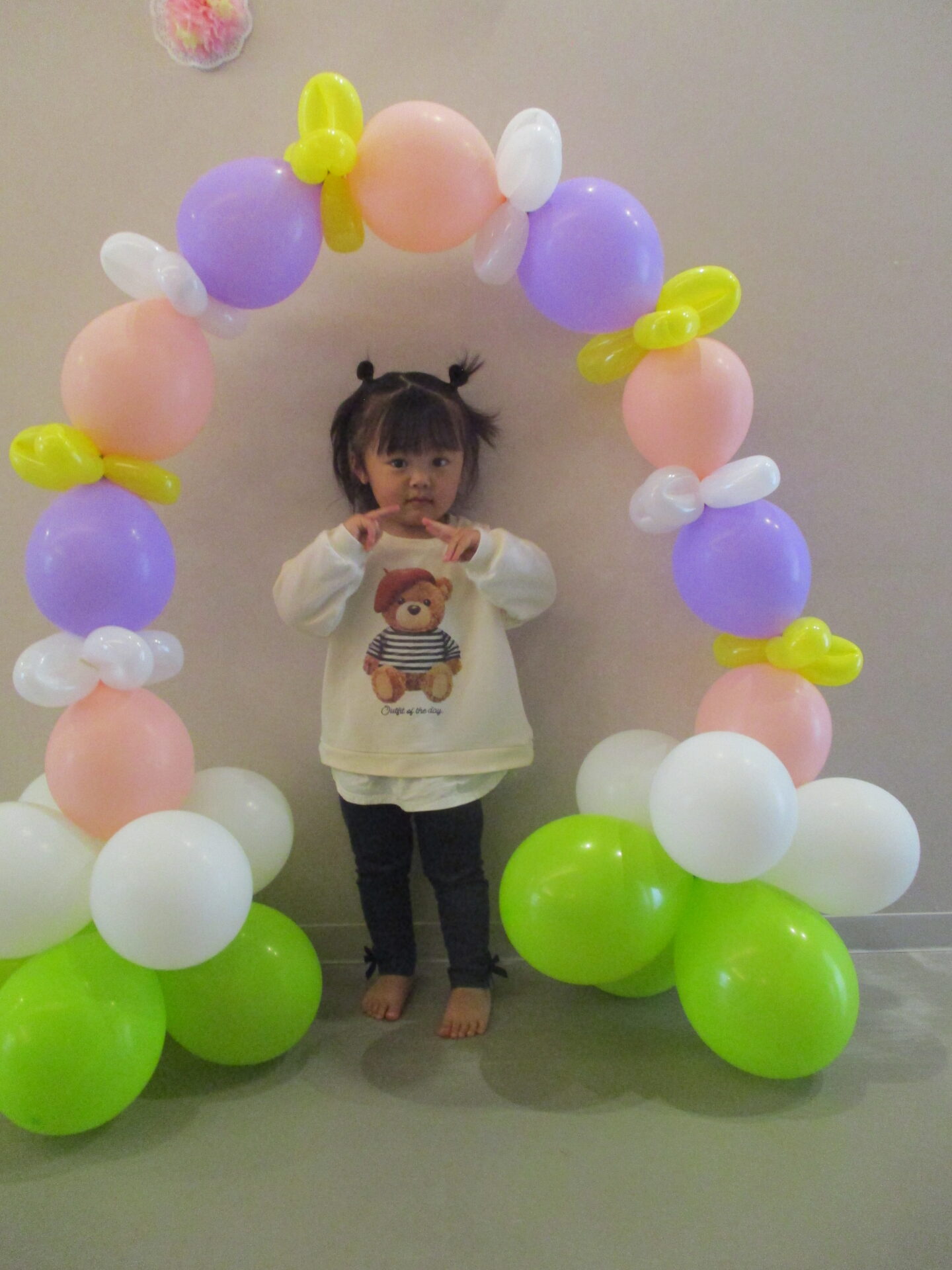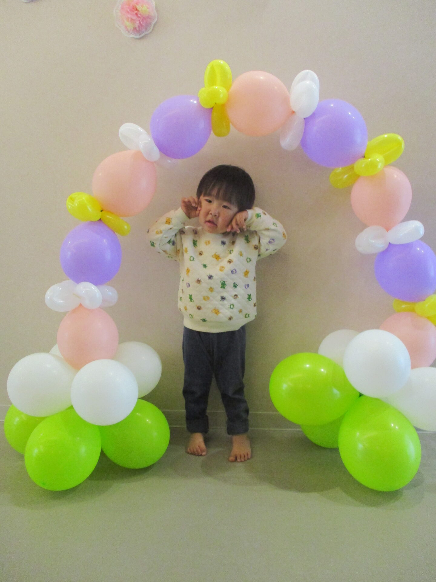 最後は、卒園児が通ったバルーンアーチをバックに写真撮影。か・な・り、いいです👍(自画自賛)