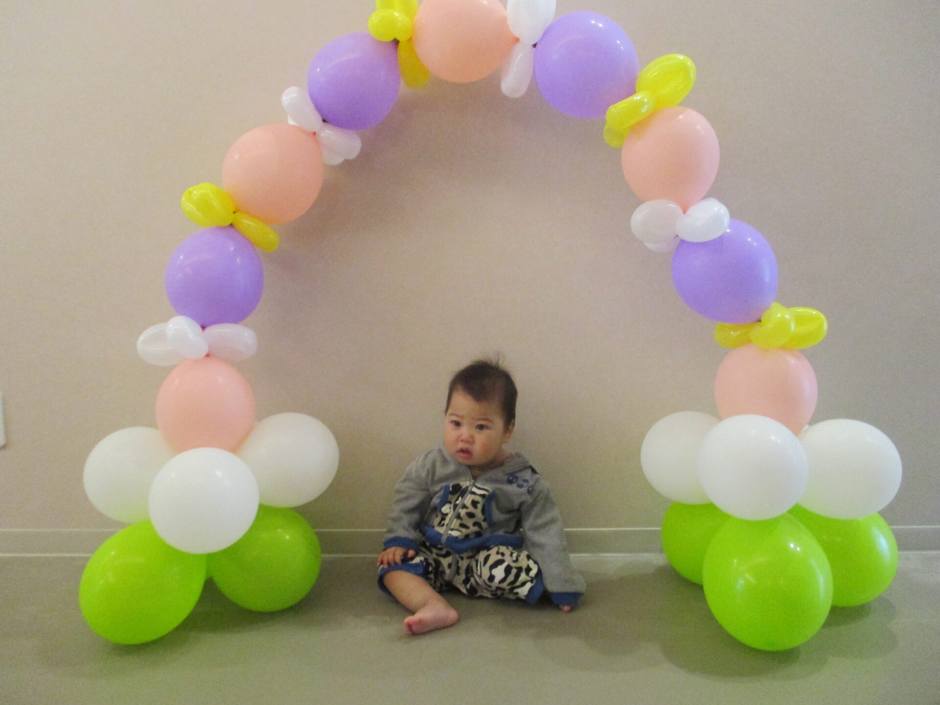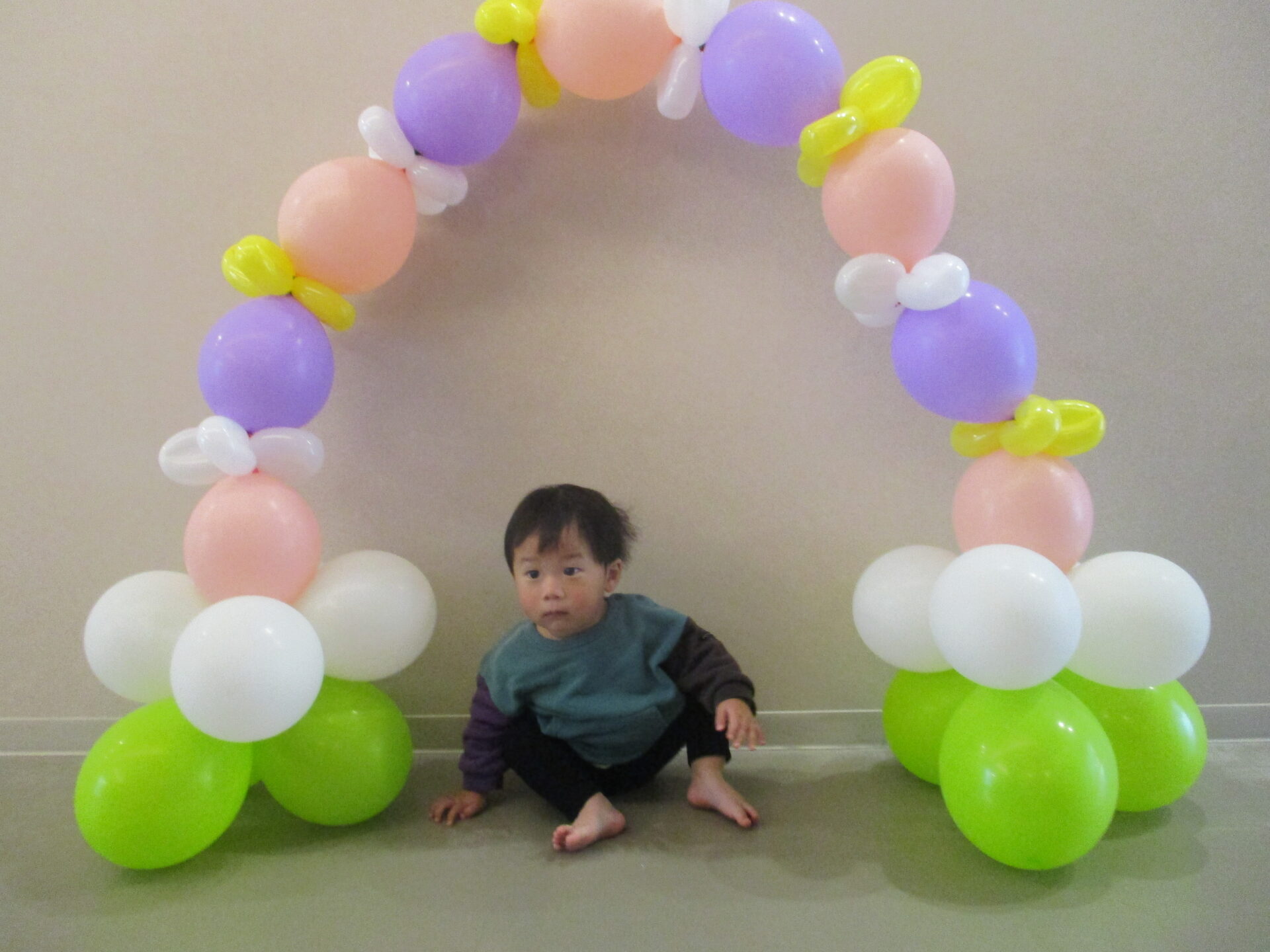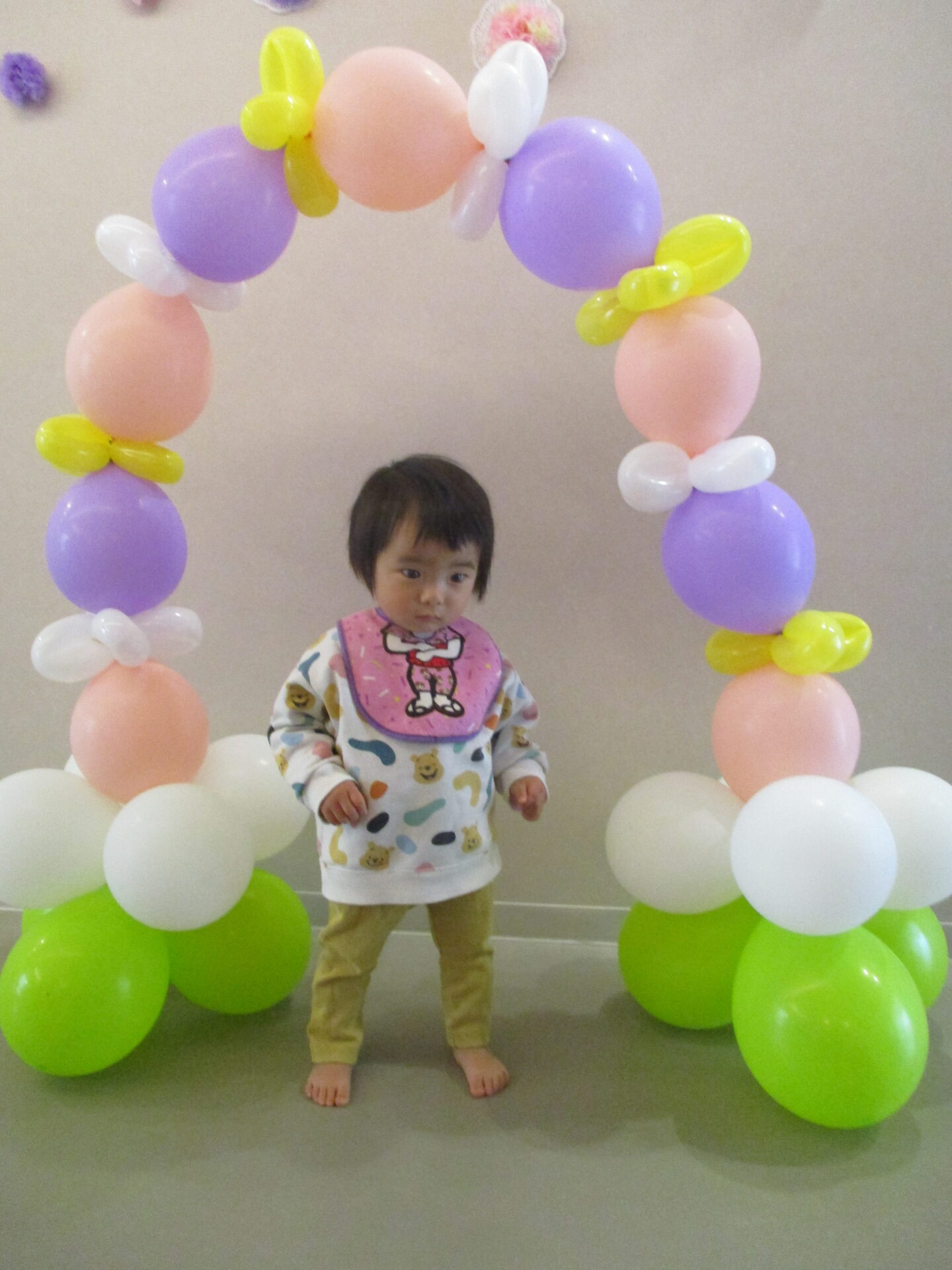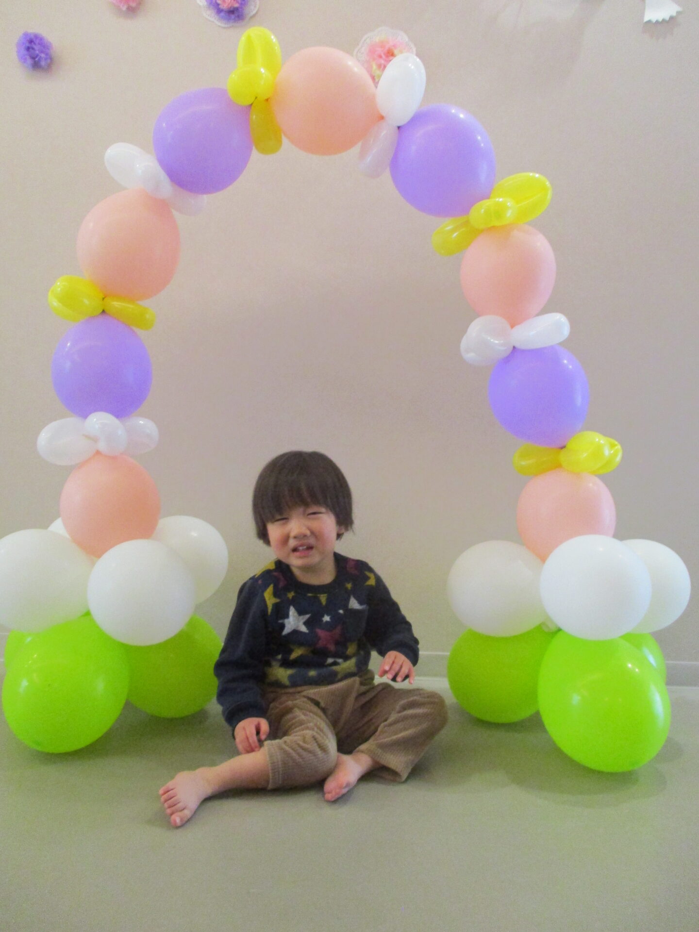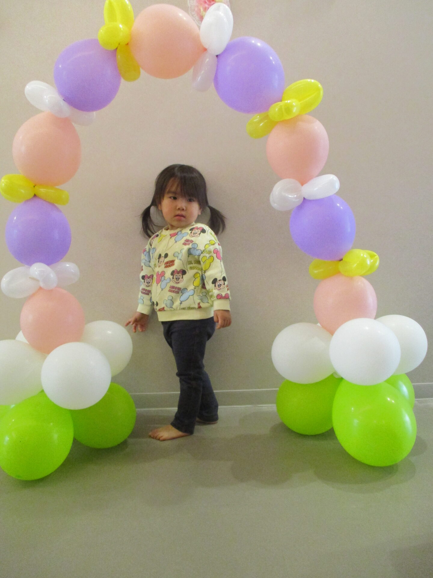 最後は、卒園児が通ったバルーンアーチをバックに写真撮影。か・な・り、いいです👍(自画自賛)
