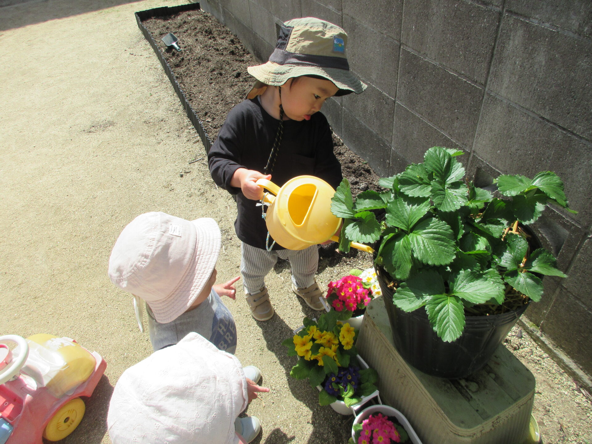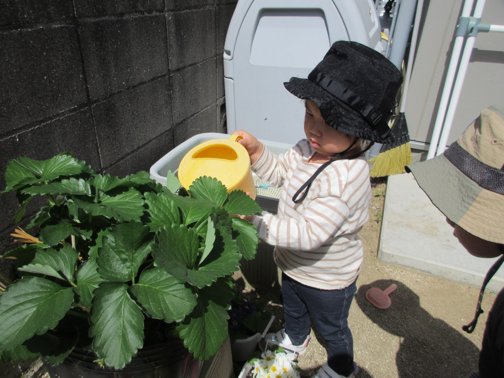 いちごが赤くなるのを楽しみに、毎日水やりをしました。