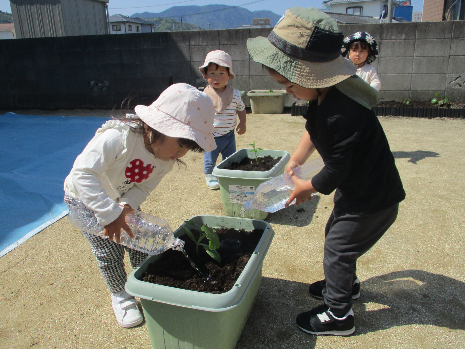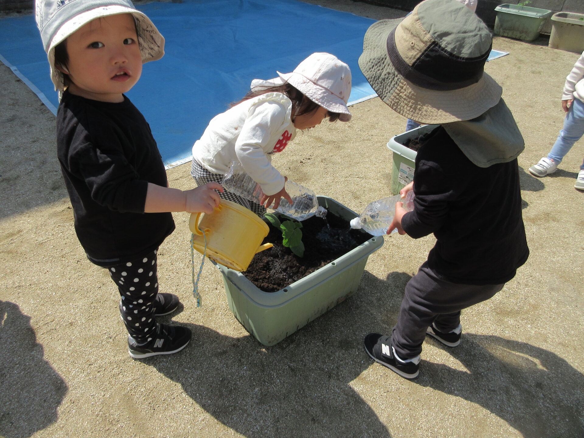 最後は「おおきくな~れ」とみんなの思いを込めて水をあげました。