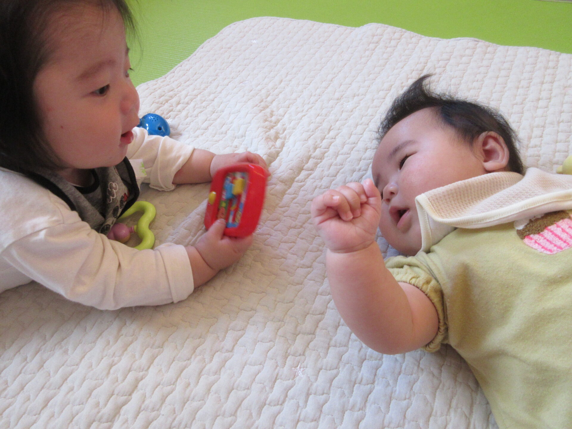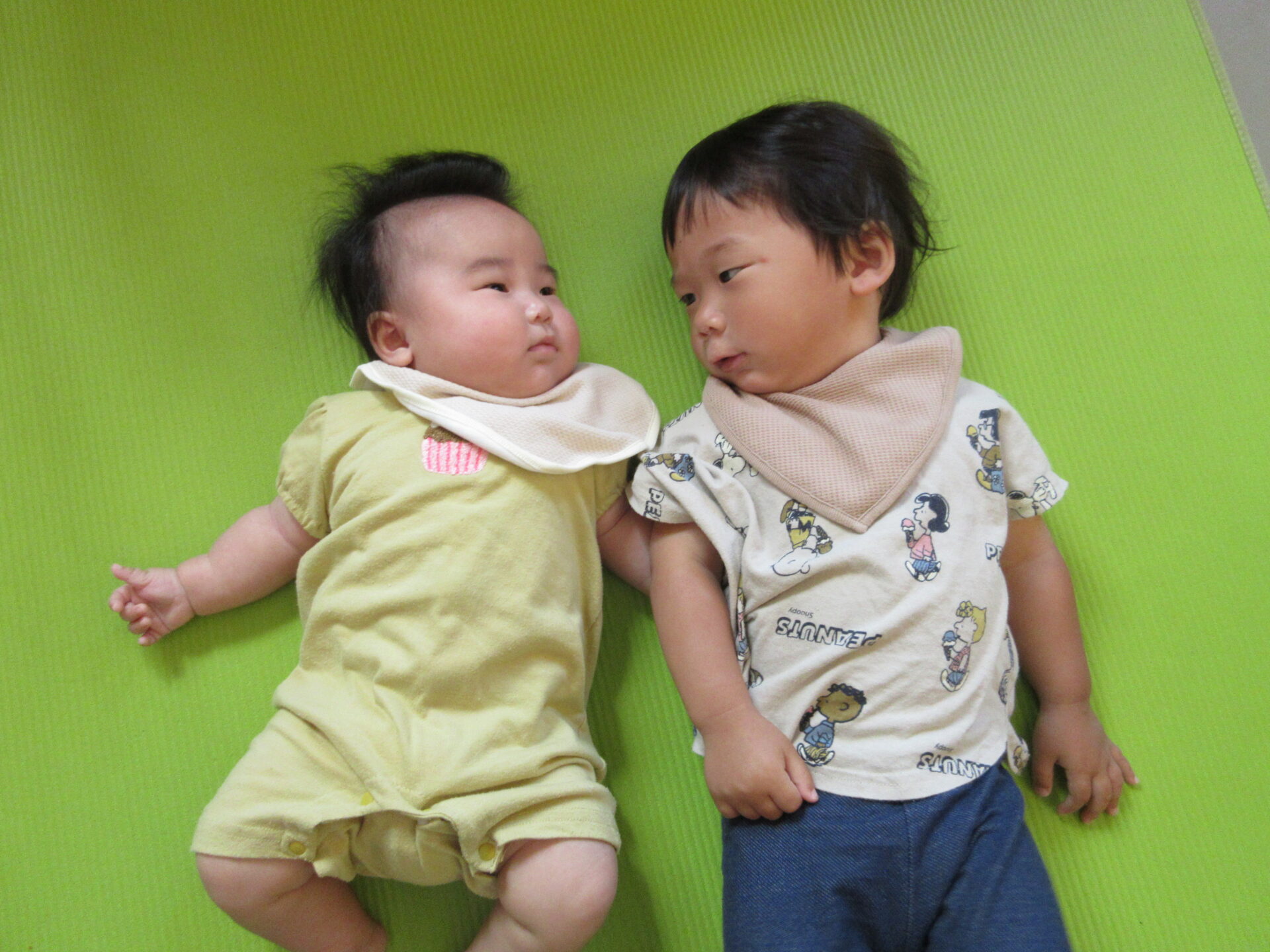 同じうみ組のお友だちとも、「あー」「うー」とおしゃべりしたり、見つめ合ったりして、とてもかわいいです😍