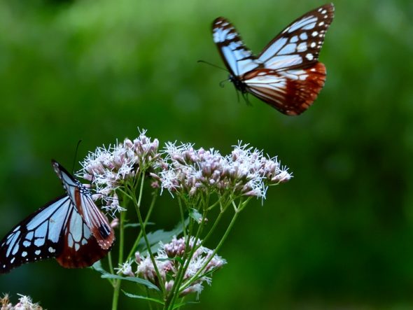 フジバカマには、アサギマダラという蝶のオスが好んで訪れます。まだよく解明されていないようですが、フジバカマに含まれる物質「ピロリジジンアルカロイド」の摂取が性ホルモンの分泌に必要だからと言われています。