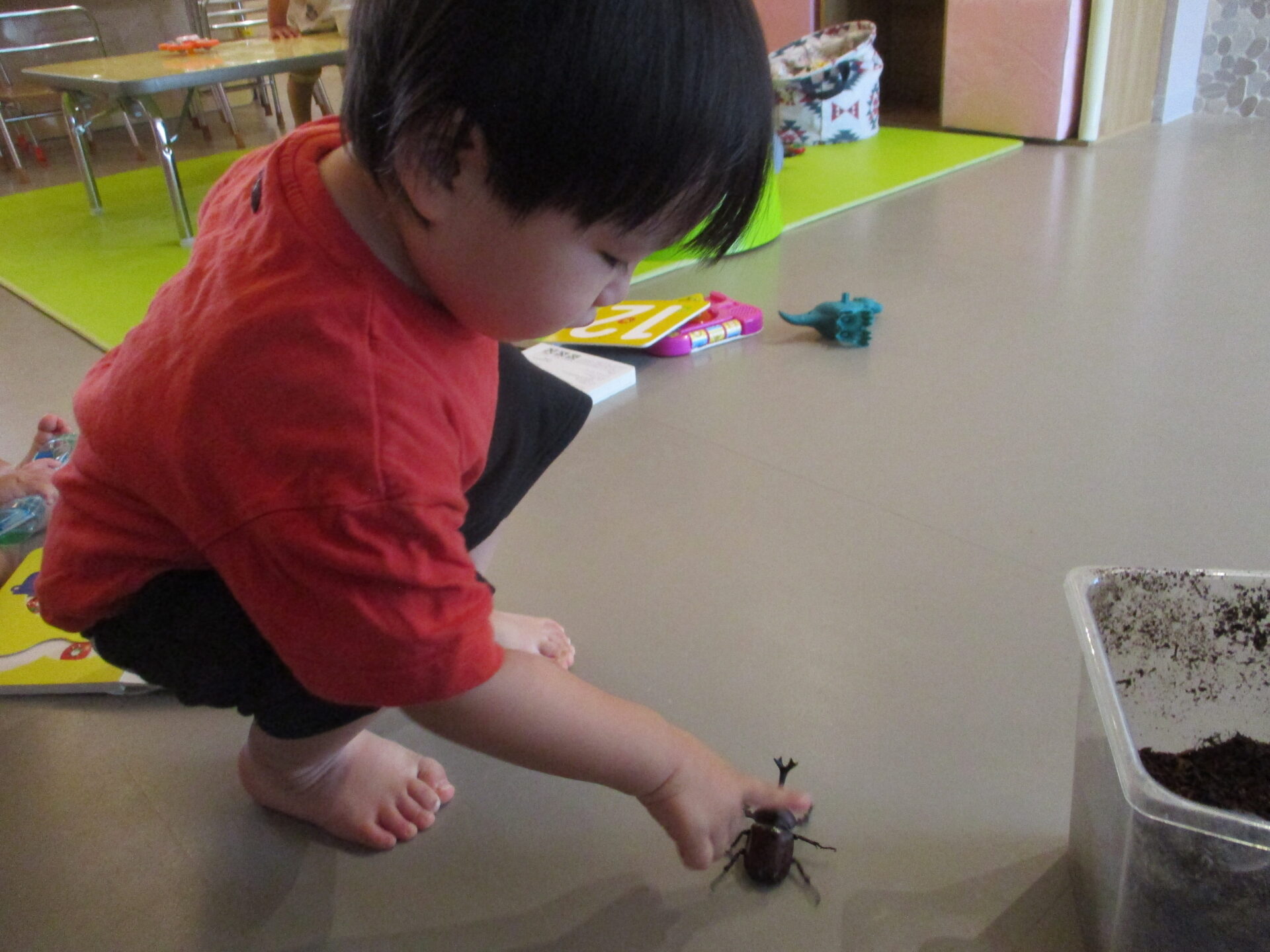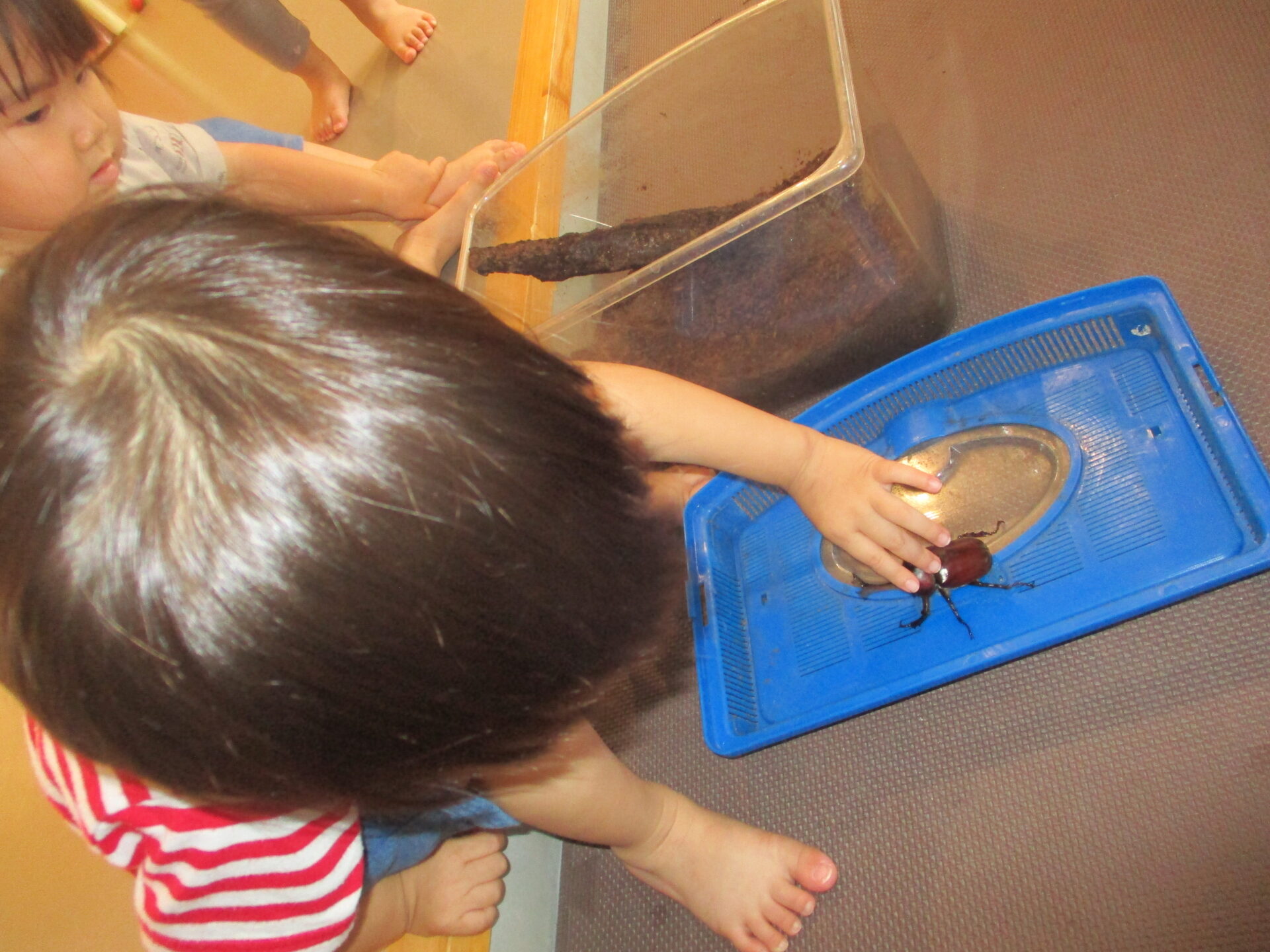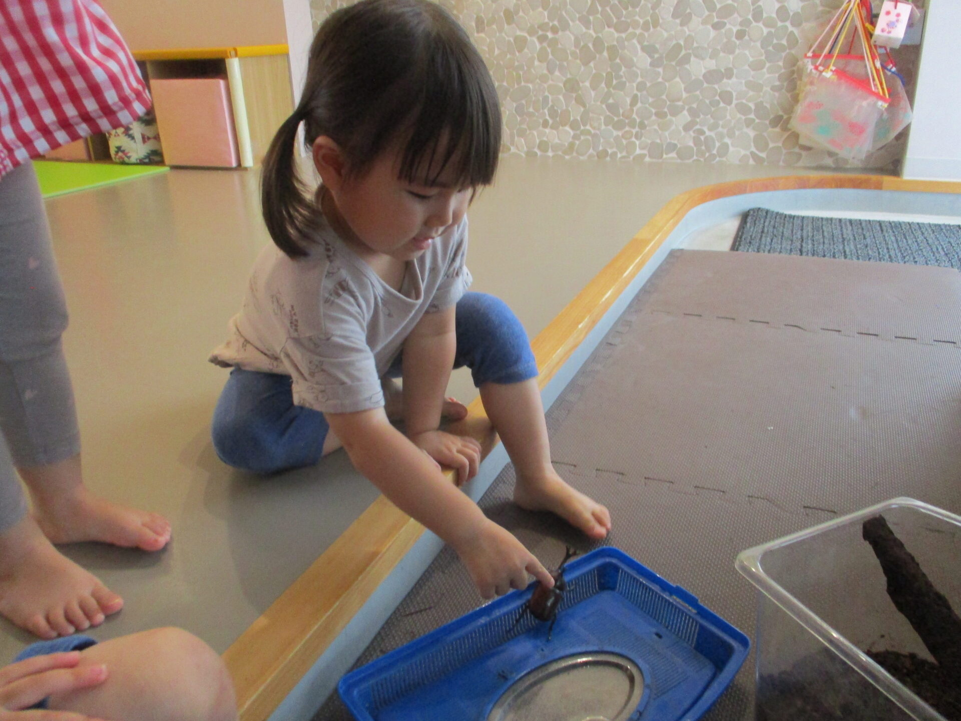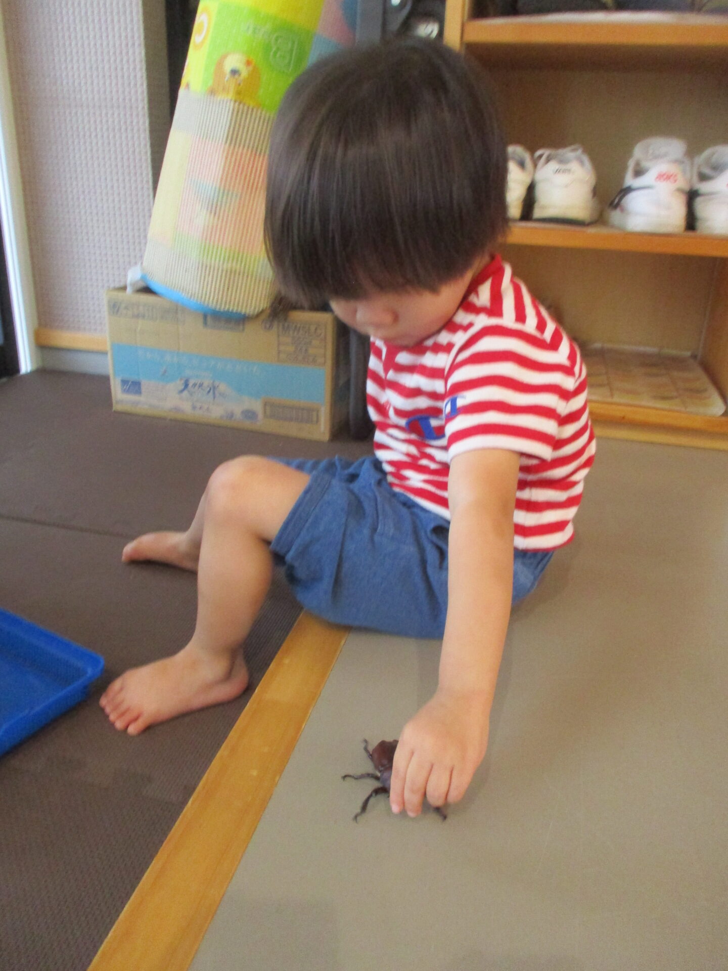 子どもたちには、虫への偏見を持たないように、「触っても大丈夫だよ」「大きな角があるね」など、安心や興味が持てるような言葉がけをしながら、大人が関わり、虫への興味・関心が持てるようにしていきたいです。