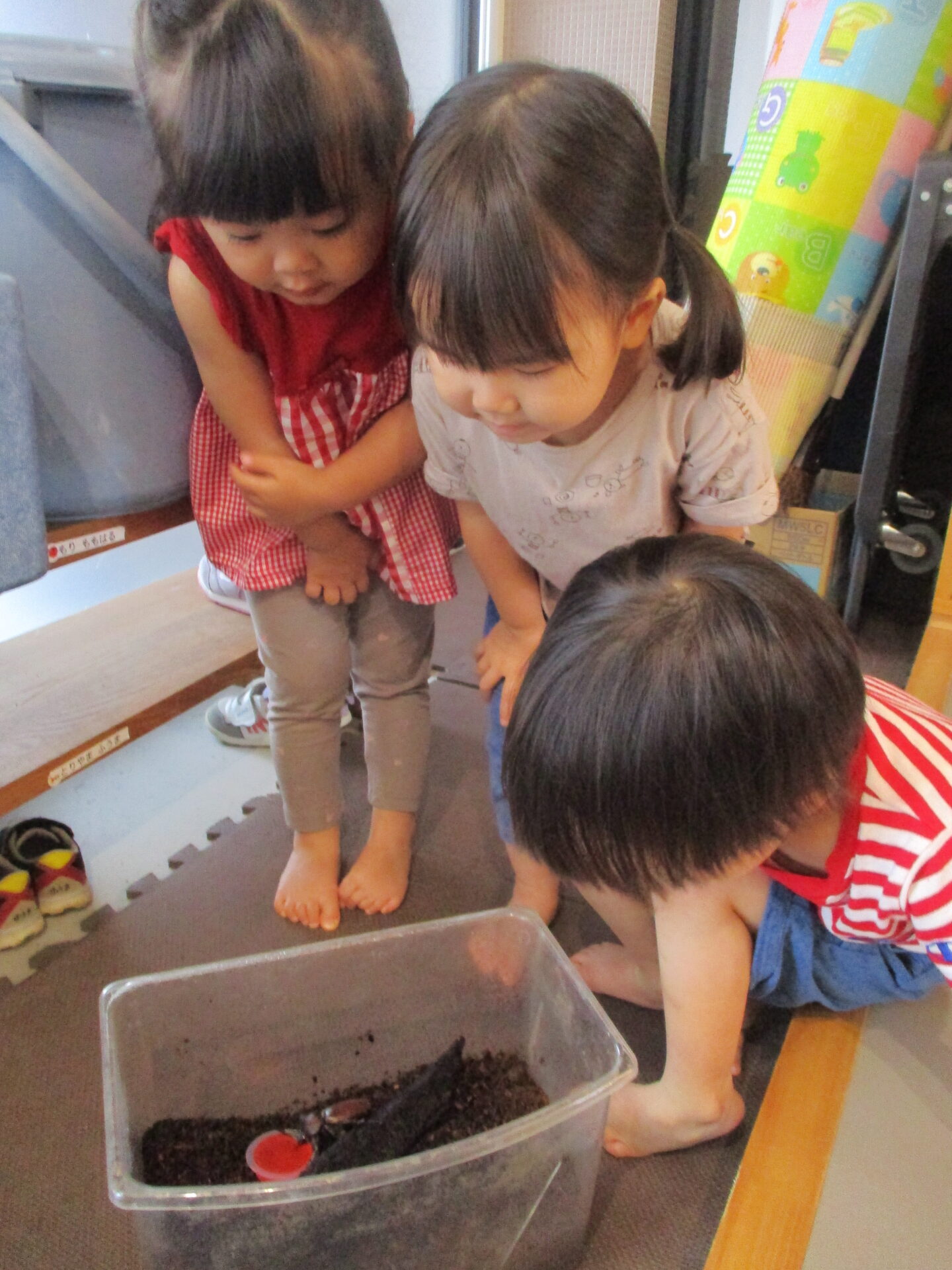 2歳児さんたちは、何がいるんだろう?とのぞき込んでいました。