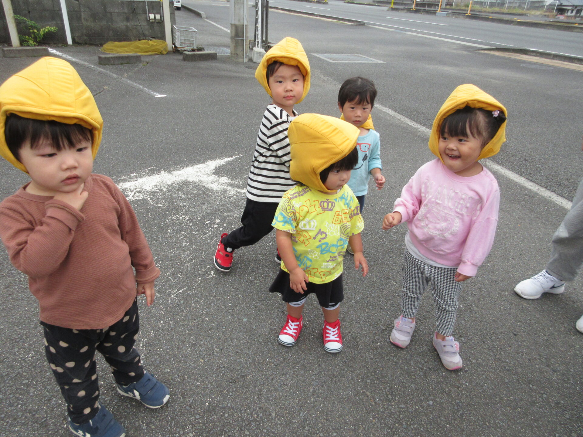 初めに、1,2歳児から被るのに慣れていくことにしました。
