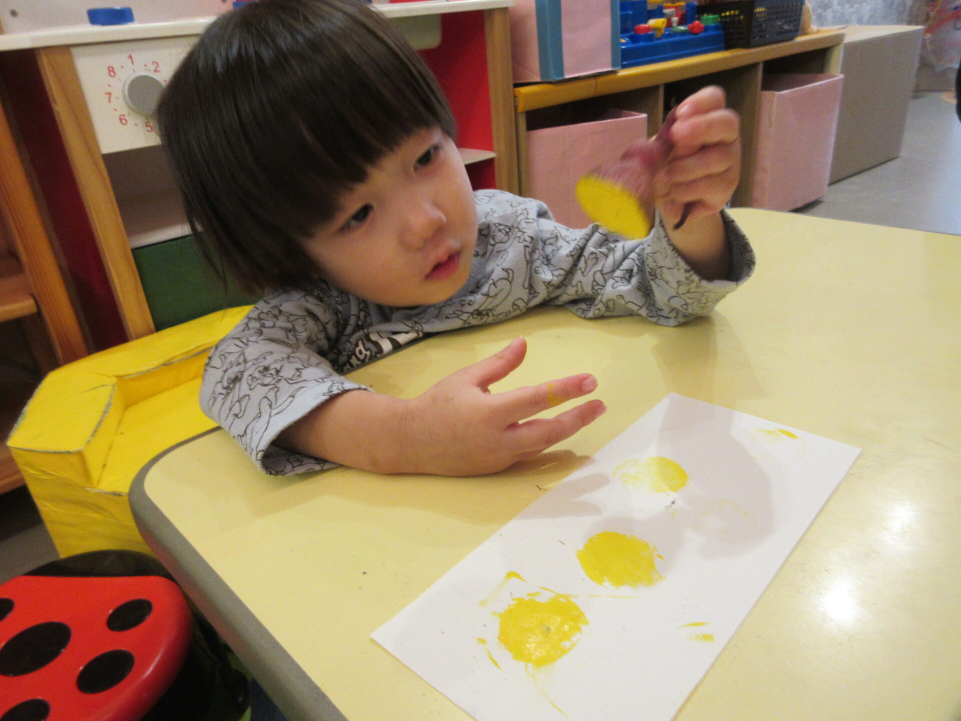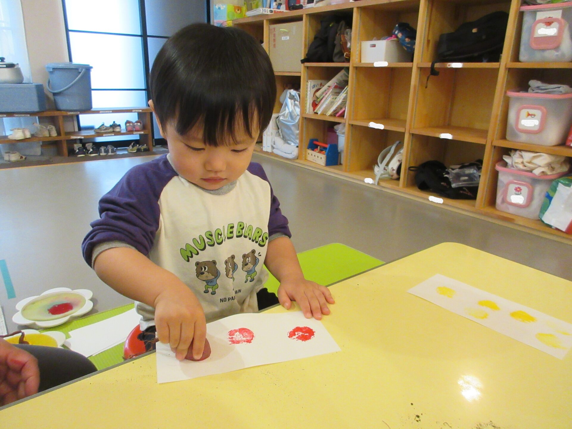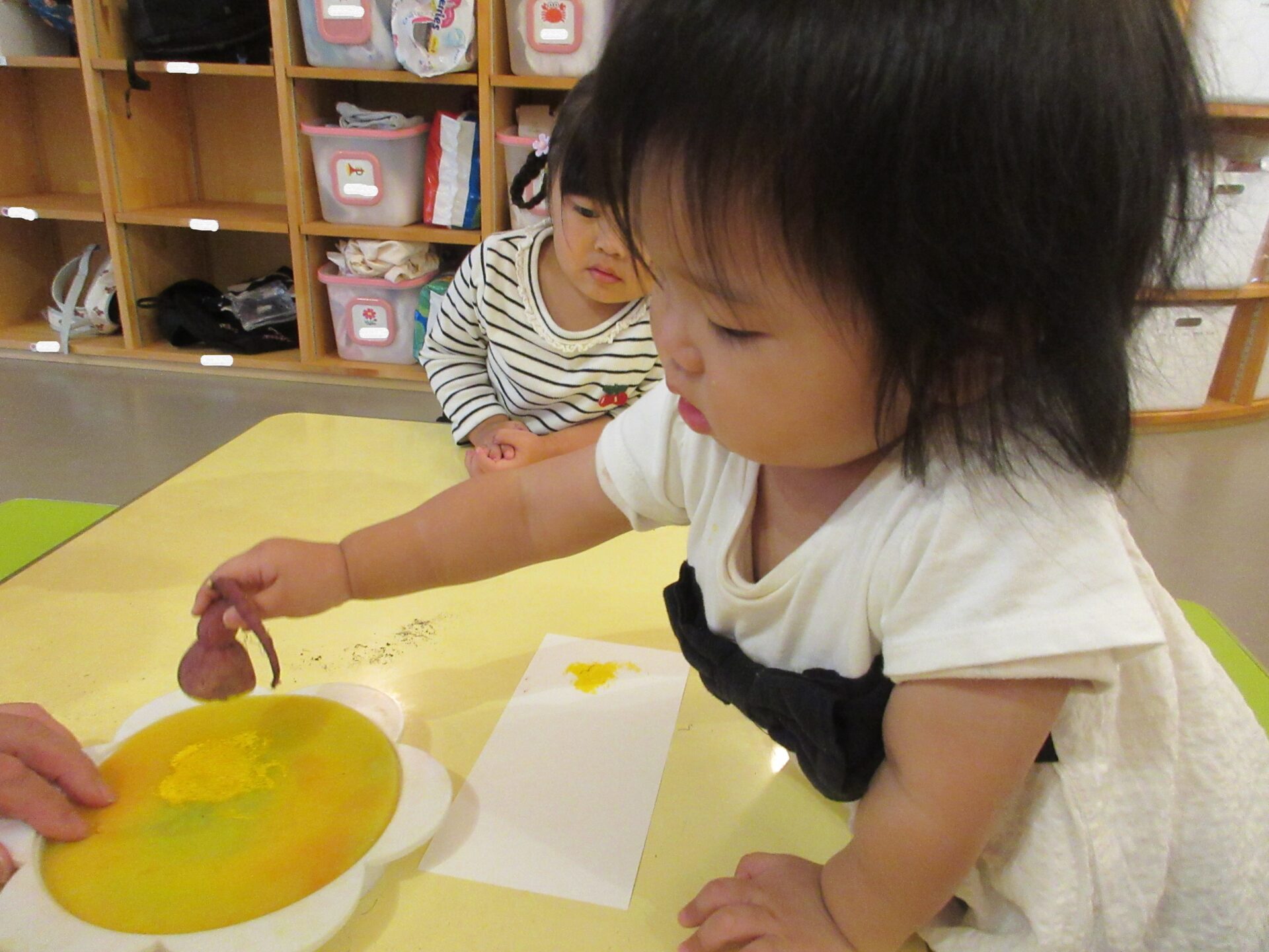 次は、さつまいもに絵の具をつけてスタンプを楽しみました。