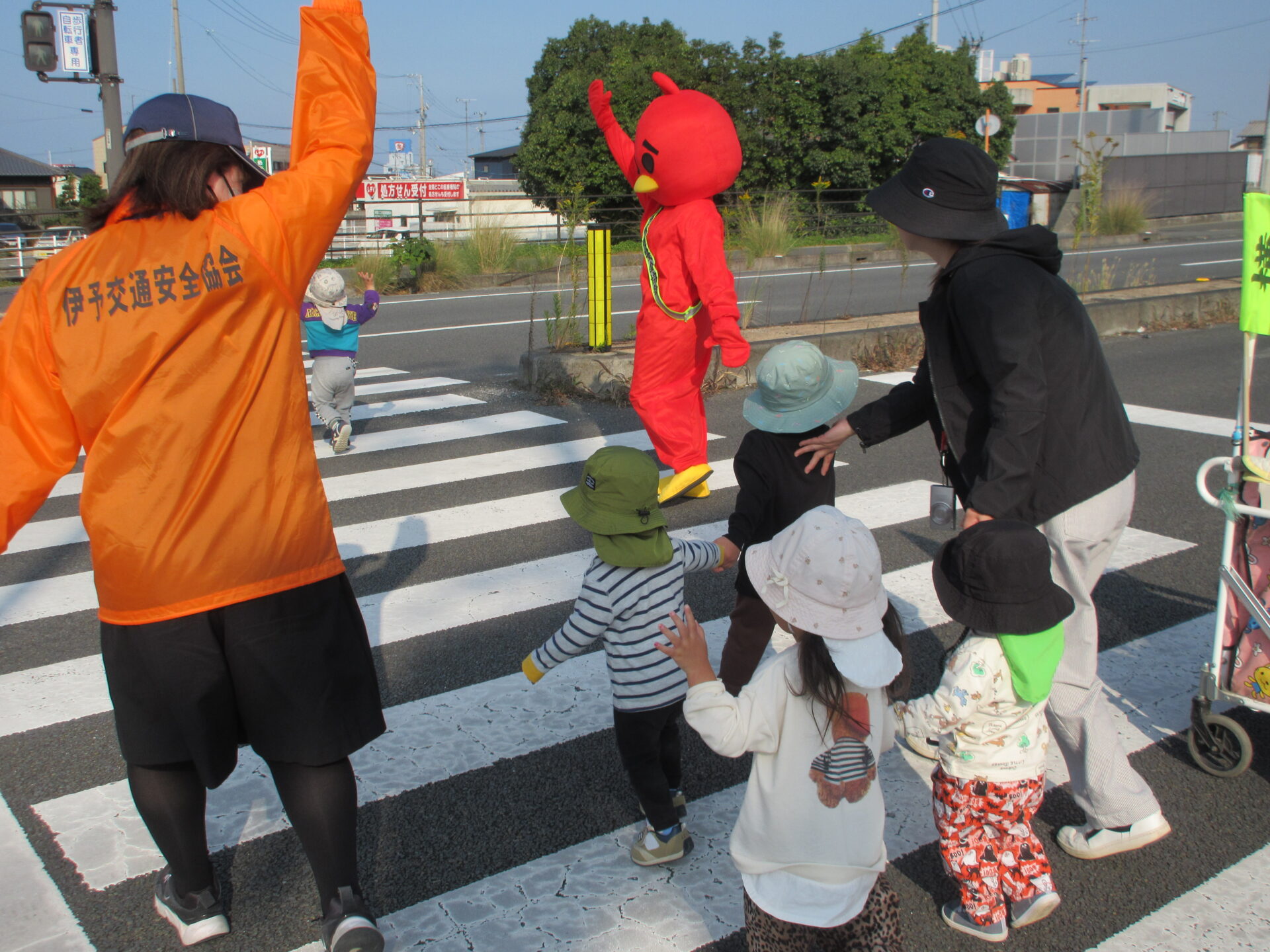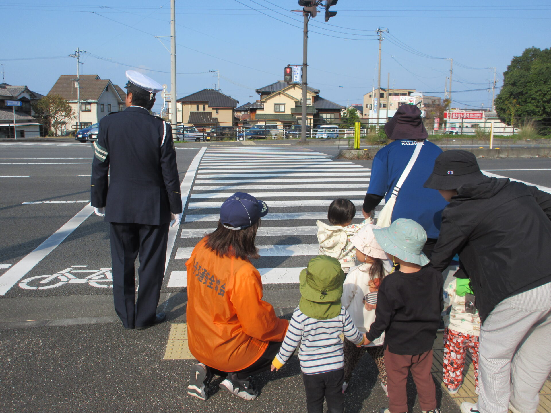 交通ルールを教えてもらった後、実際に道路を歩いたり、横断歩道を渡ったりしました。