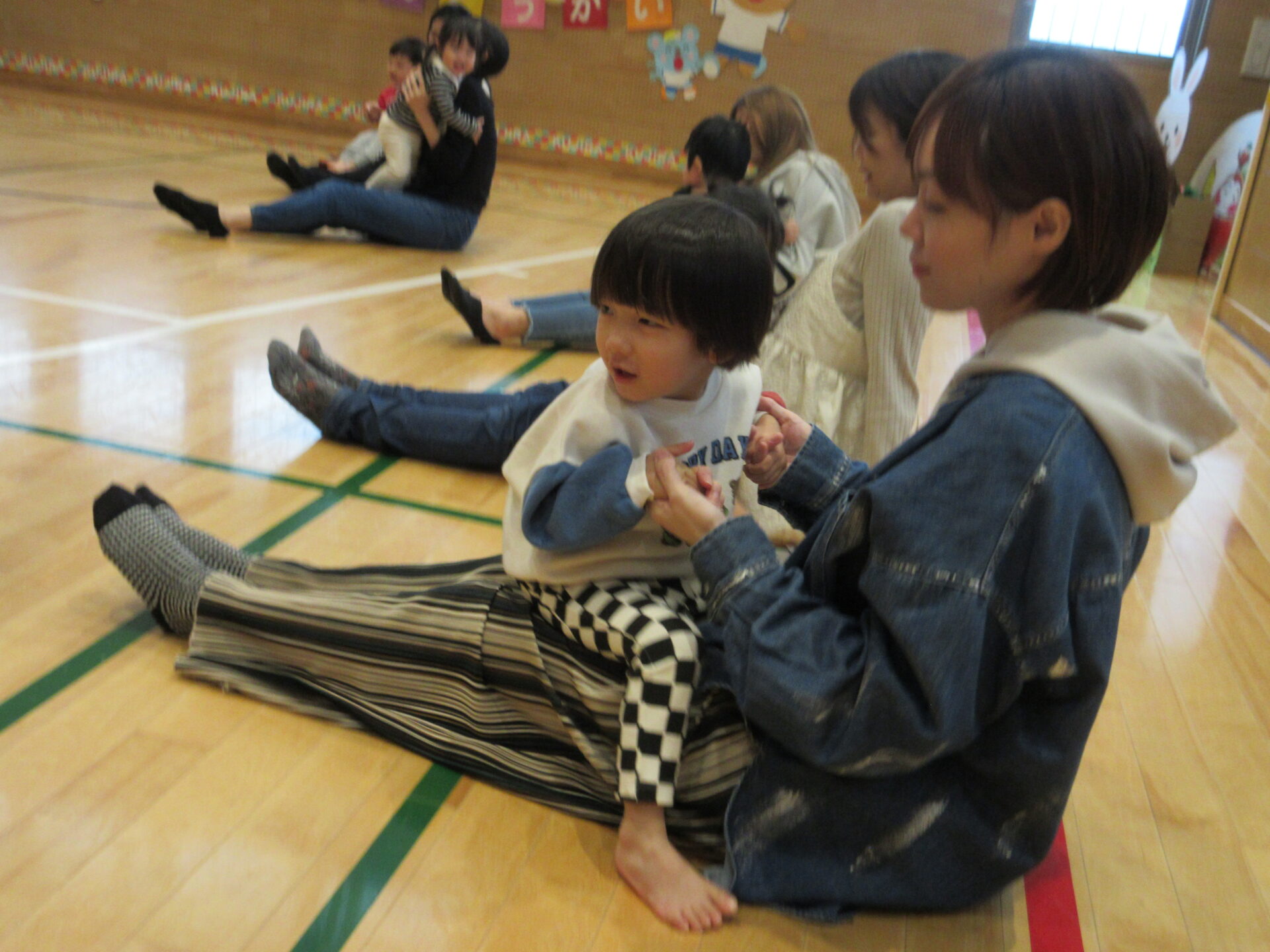 お父さんやお母さんの膝の上に座って、一緒に触れ合えるのをとても喜んでいました。