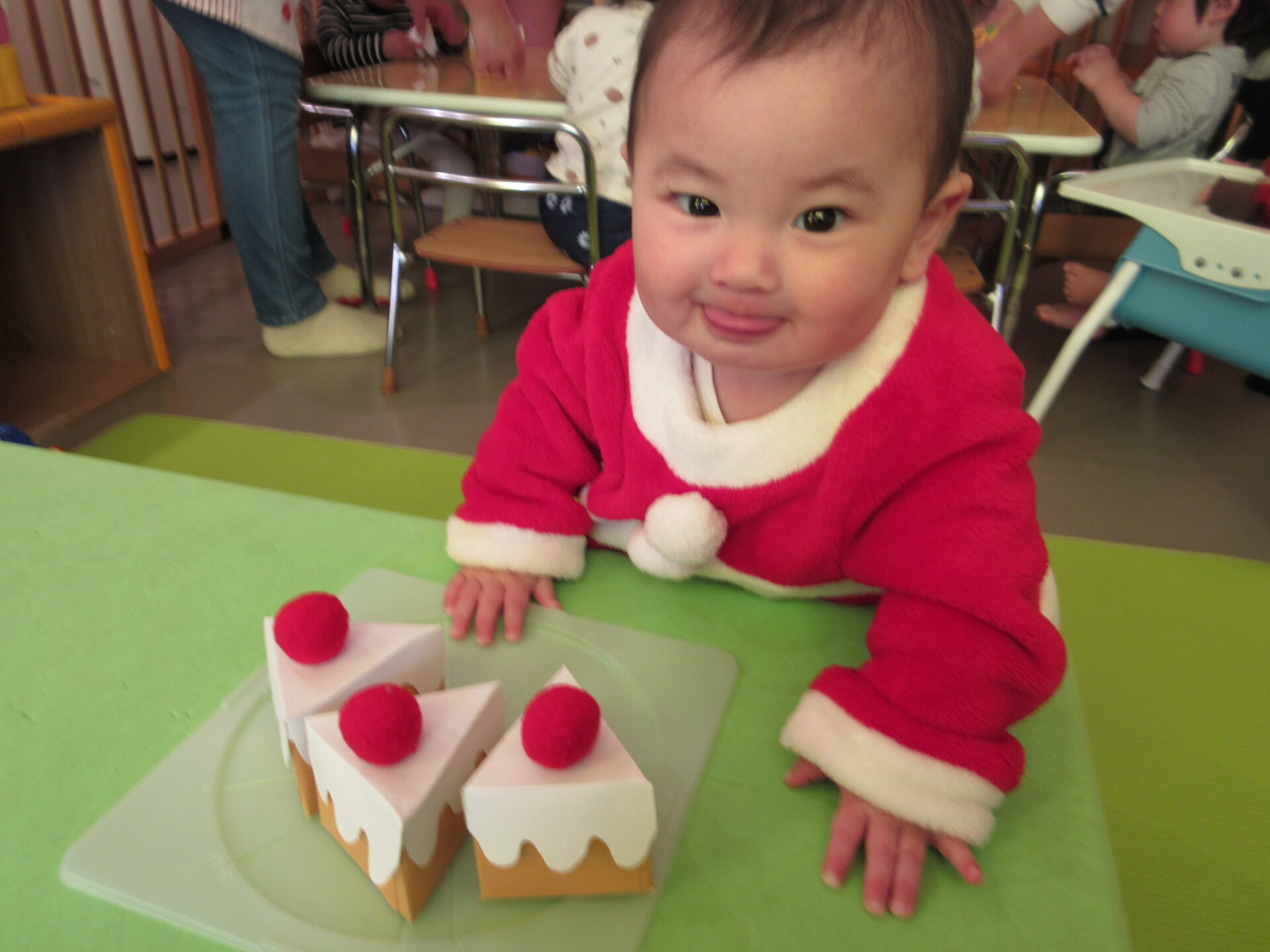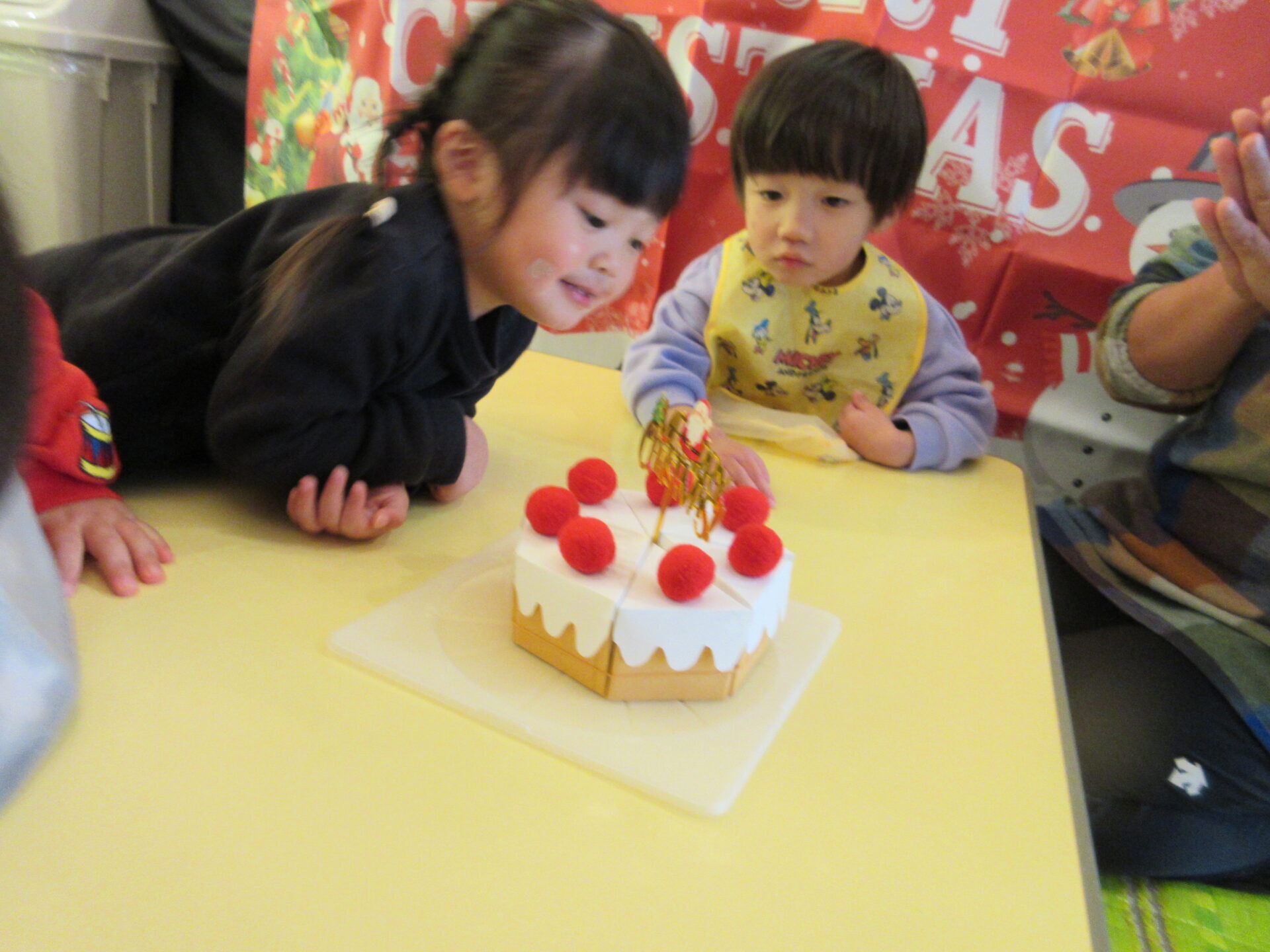そして、お昼寝から起きると、保育士手作りのクリスマスケーキが待っていました。
