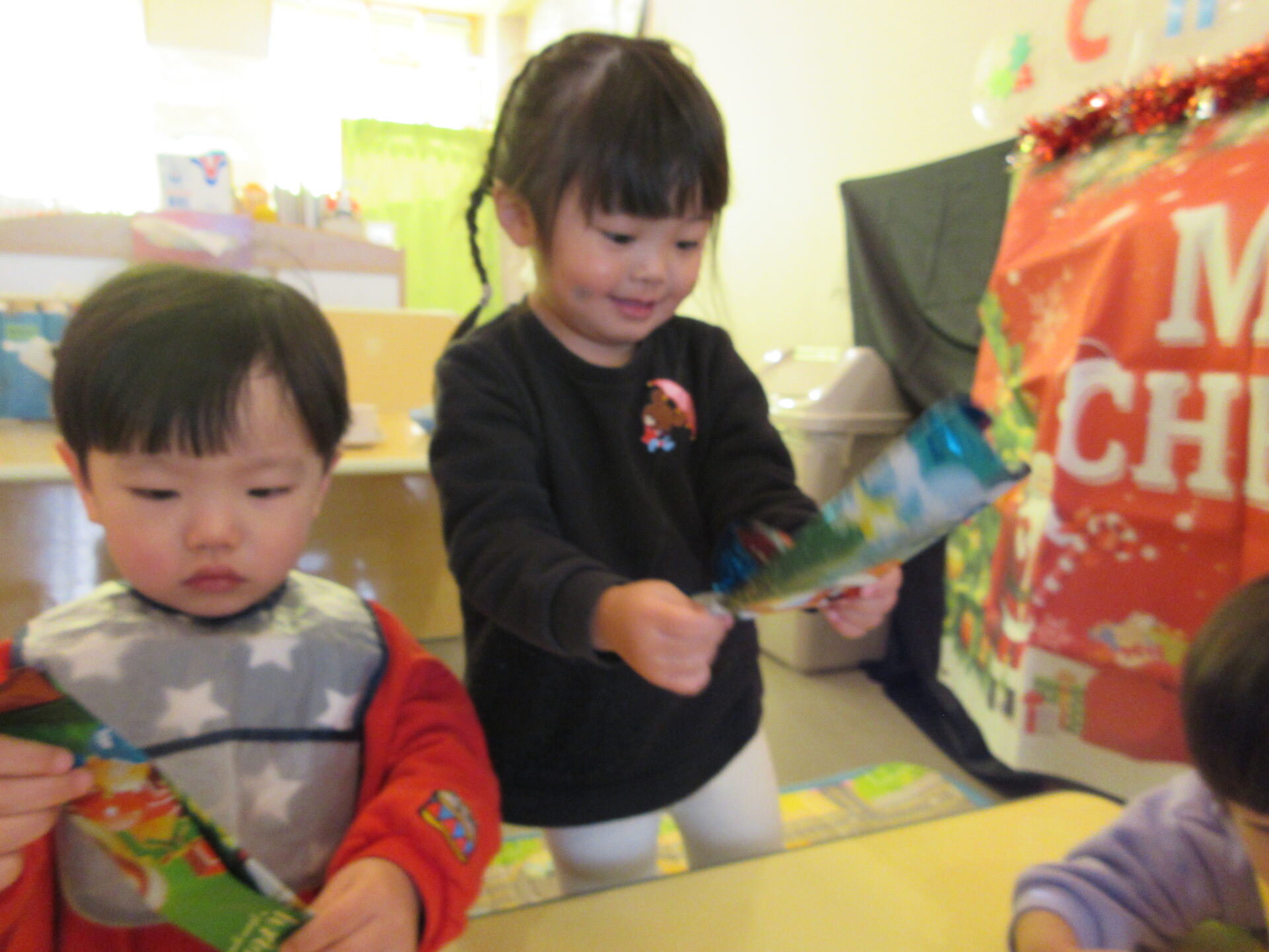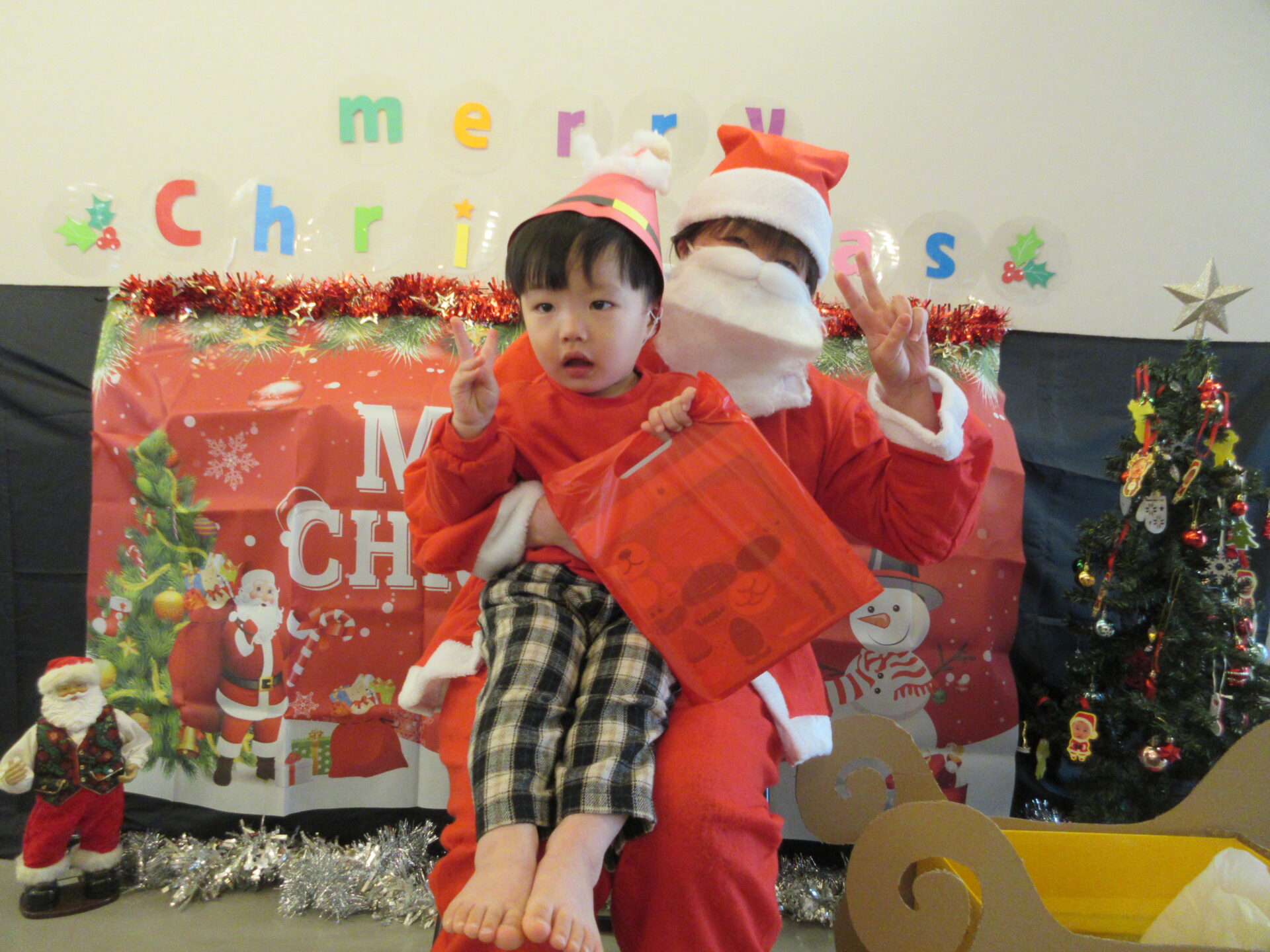 今日は、一日、クリスマスパーティーを楽しむことができました。子どもたちも、とても喜んでいて、私たち保育士も、たくさんの笑顔が見れて、幸せな気持ちになりました✨