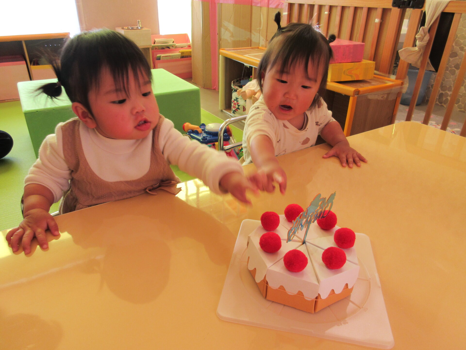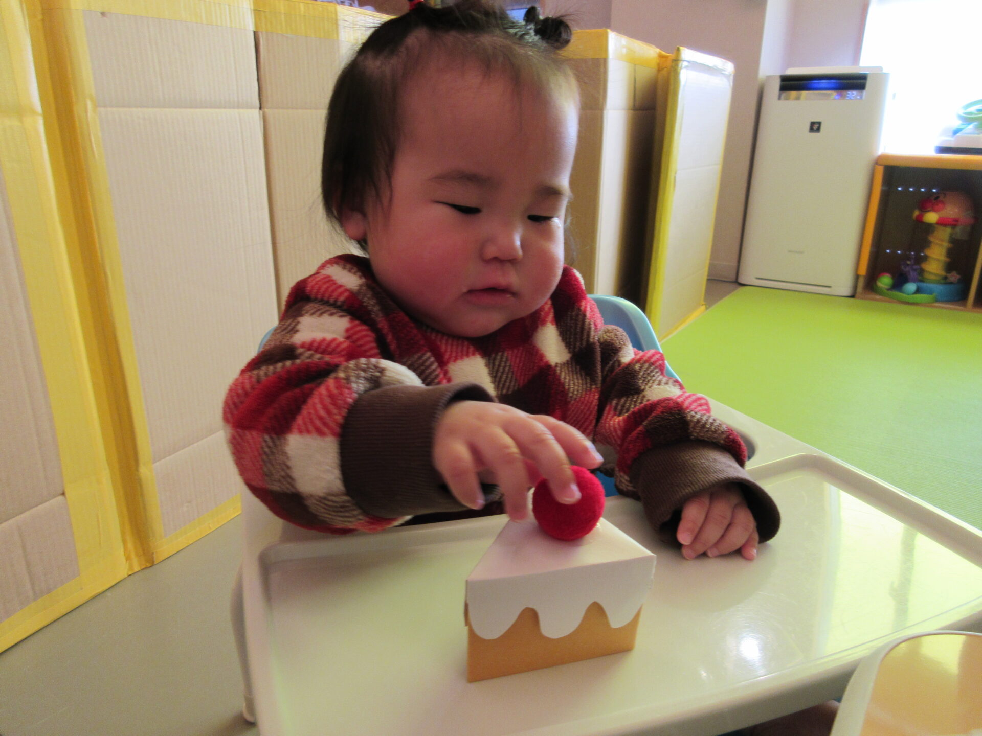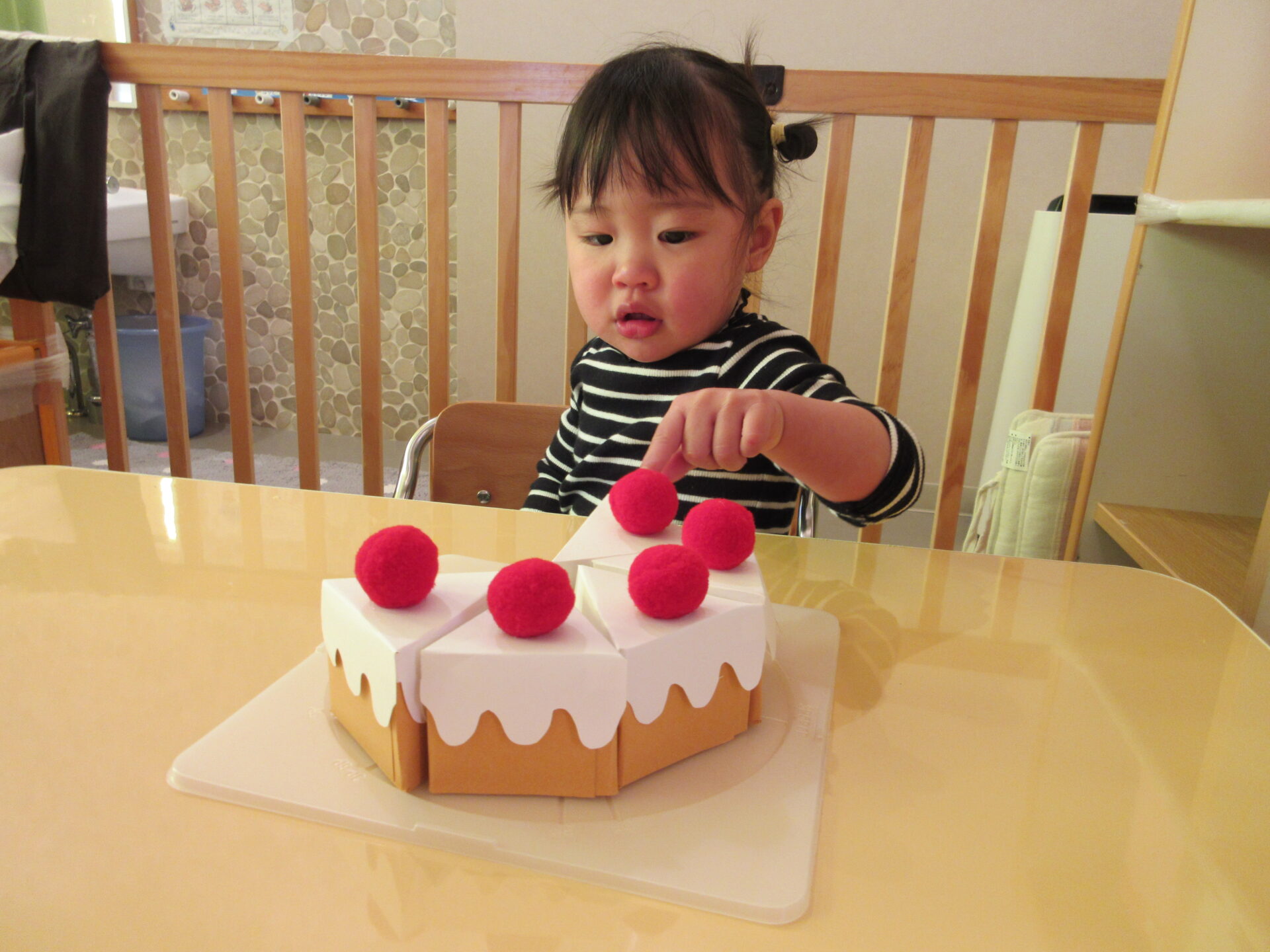 箱の窓からケーキが見えると、「いちごがある」と言って、ケーキが出てくるのを楽しみにしていました。