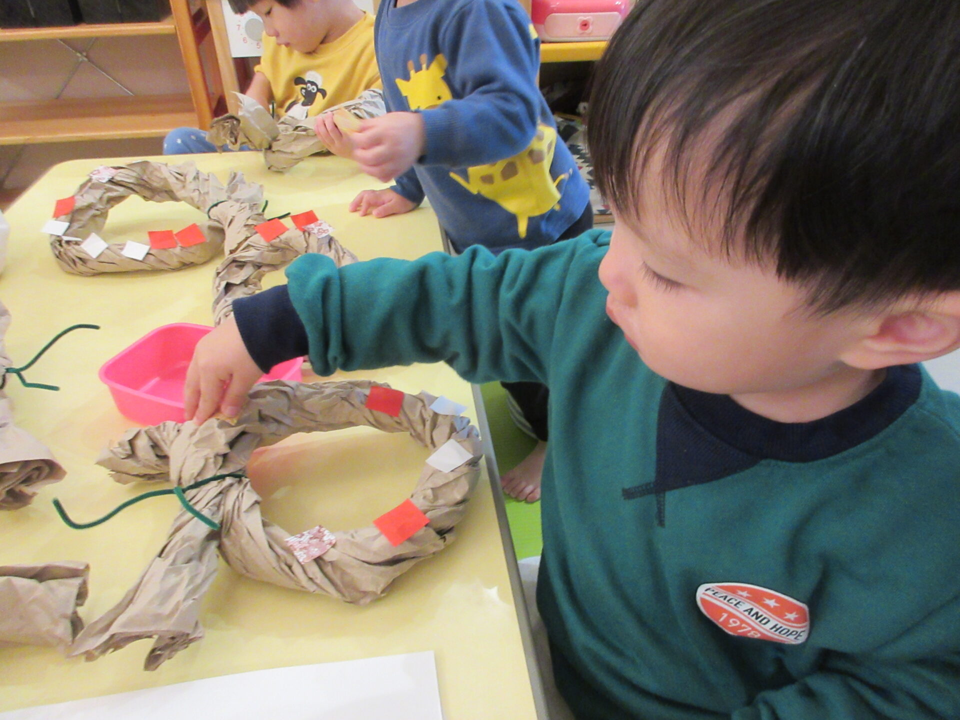 ใๅ ๆฅใๆญฃๆ้ฃพใใ่ฟใใฎใๅบใซ่ฒทใใซ่กใใพใใใใๅญใฉใใใกใใๆฐใใๅนด็ฅๆงใ่ฟใใฆใๅ ๆฐใซ้ใใใพใใใใซใจใใ้กใใ่พผใใฆใๆญฃๆ้ฃพใใไฝใใพใใใ