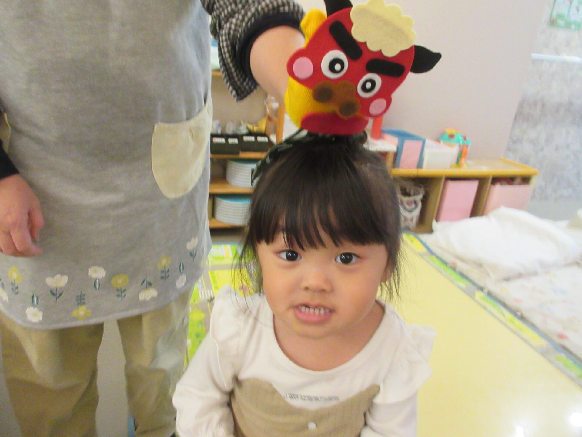 なので、みんなミニ獅子舞に頭をカプッと噛んでもらいました。