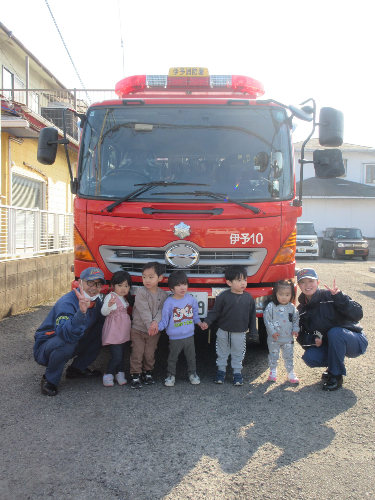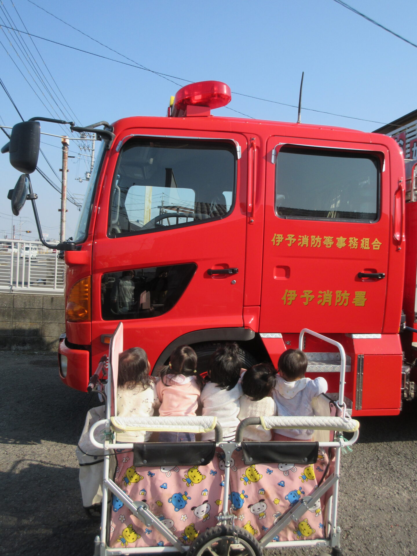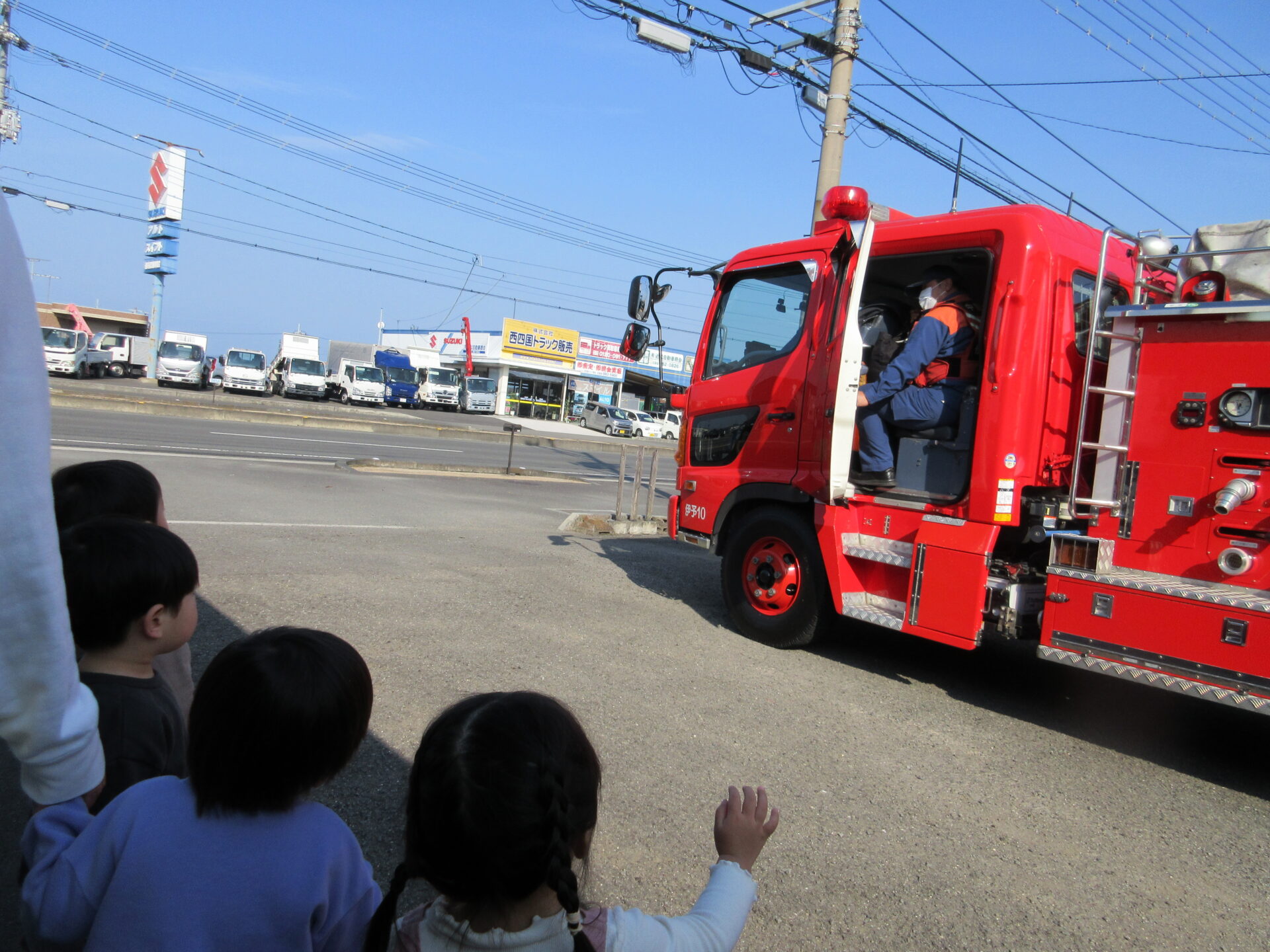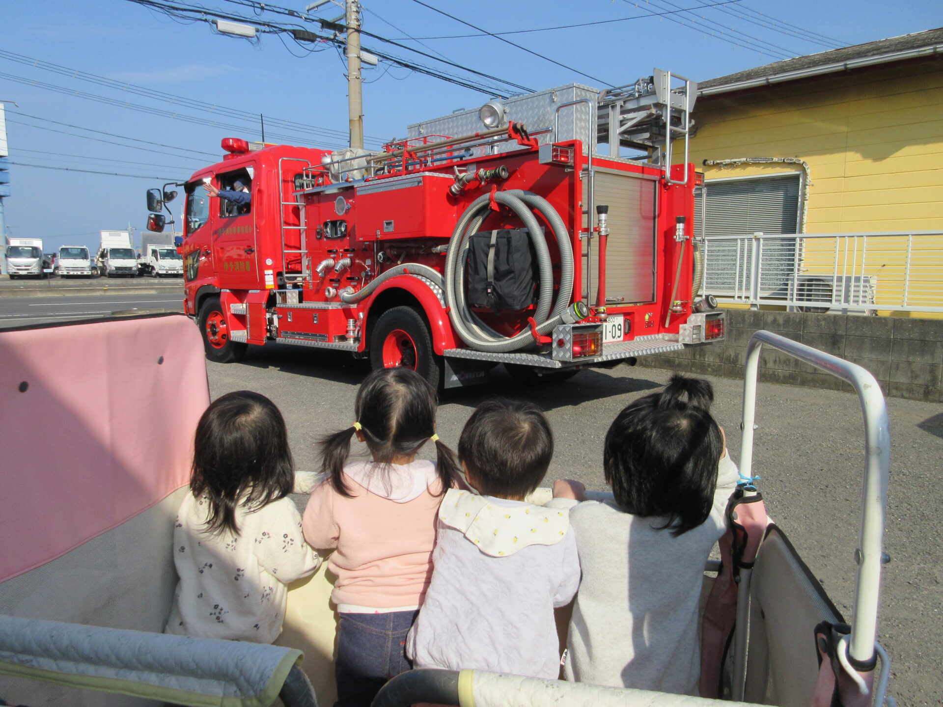 いよいよお別れの時が来て、子どもたちは、消防車に向かって「バイバイ👋」と手を振り続けていました。