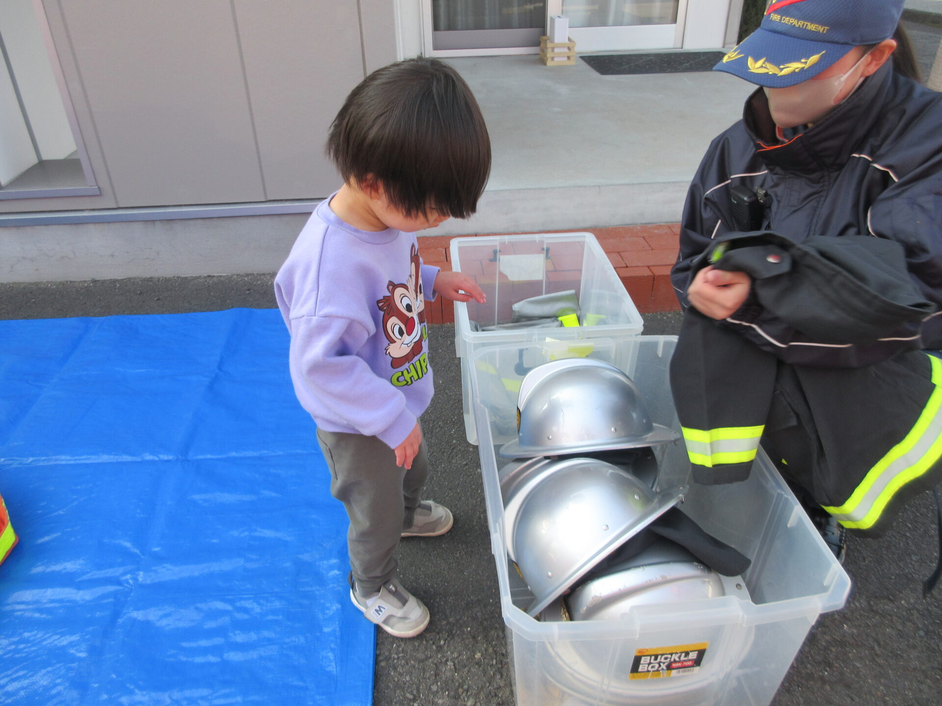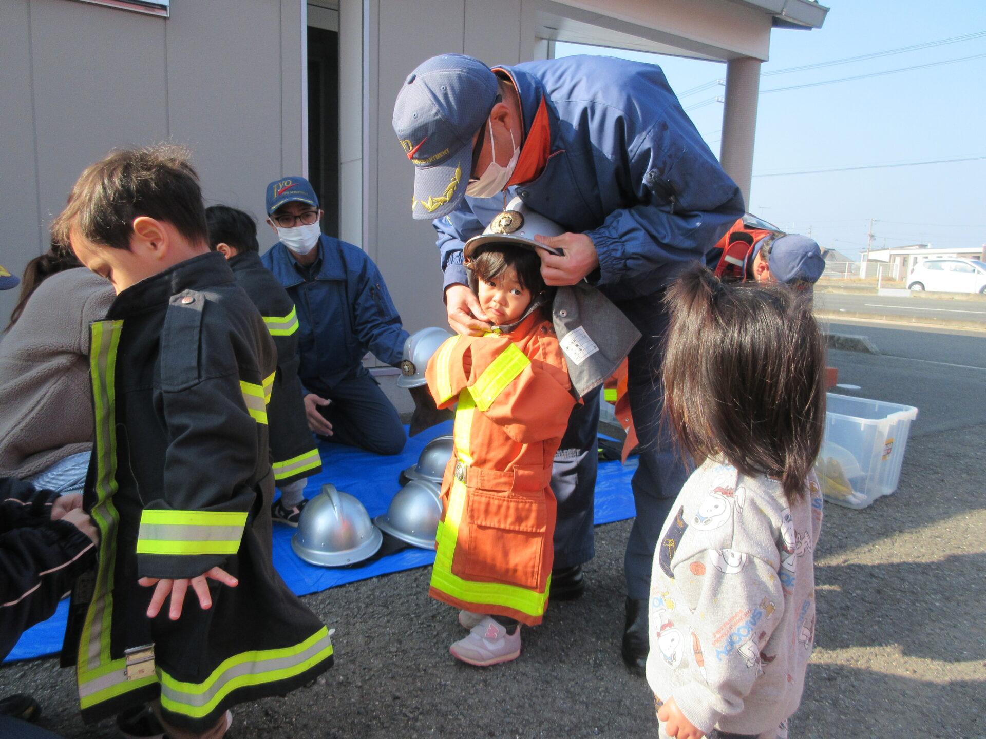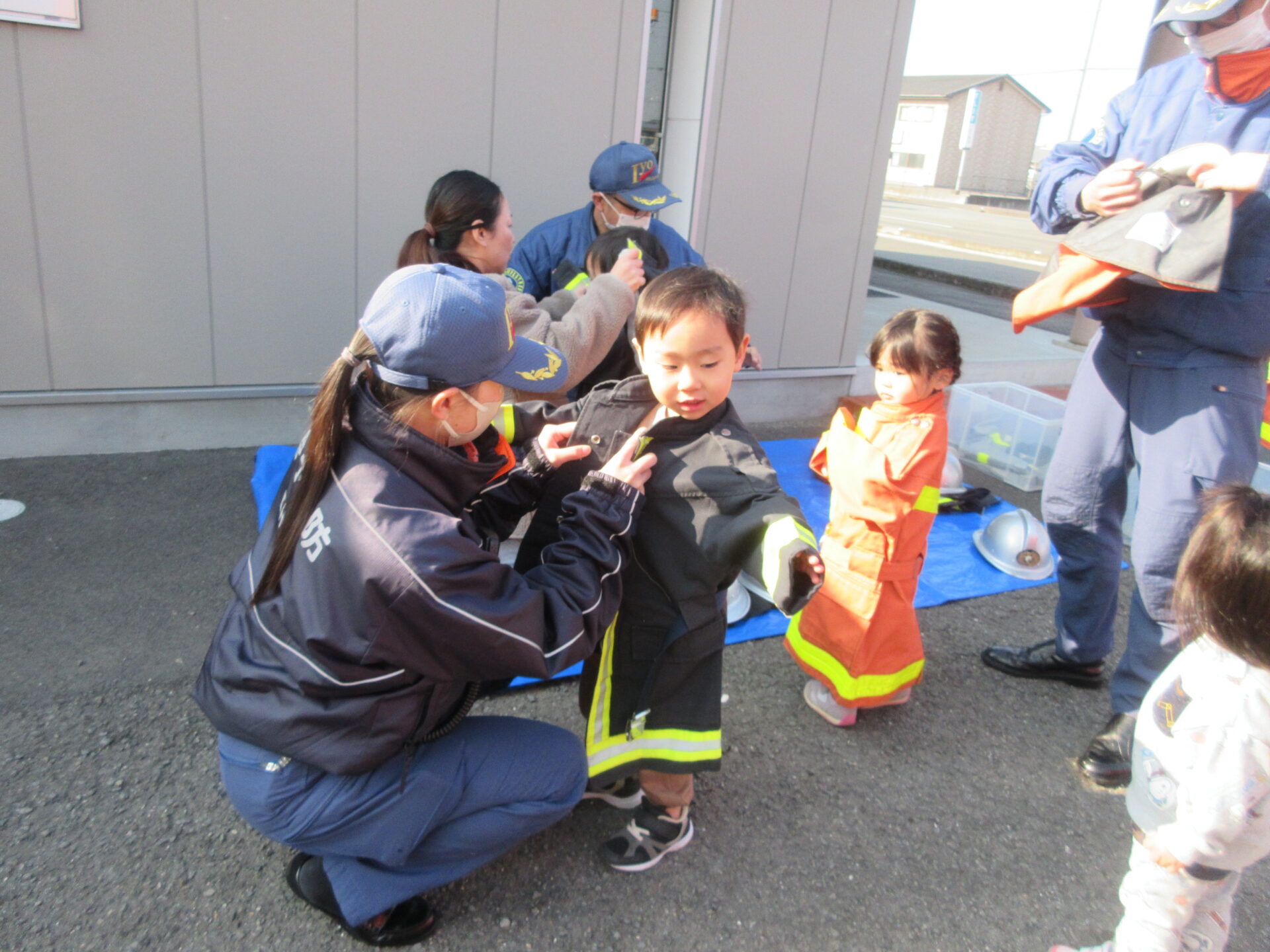 0歳児は、消防服が重くてフラフラしてましたが、頑張って着てみました!